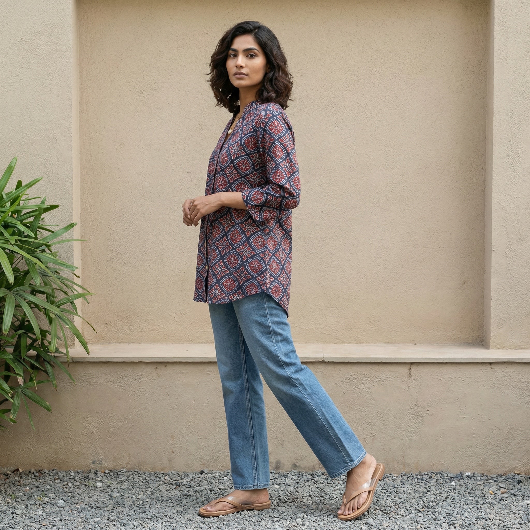 Crafted from 100% breathable cotton, this women’s shirt brings comfort and effortless style together. Designed with a relaxed fit, it features a button-down front.