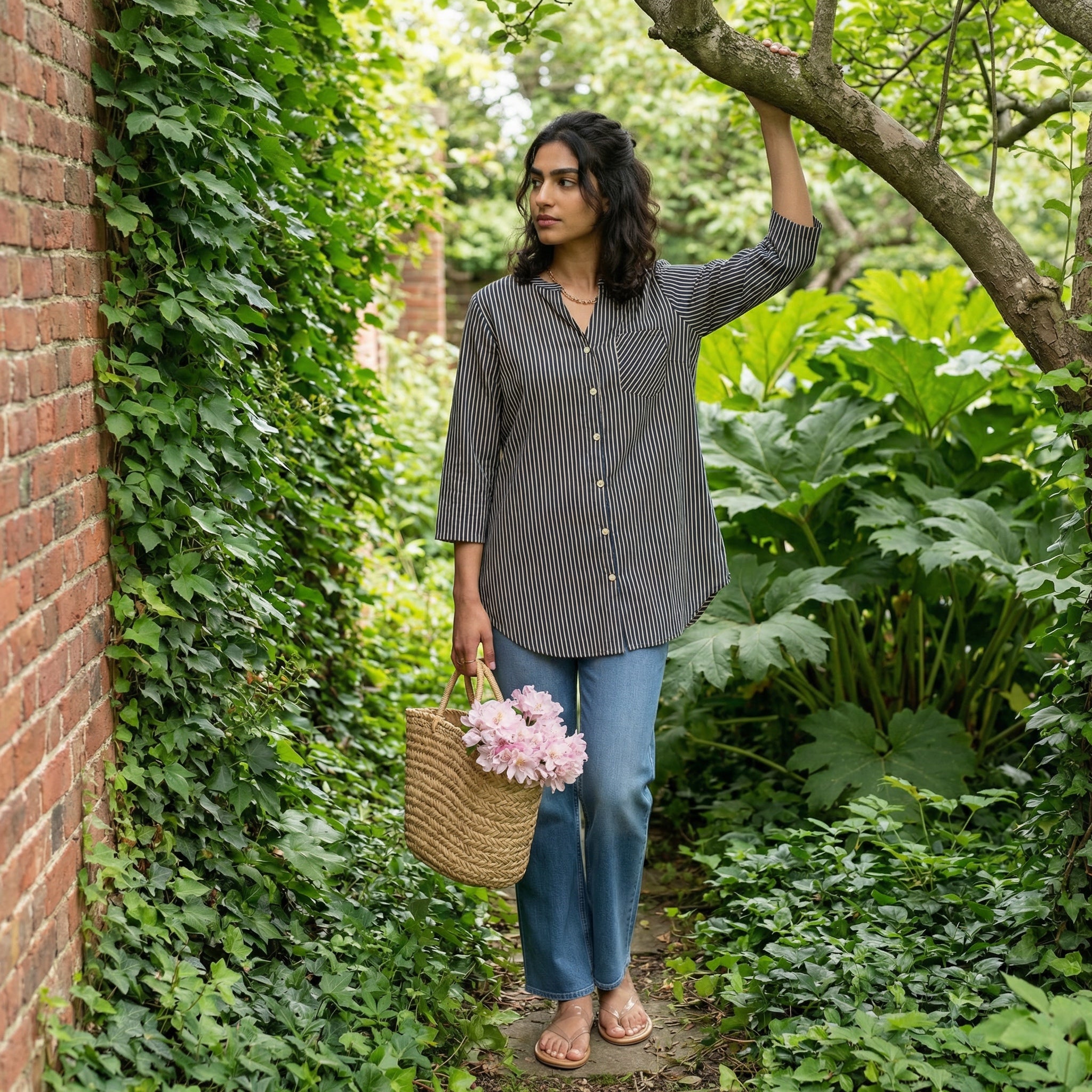 Crafted from 100% breathable cotton, this women’s shirt brings comfort and effortless style together. Designed with a relaxed fit, it features a button-down front.