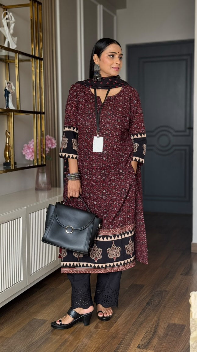 Black Ajrakh Border kurta - MYSANSKRITAM