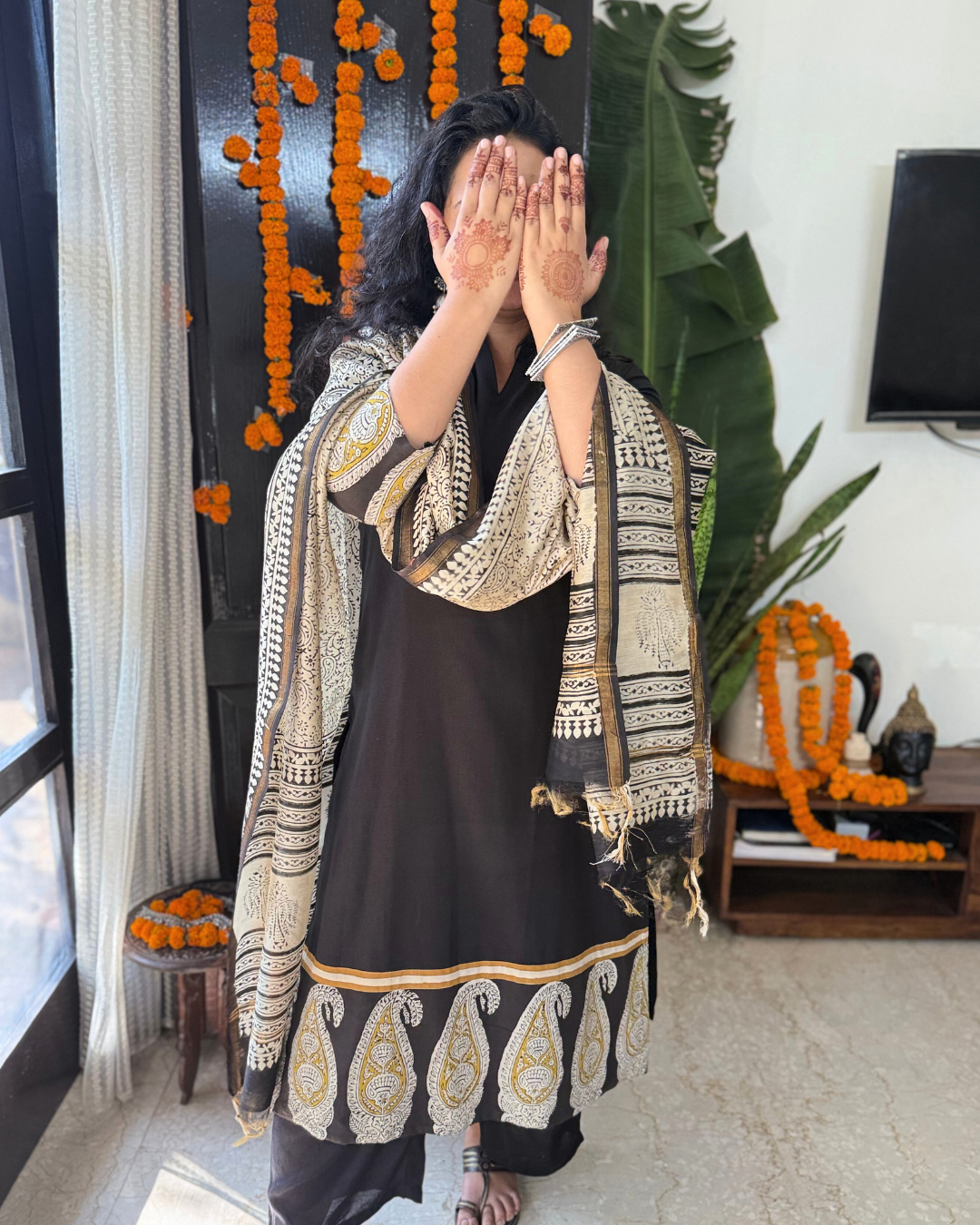 Black big border kurta with chanderi duppata