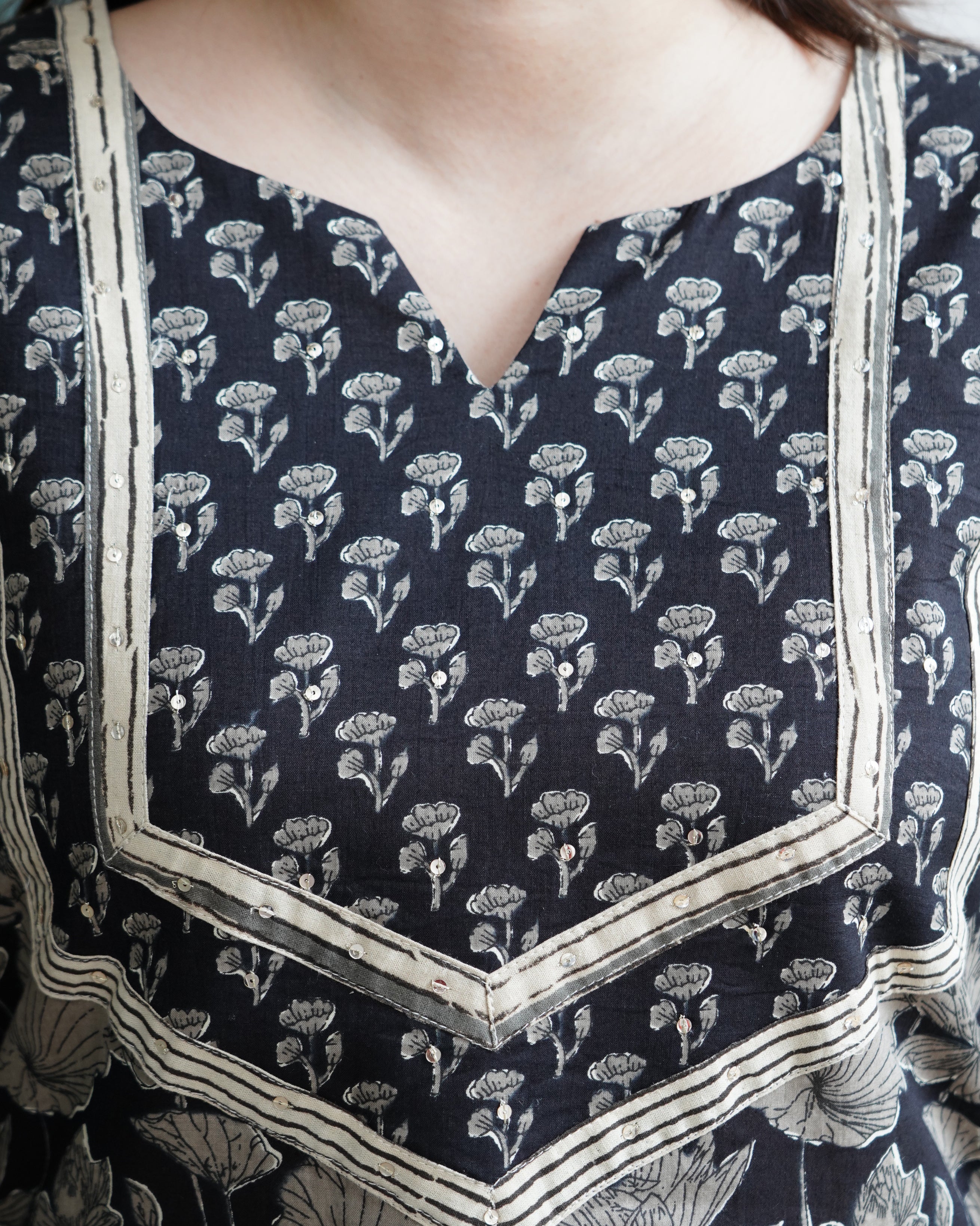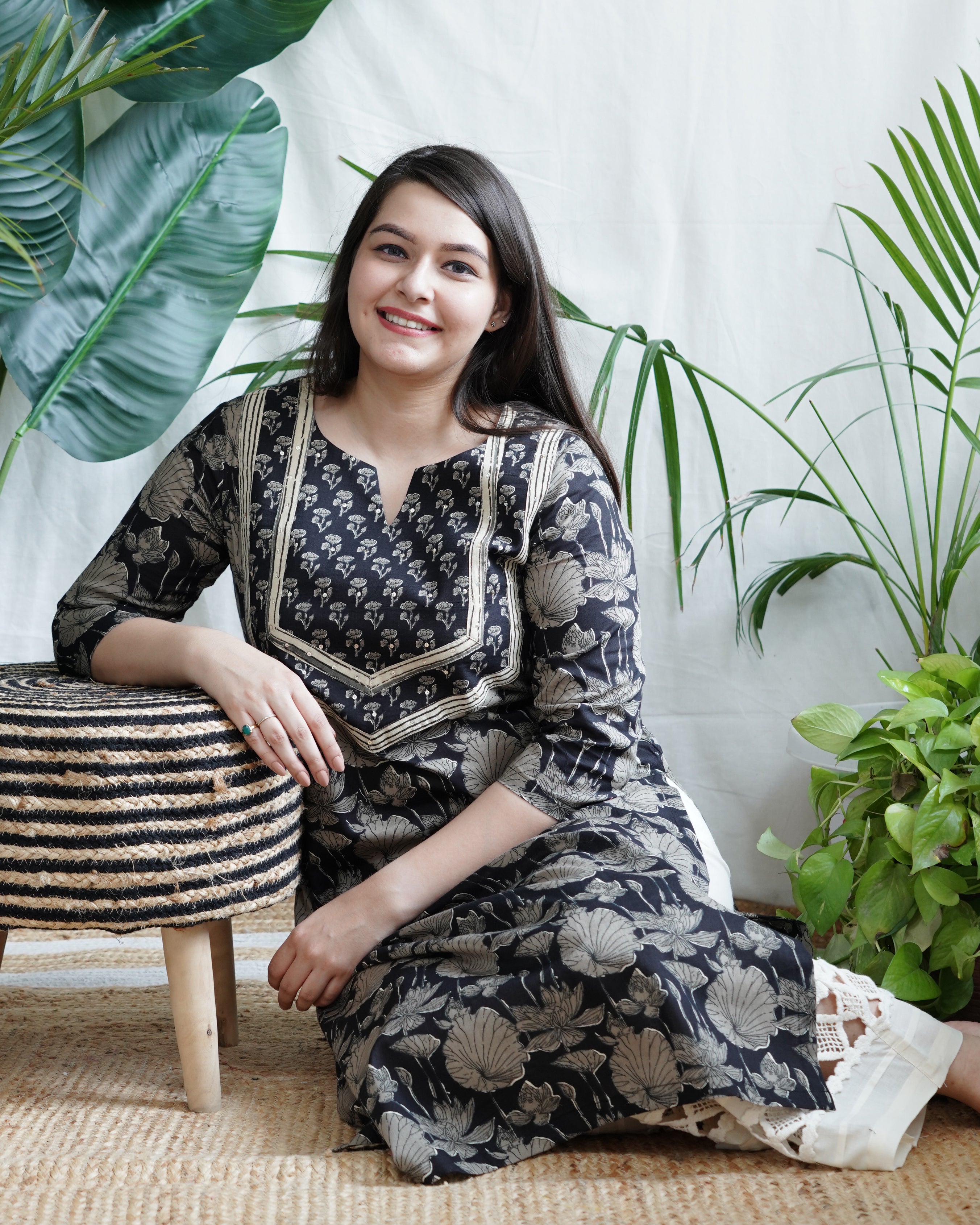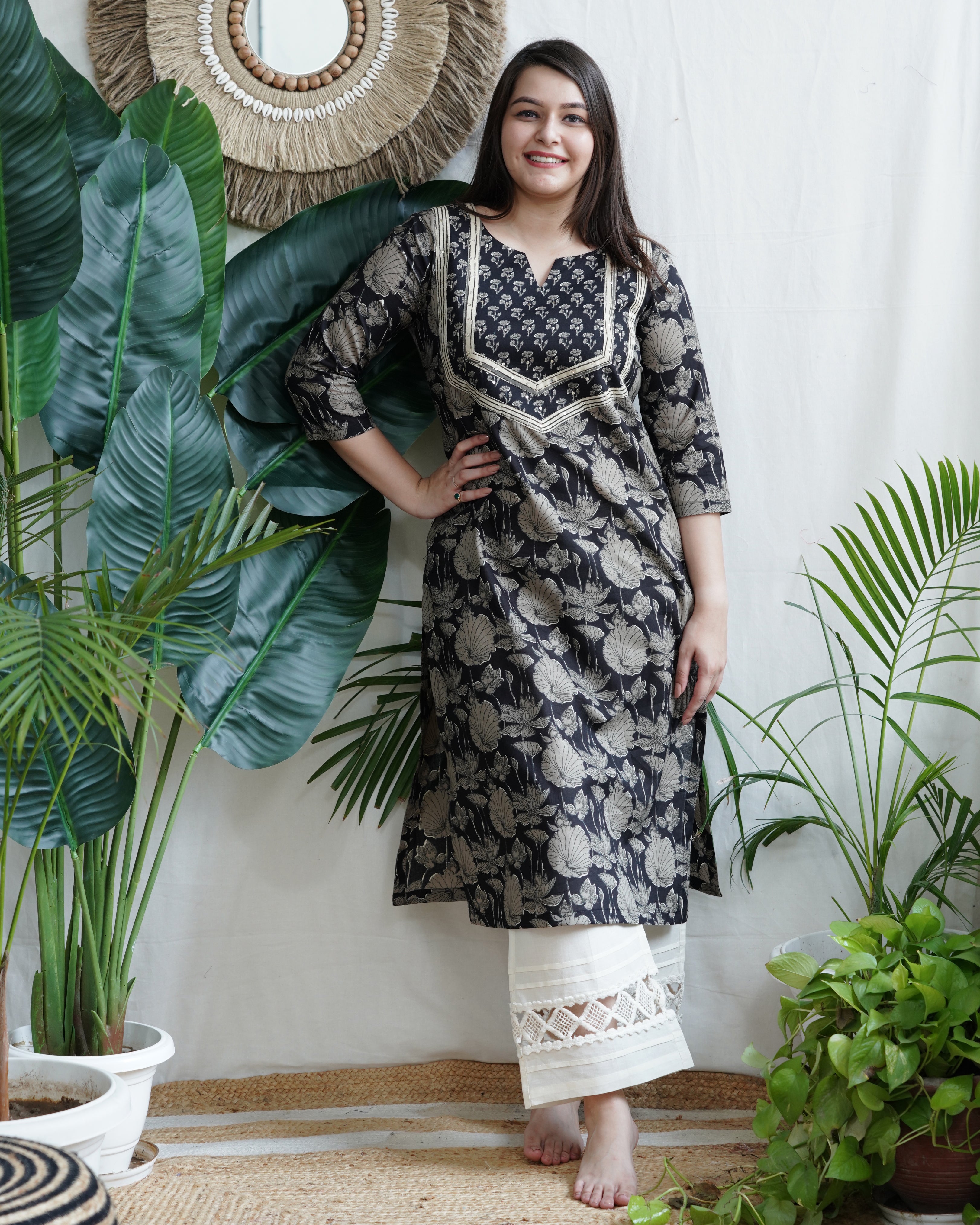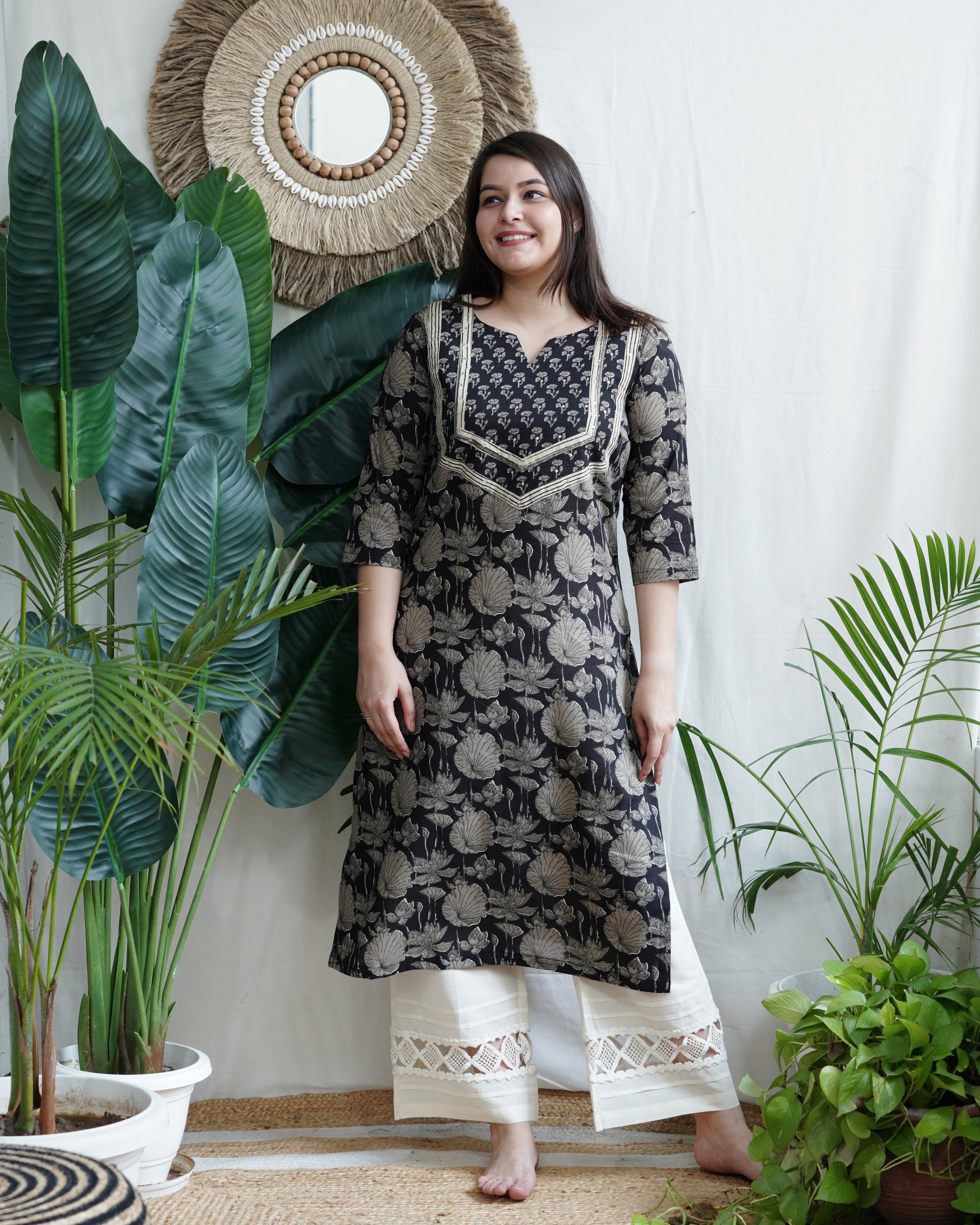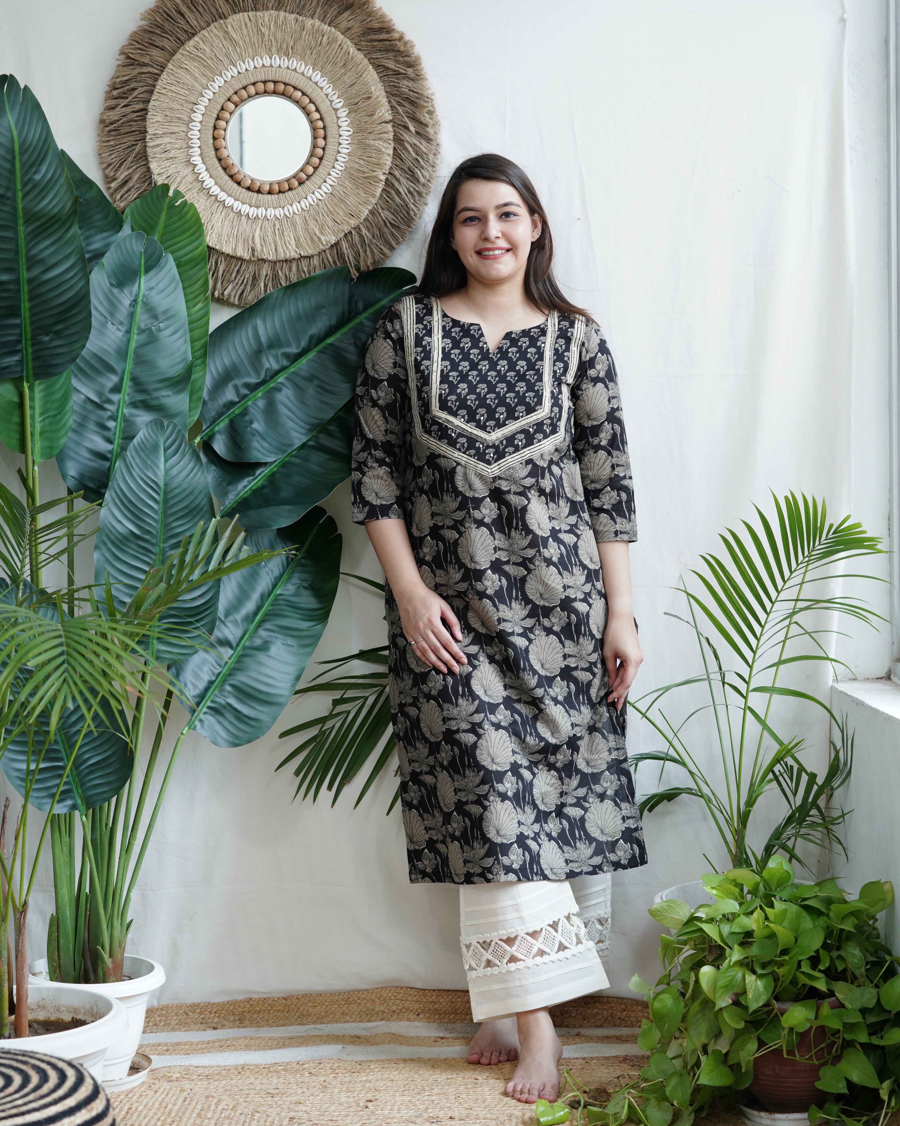 Black Floral Yoke Kurta