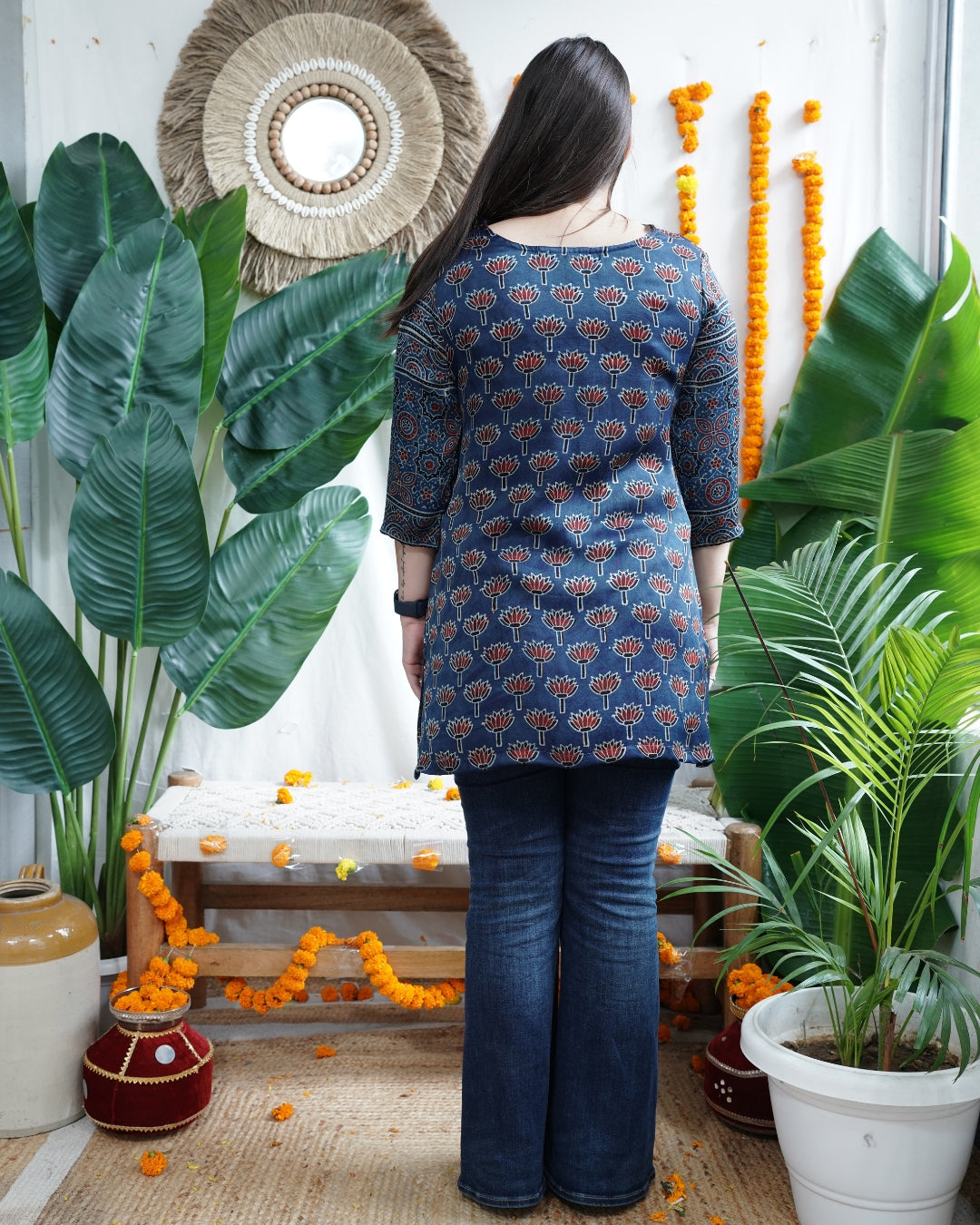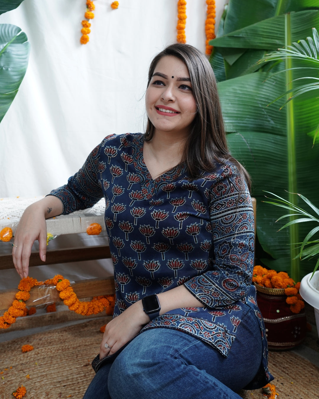 • Dry clean or HAND WASH only to preserve the natural dyes and intricate Ajrakh block print.