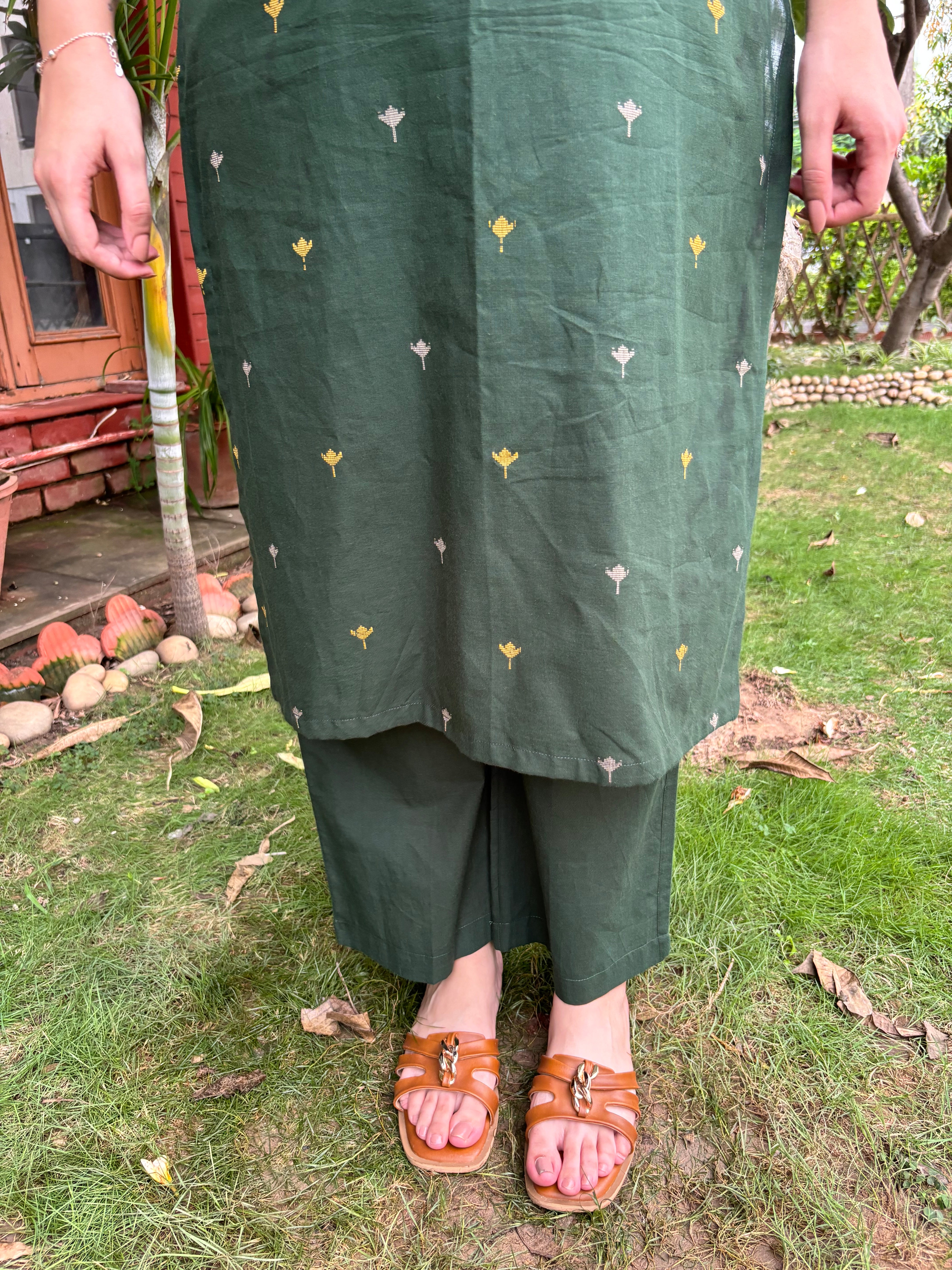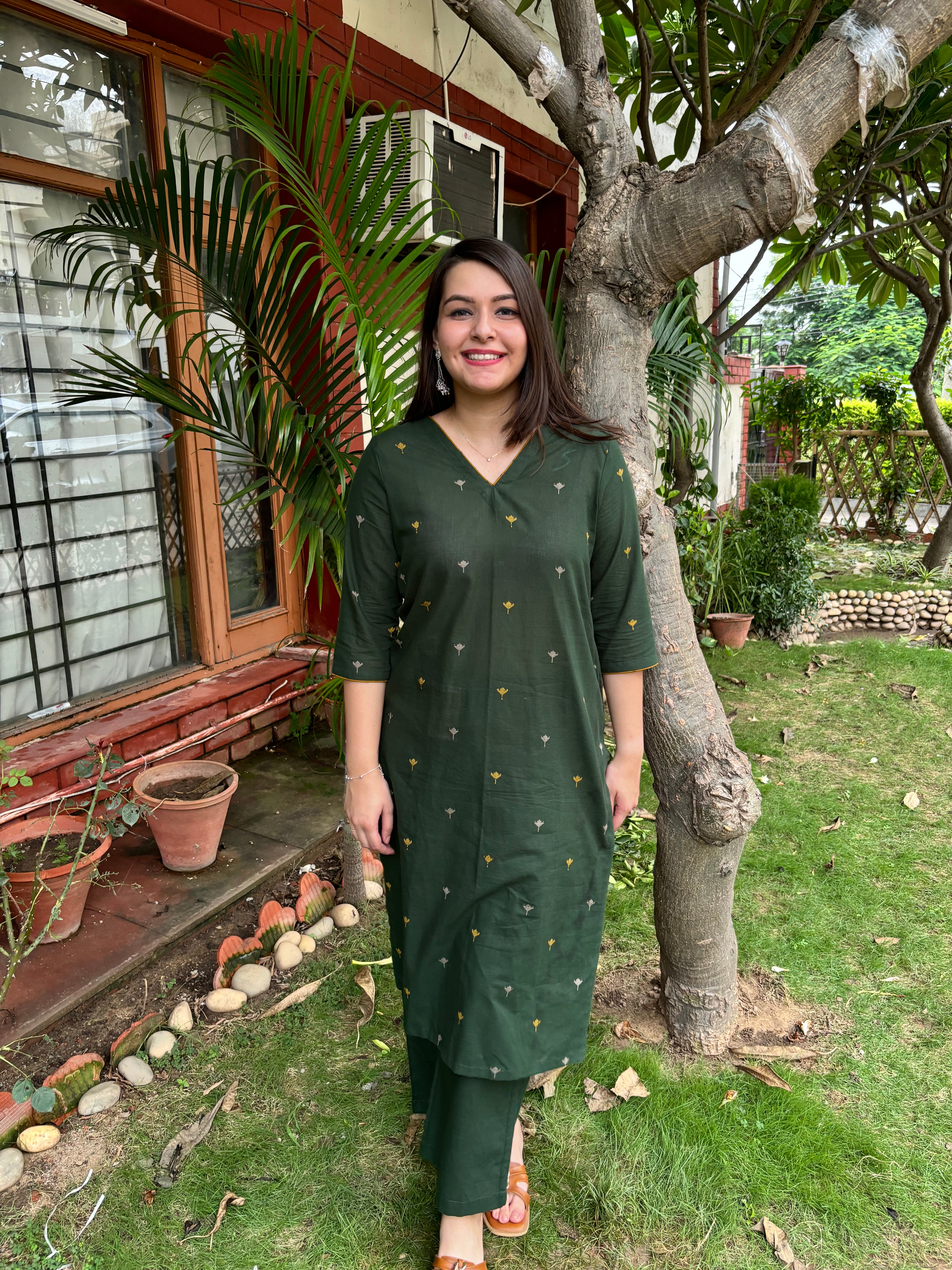 Comfortable straight-fit cotton kurta paired with matching palazzo, designed for effortless everyday style and ease