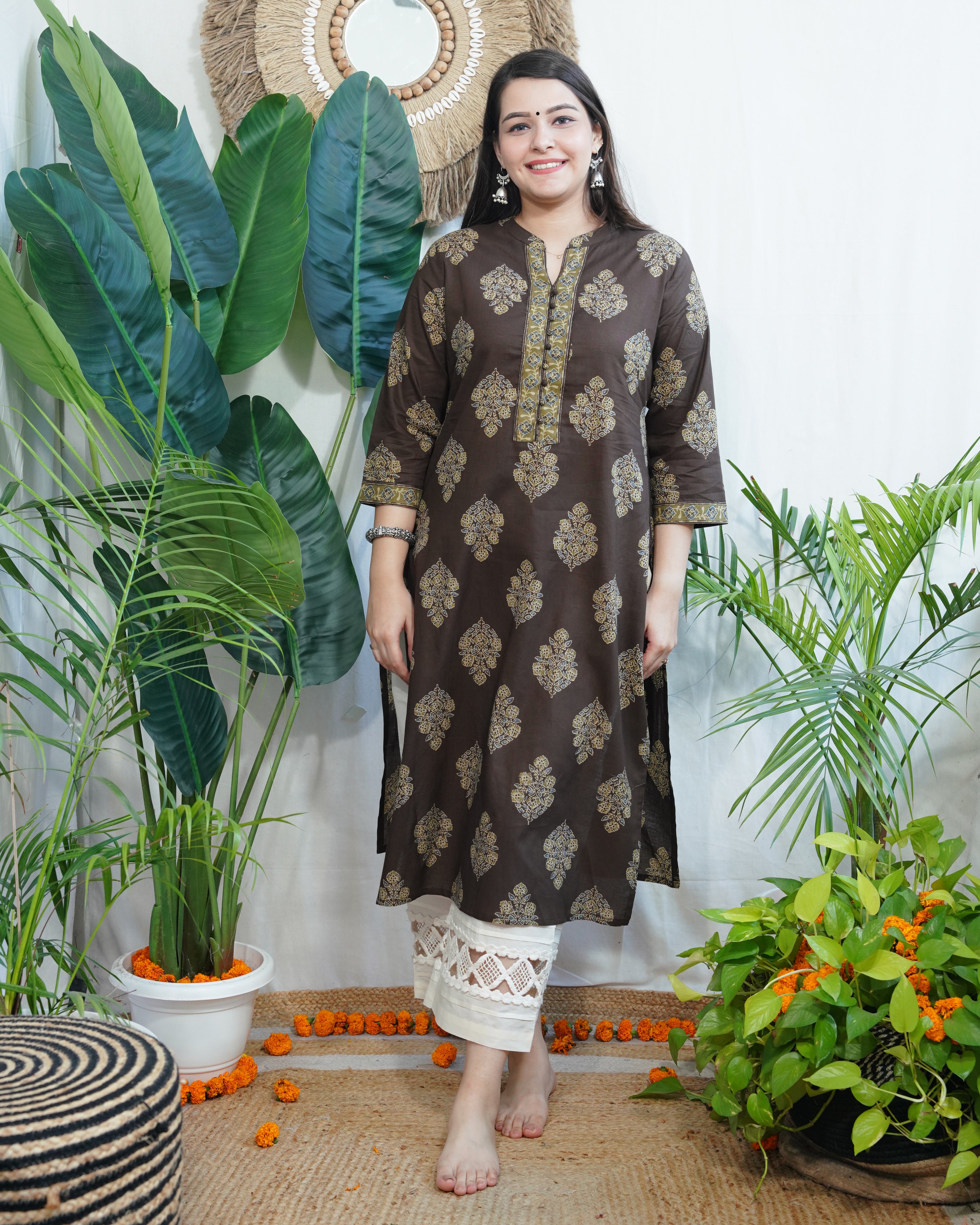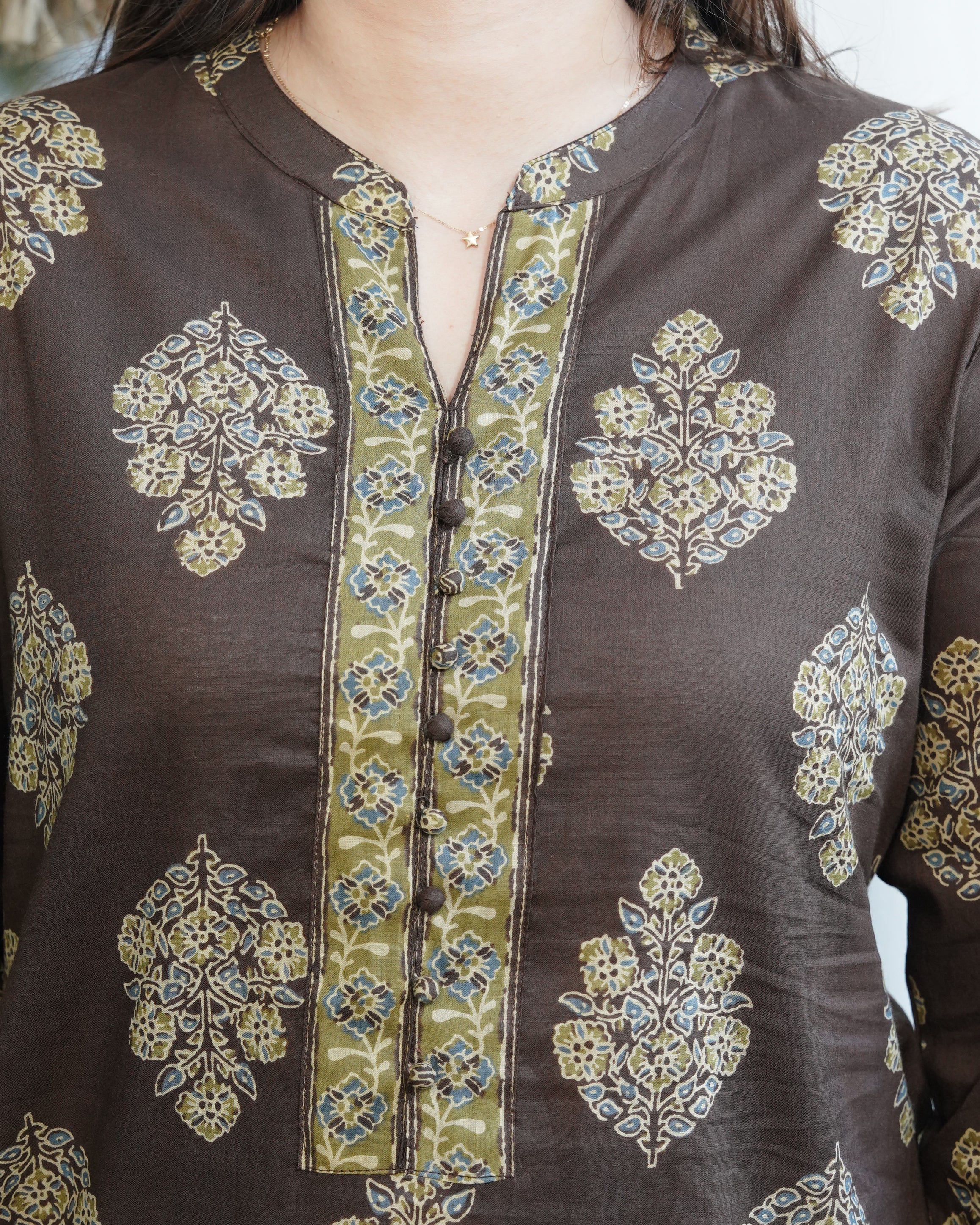 Brown Buta Pothli button kurta