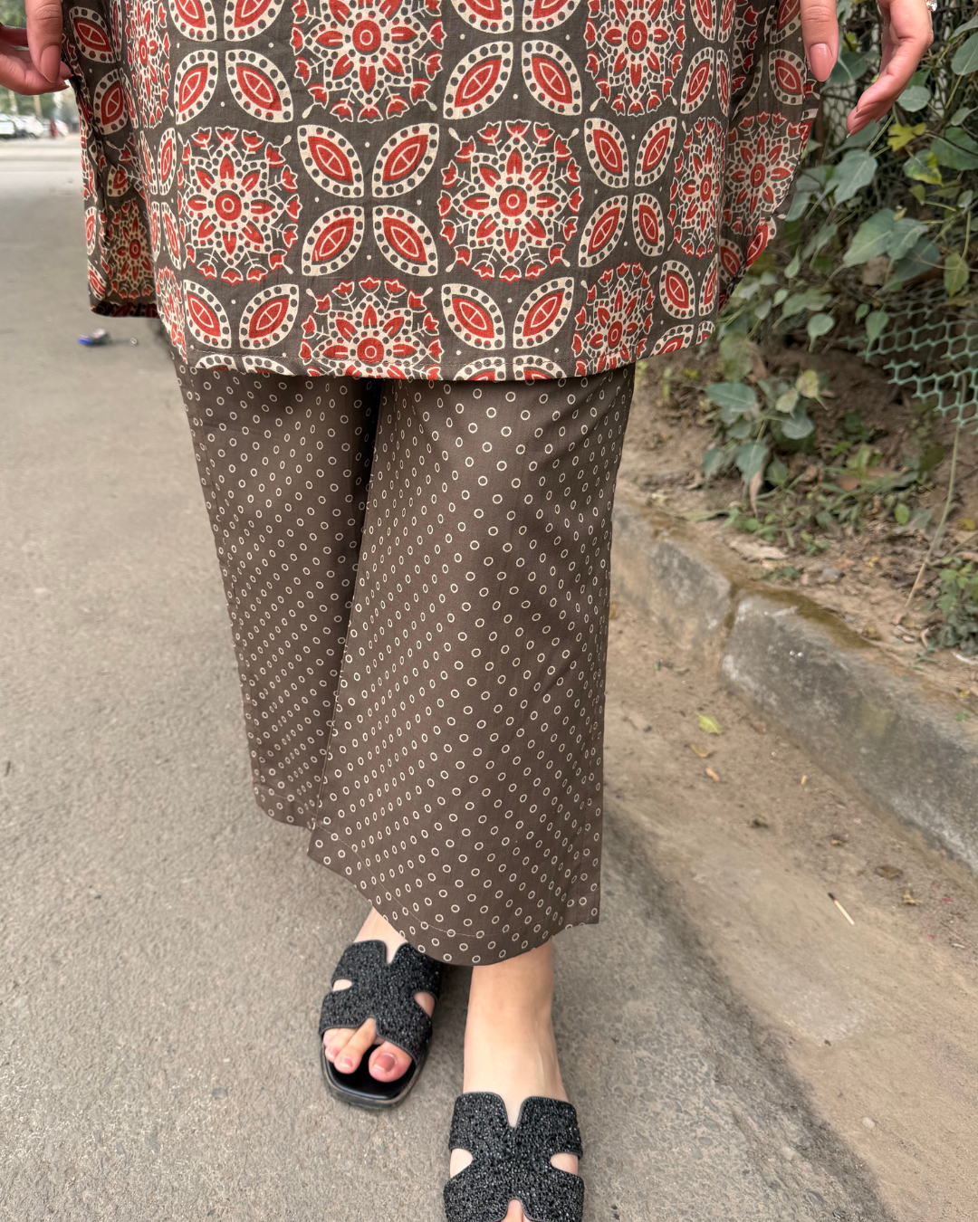 Knee length Cotton kurta paired with matching palazzo, designed for effortless everyday style and ease
