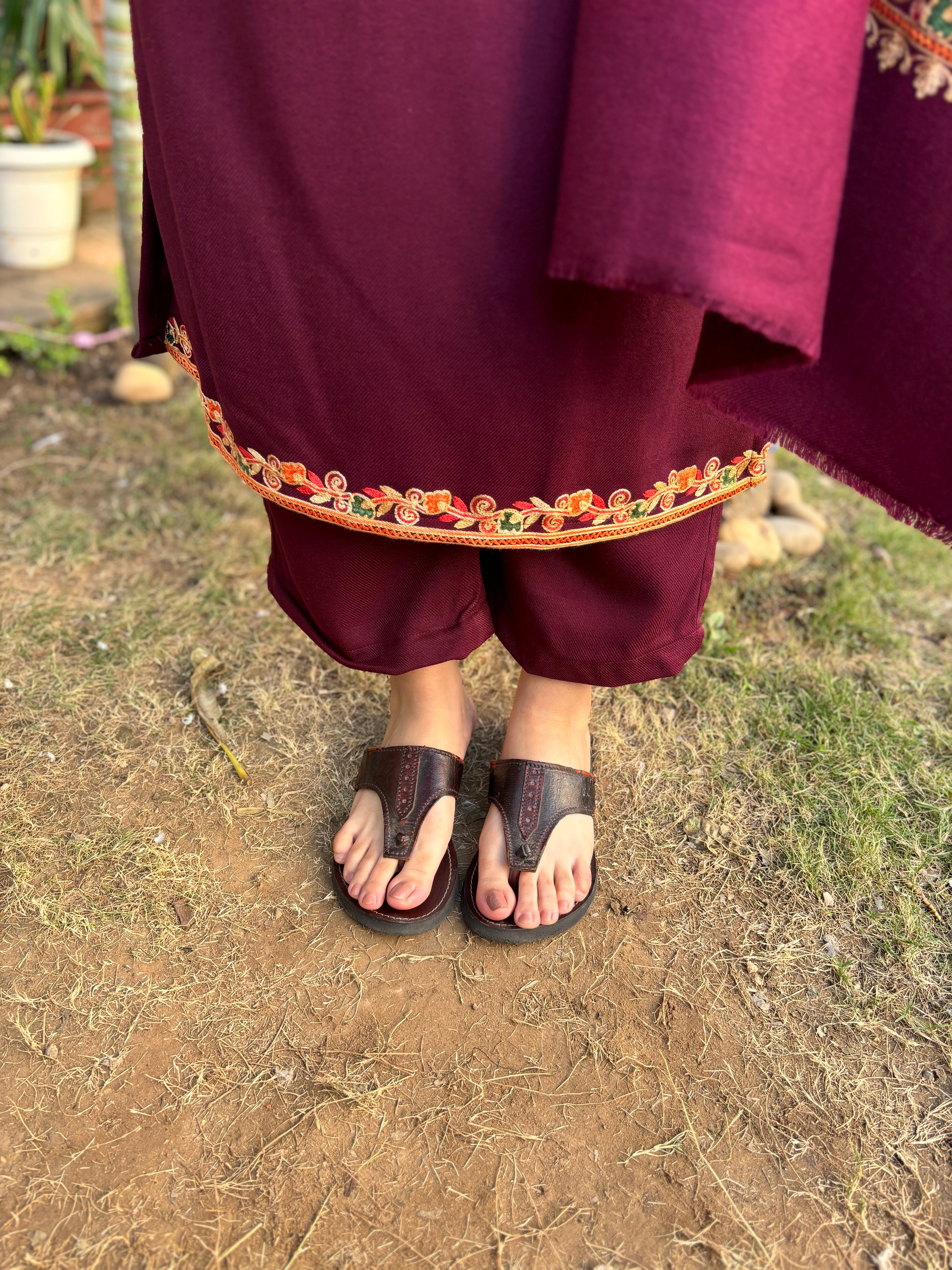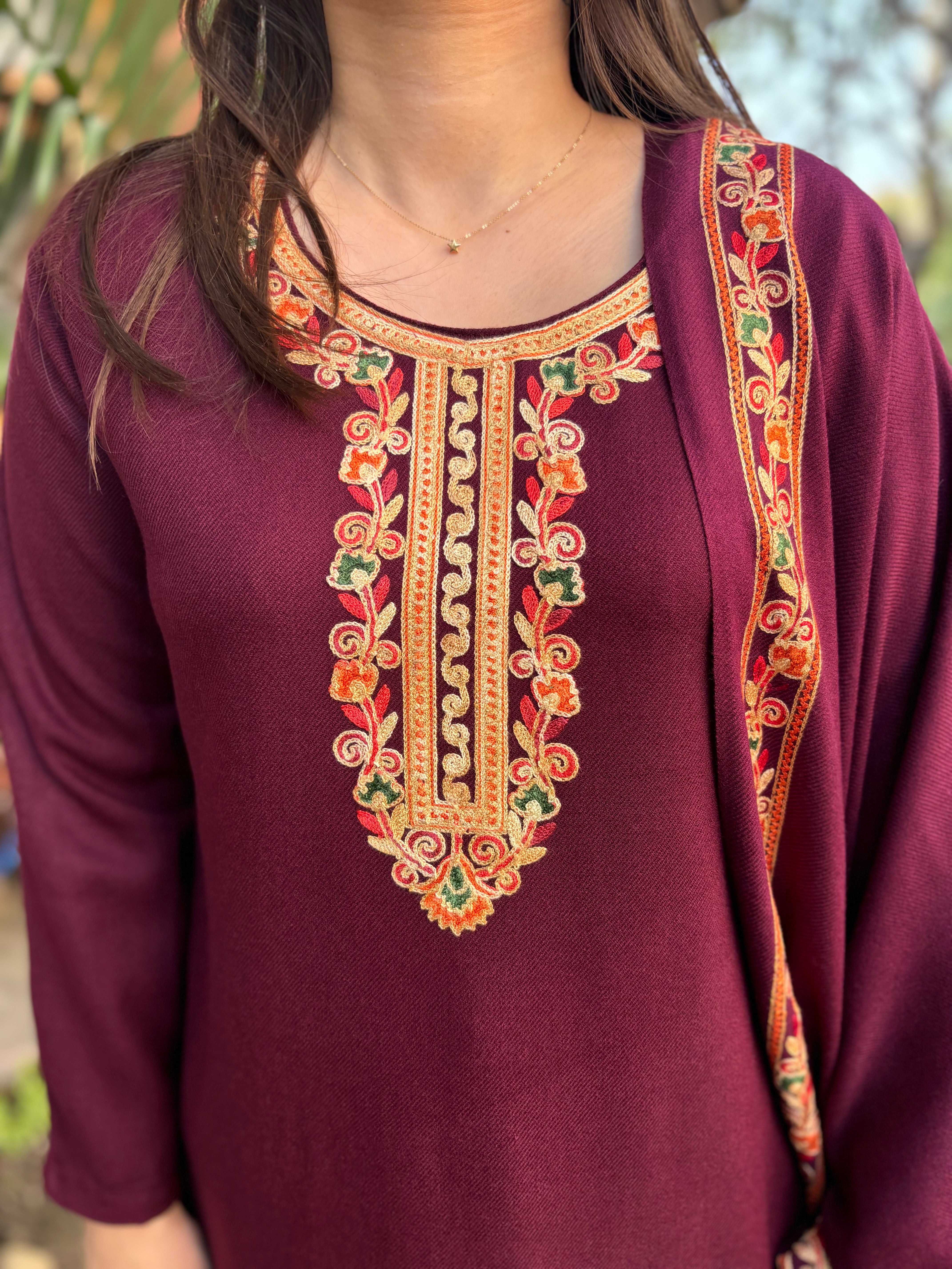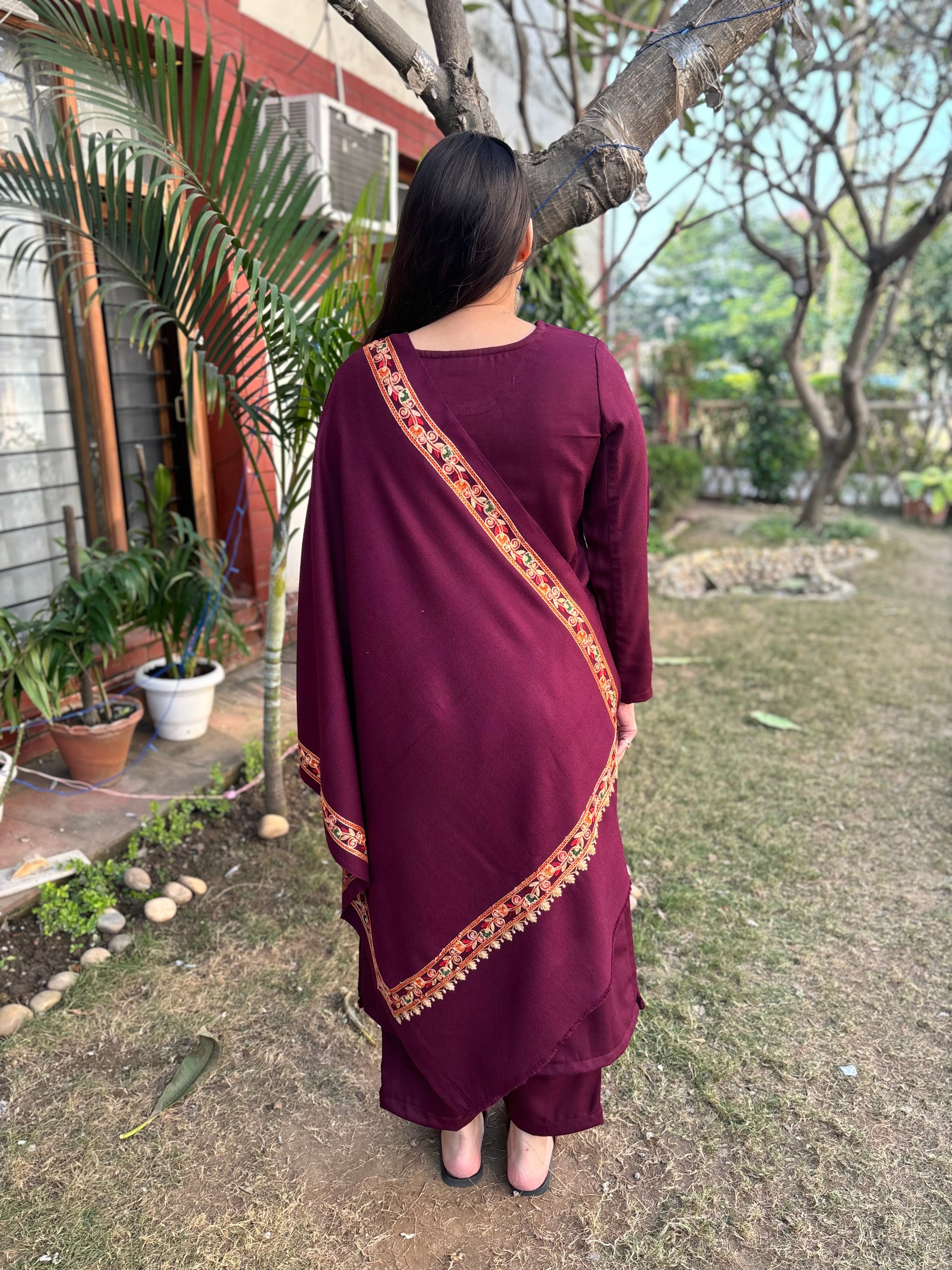 Woollen solid Suit Set – Crafted Warmth, Himachali Heritage. Matched with embroidered woollen stole.