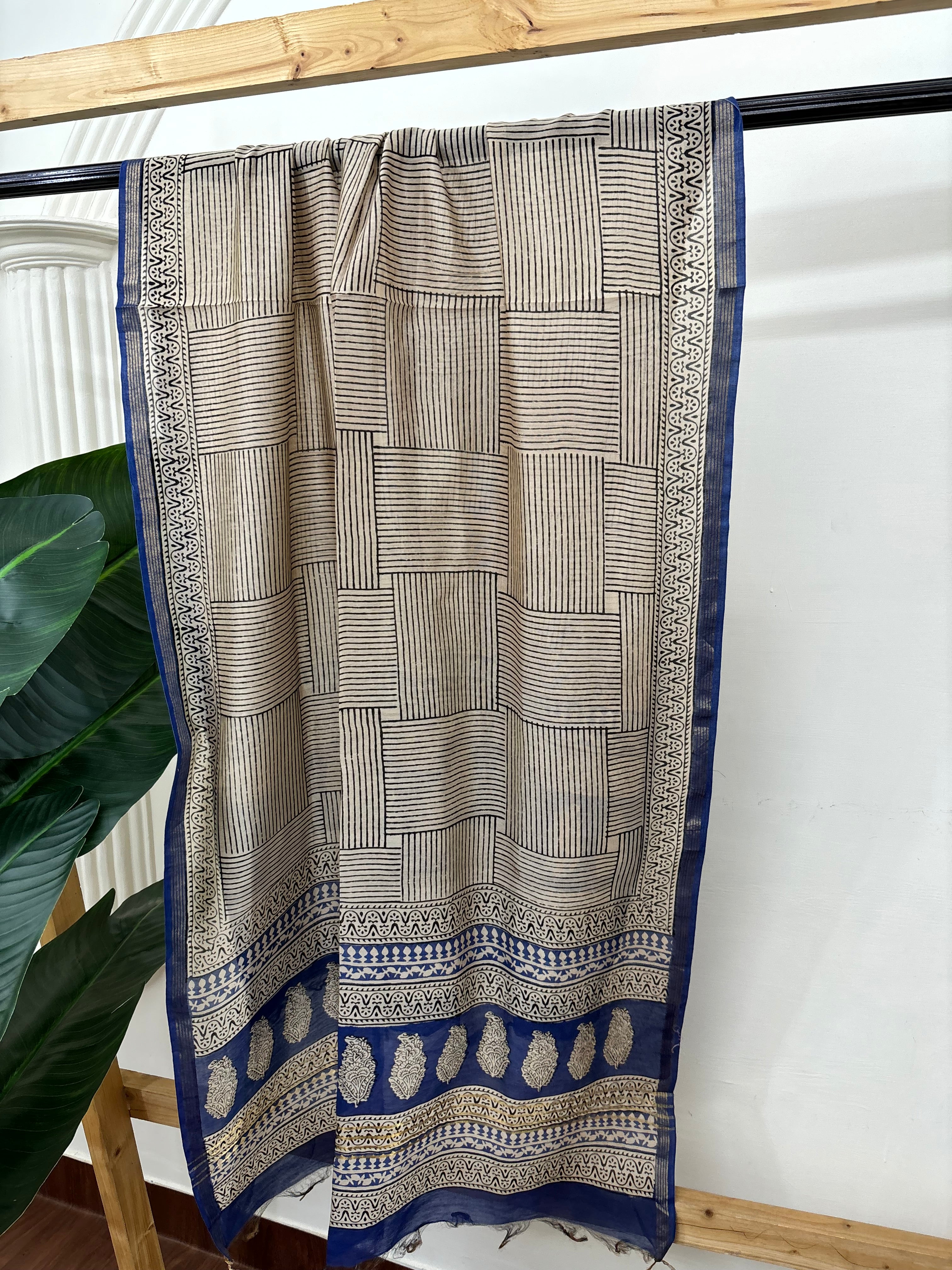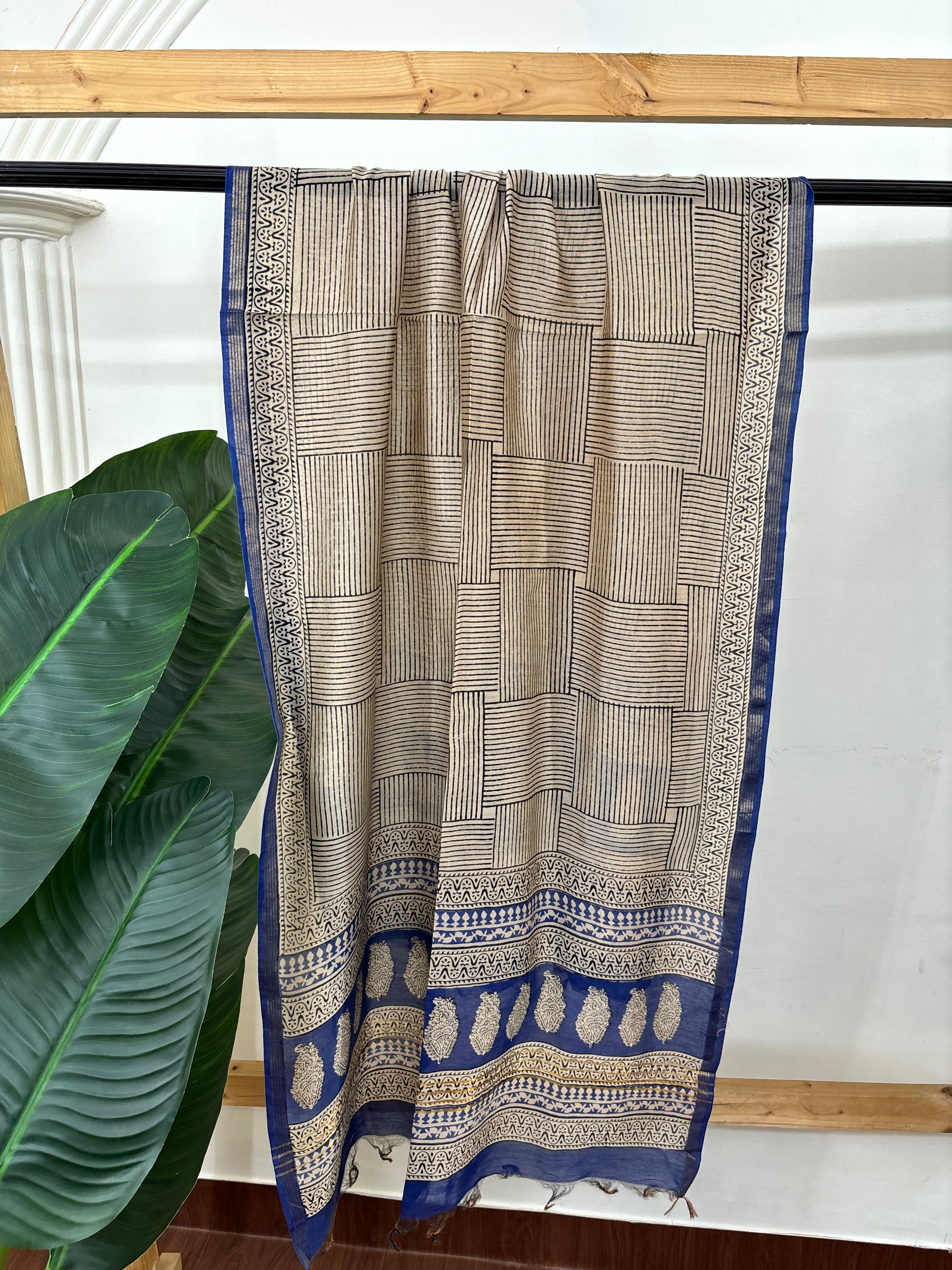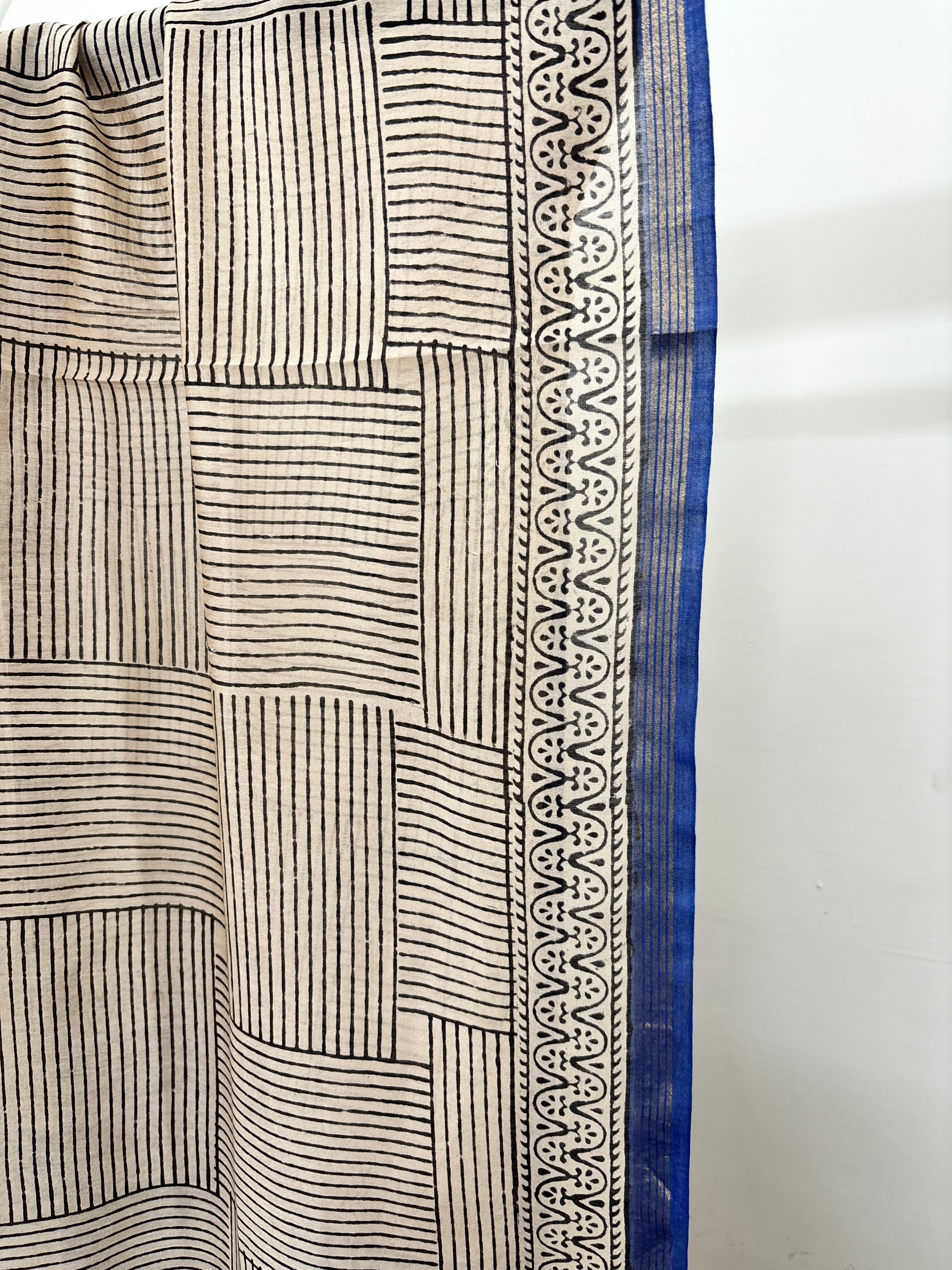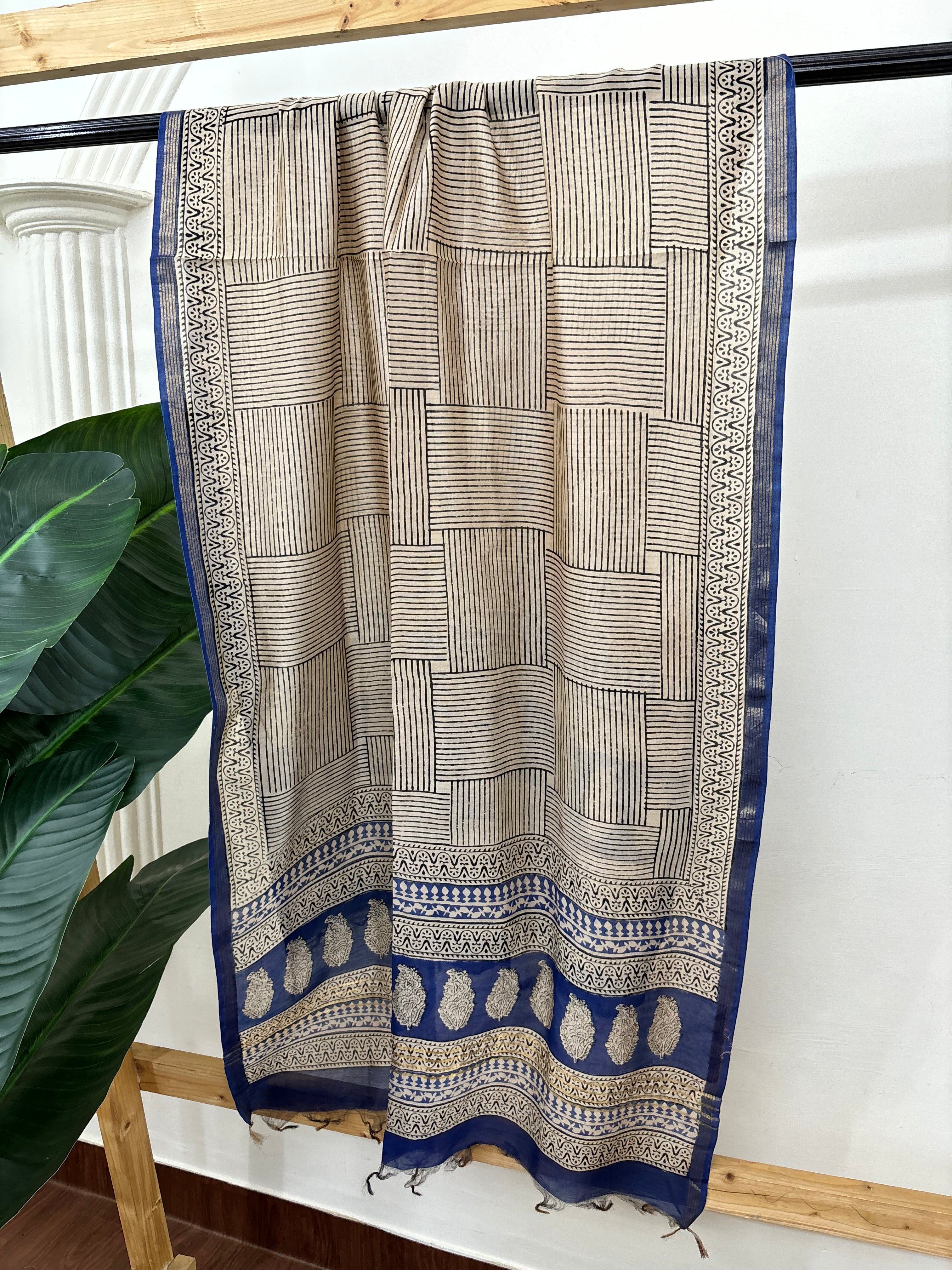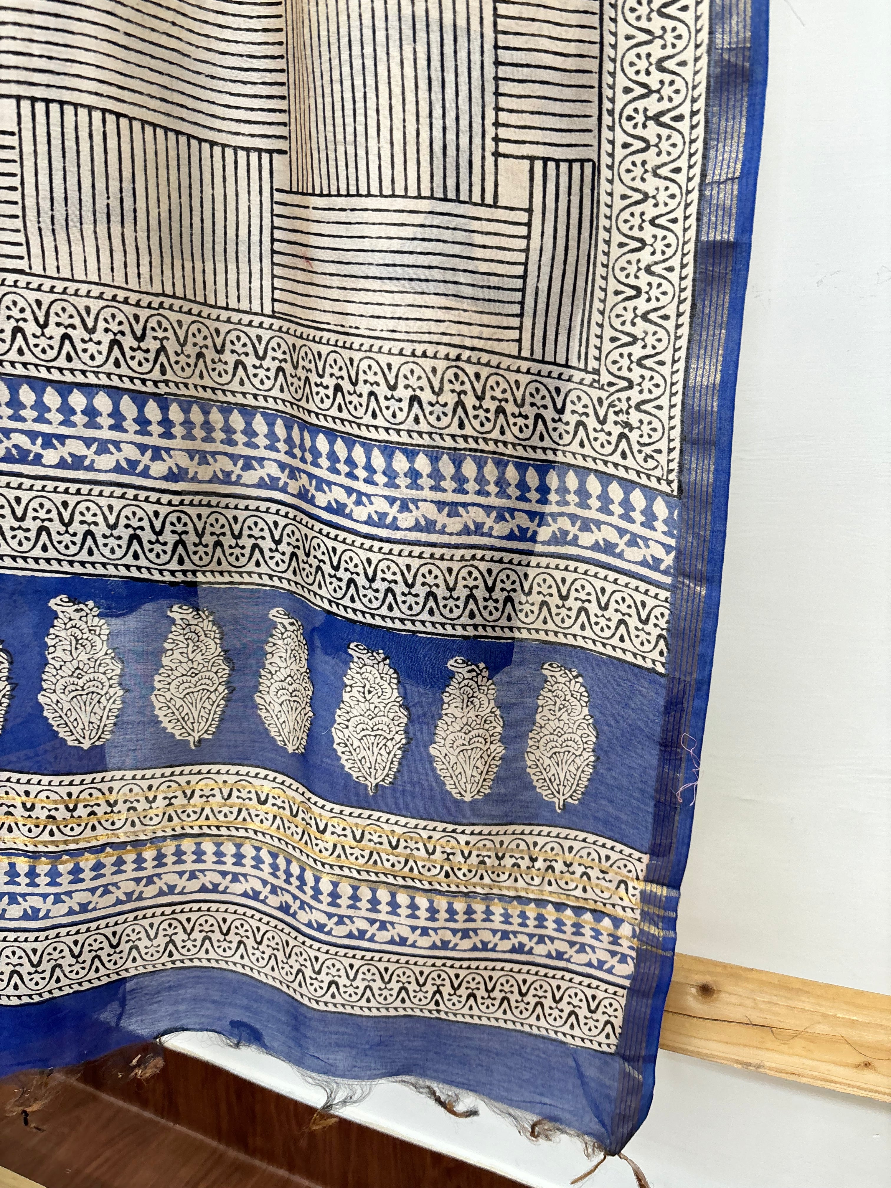 Cream blue checks chanderi duppata
