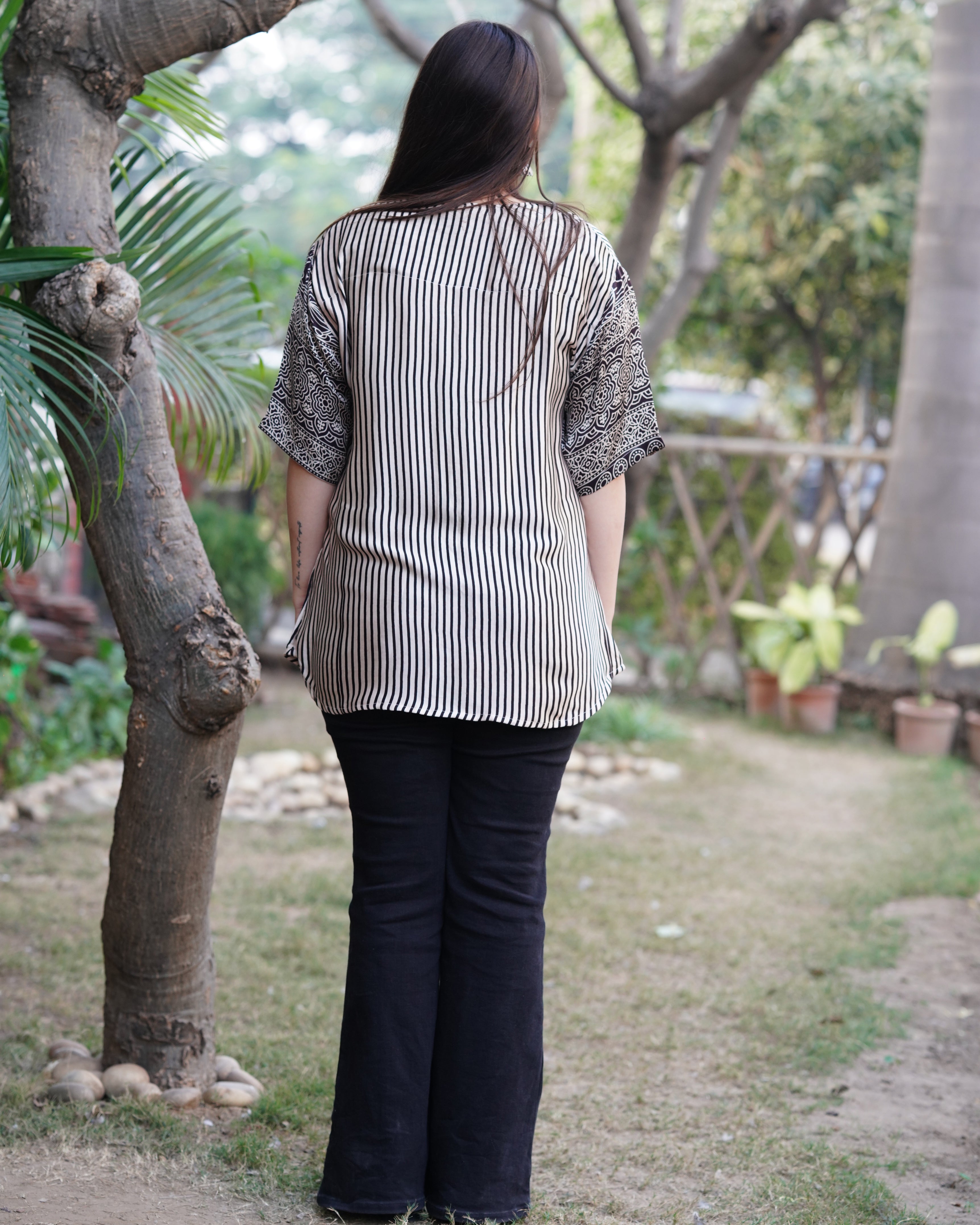 Cream lines modal silk shirt