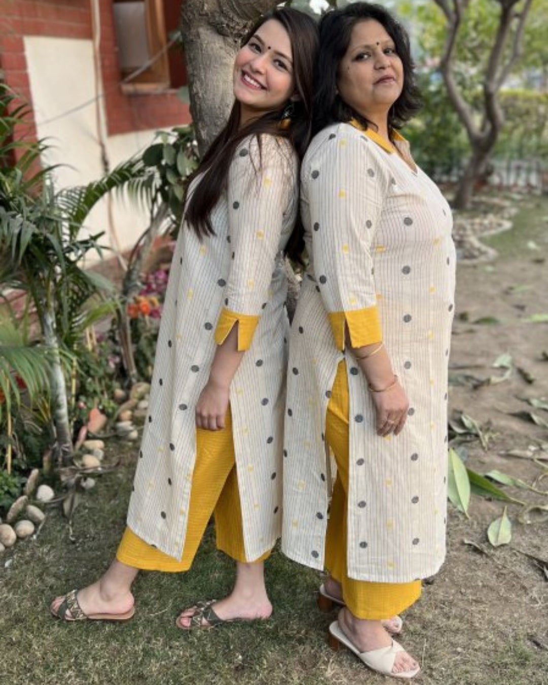 Comfortable straight-fit cotton kurta paired with matching palazzo, designed for effortless everyday style and ease