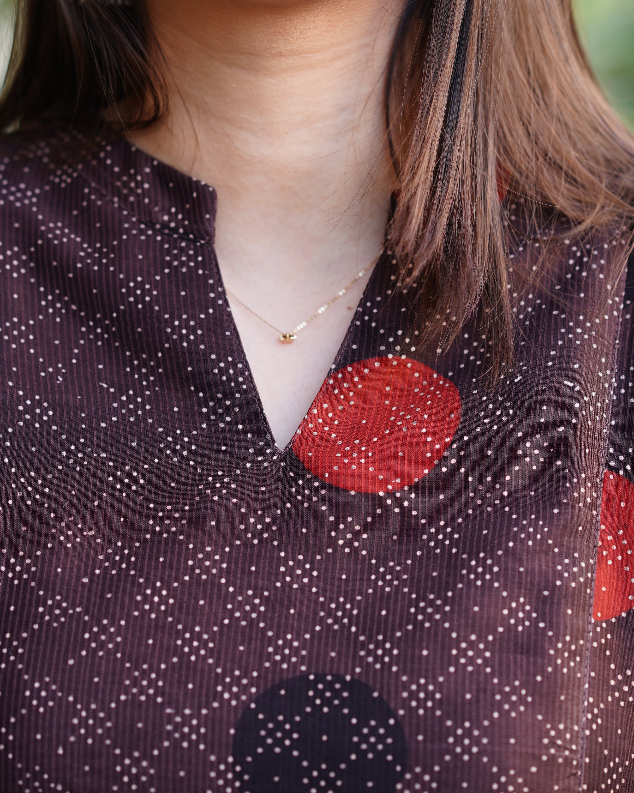 Light fabric that falls easily on the body and looks flattering. I loved the Kullu borders on the neckline and sleeves. Only suggestion I have for the team is not to call the colour 'rust'. Compared to the image shown, the colour is not bright and definitely not rust. Its more like a mustard and brown mix. Goes very well with the borders so no complaints :)
