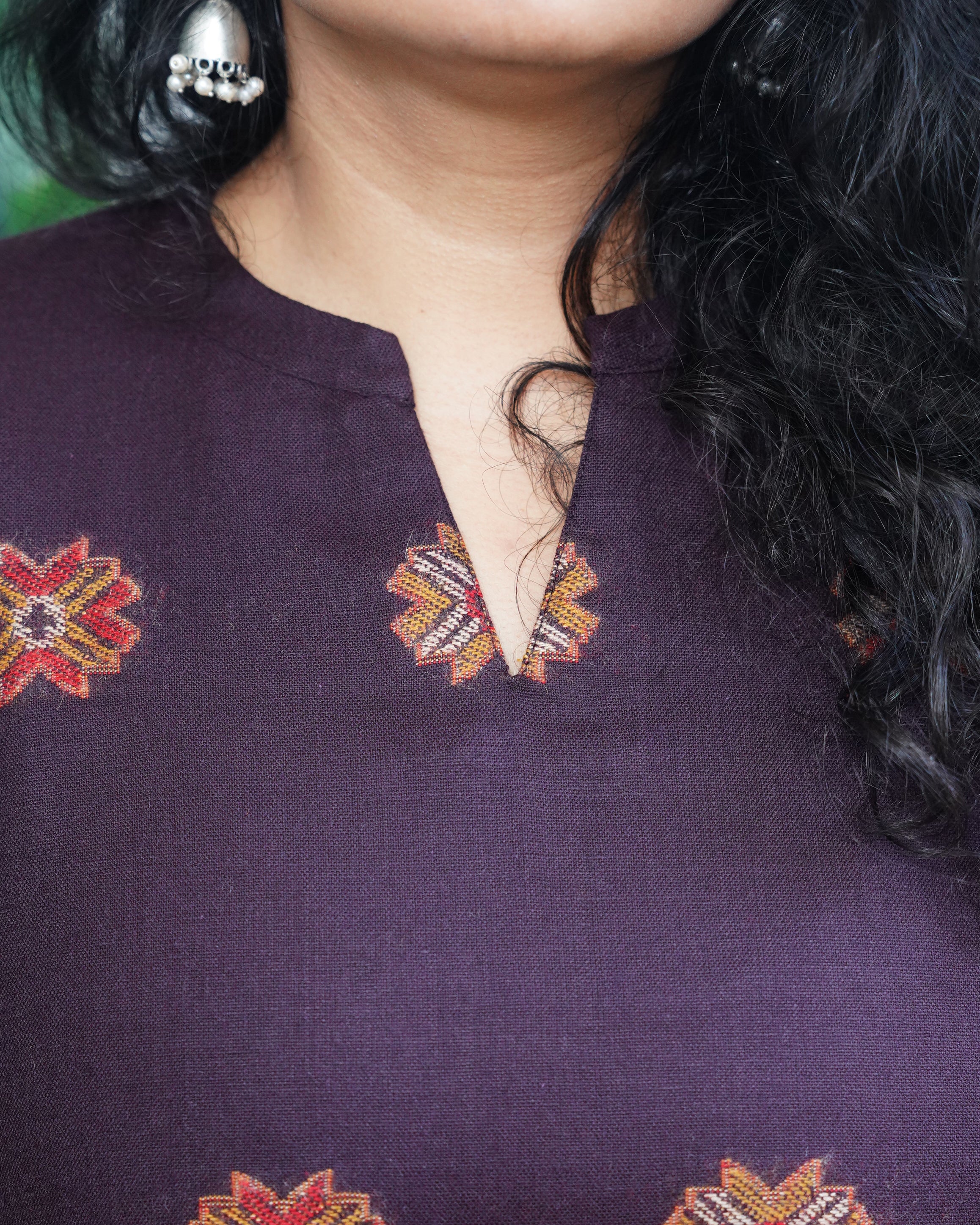 Maroon buti Ajrakh Yoke kurta