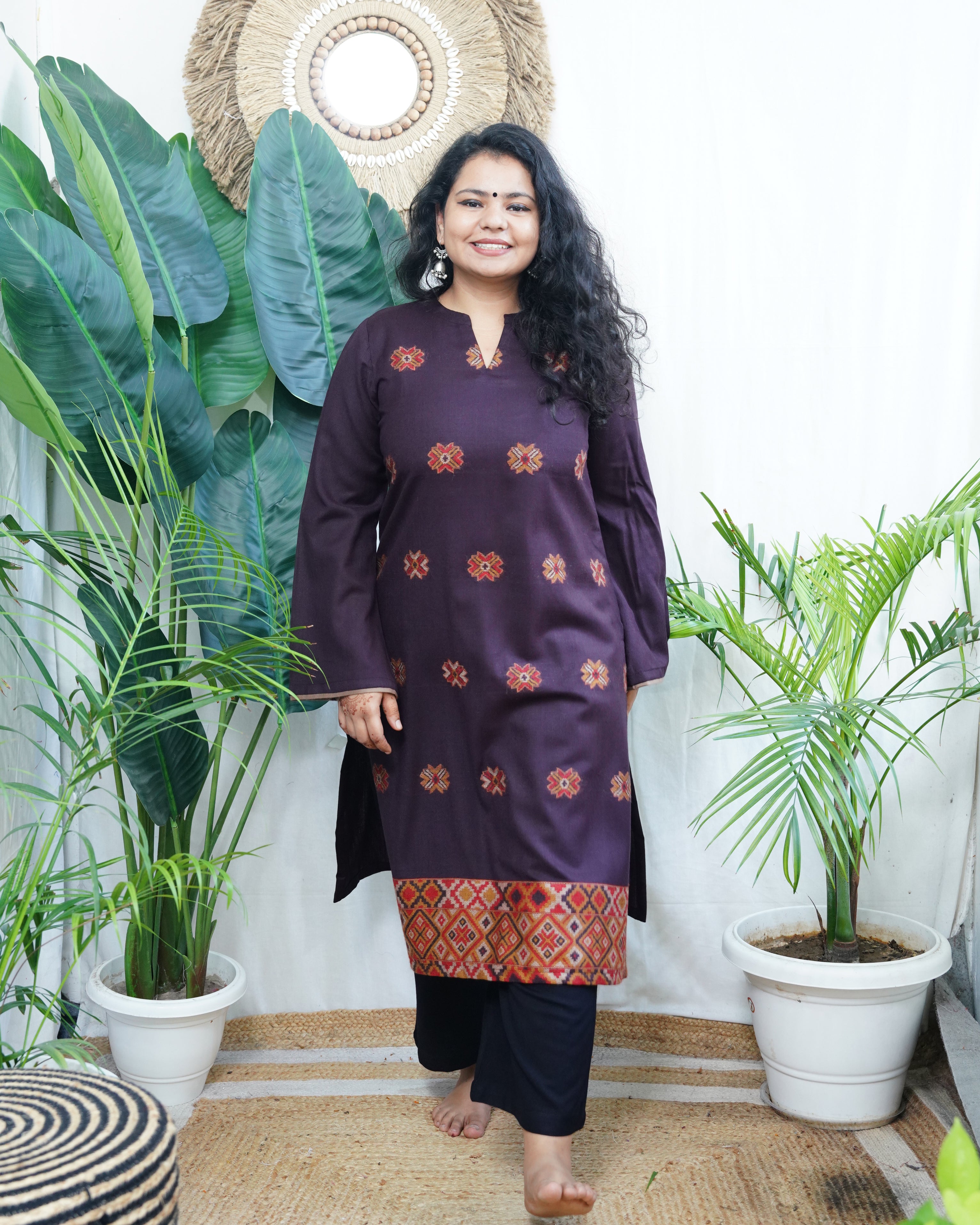 Dark brown Kullu Woollen kurta