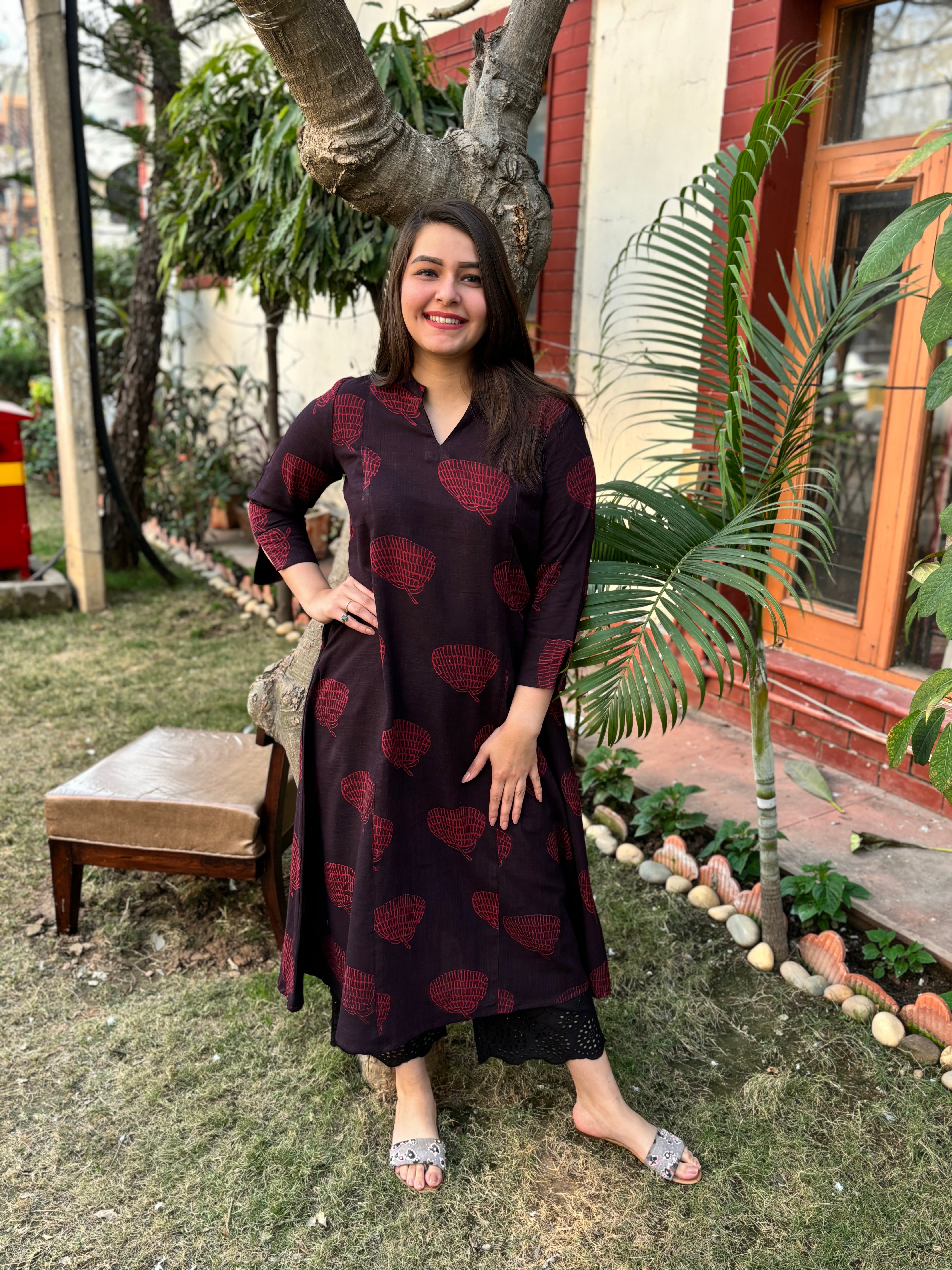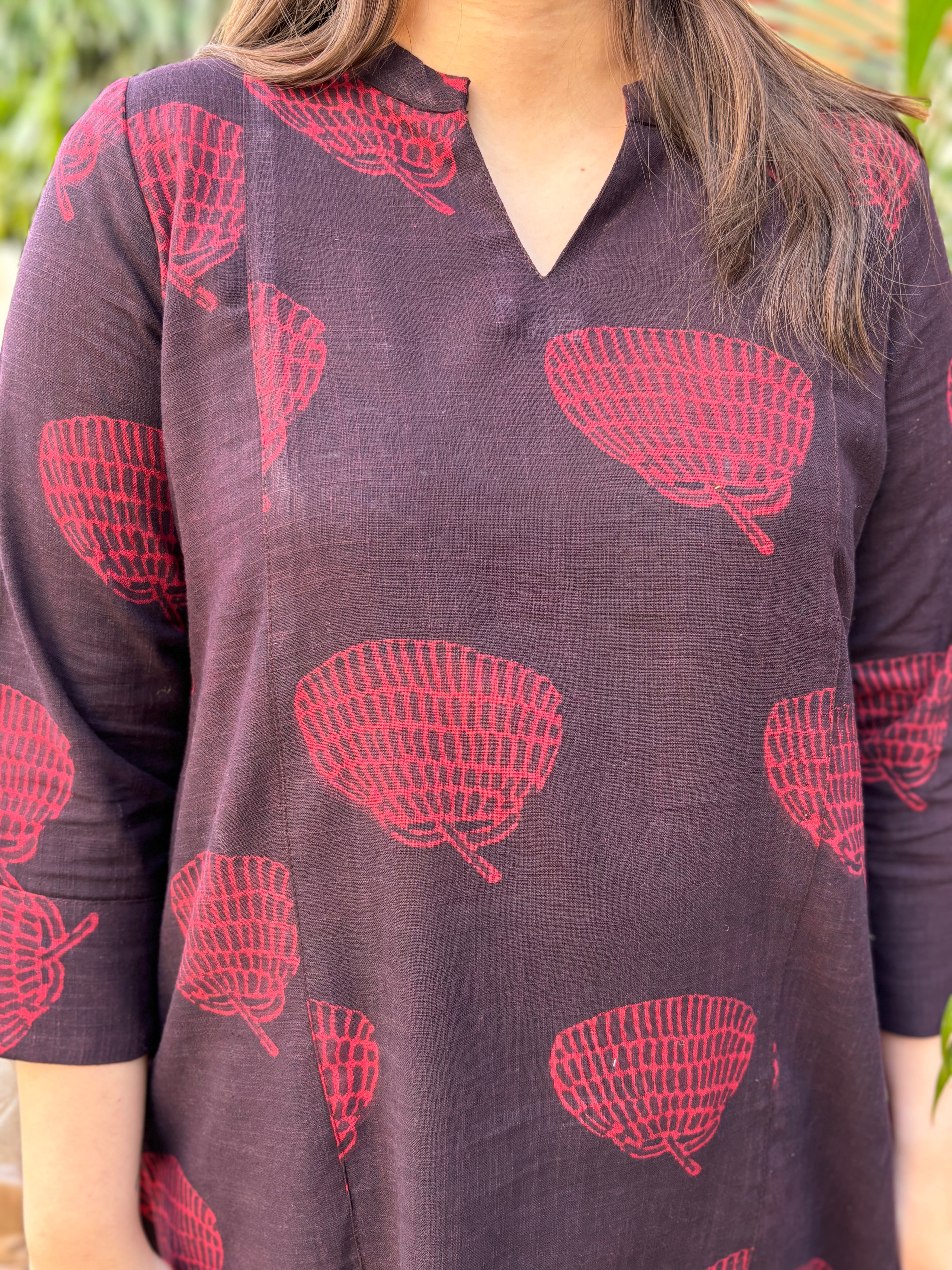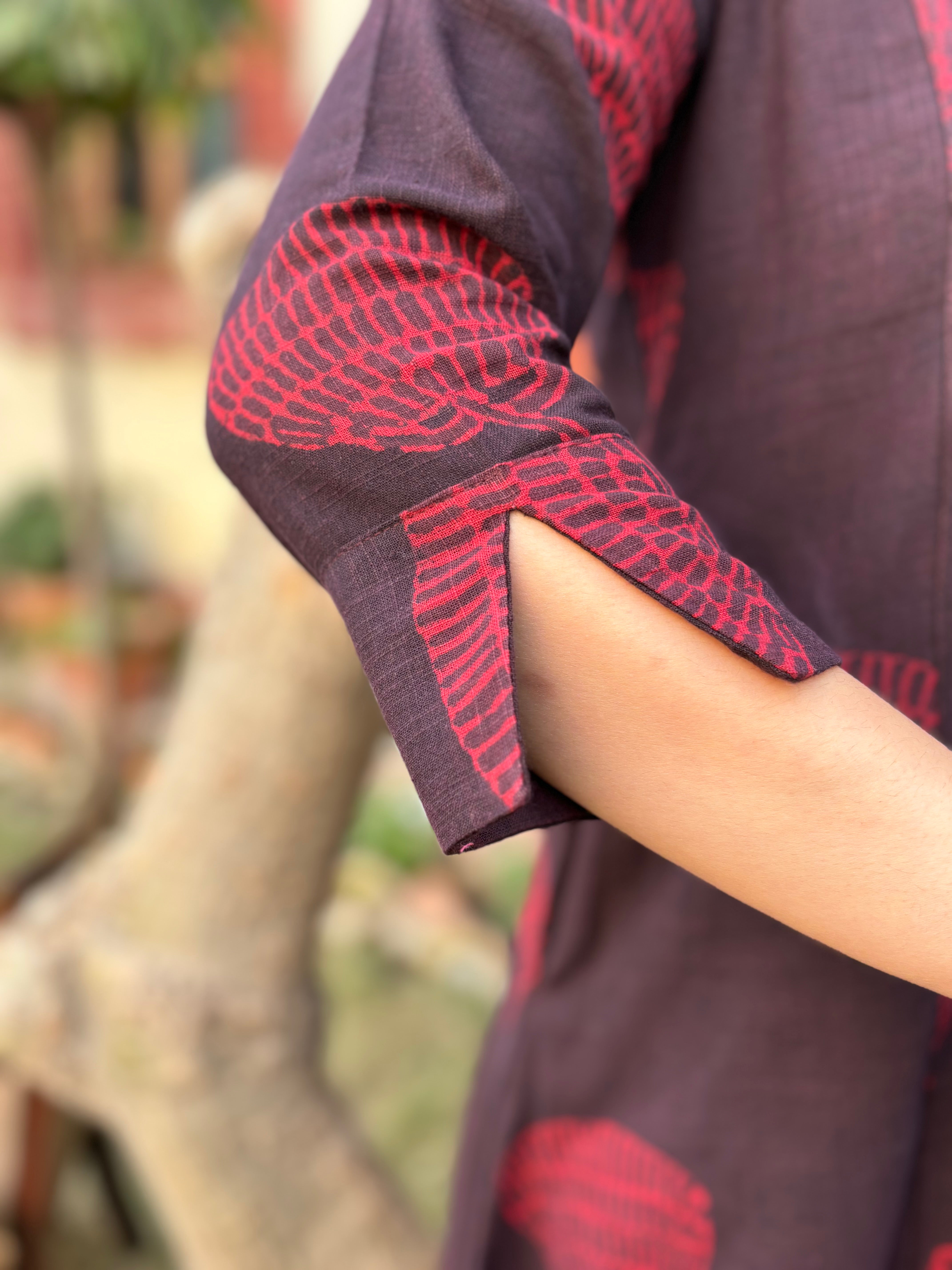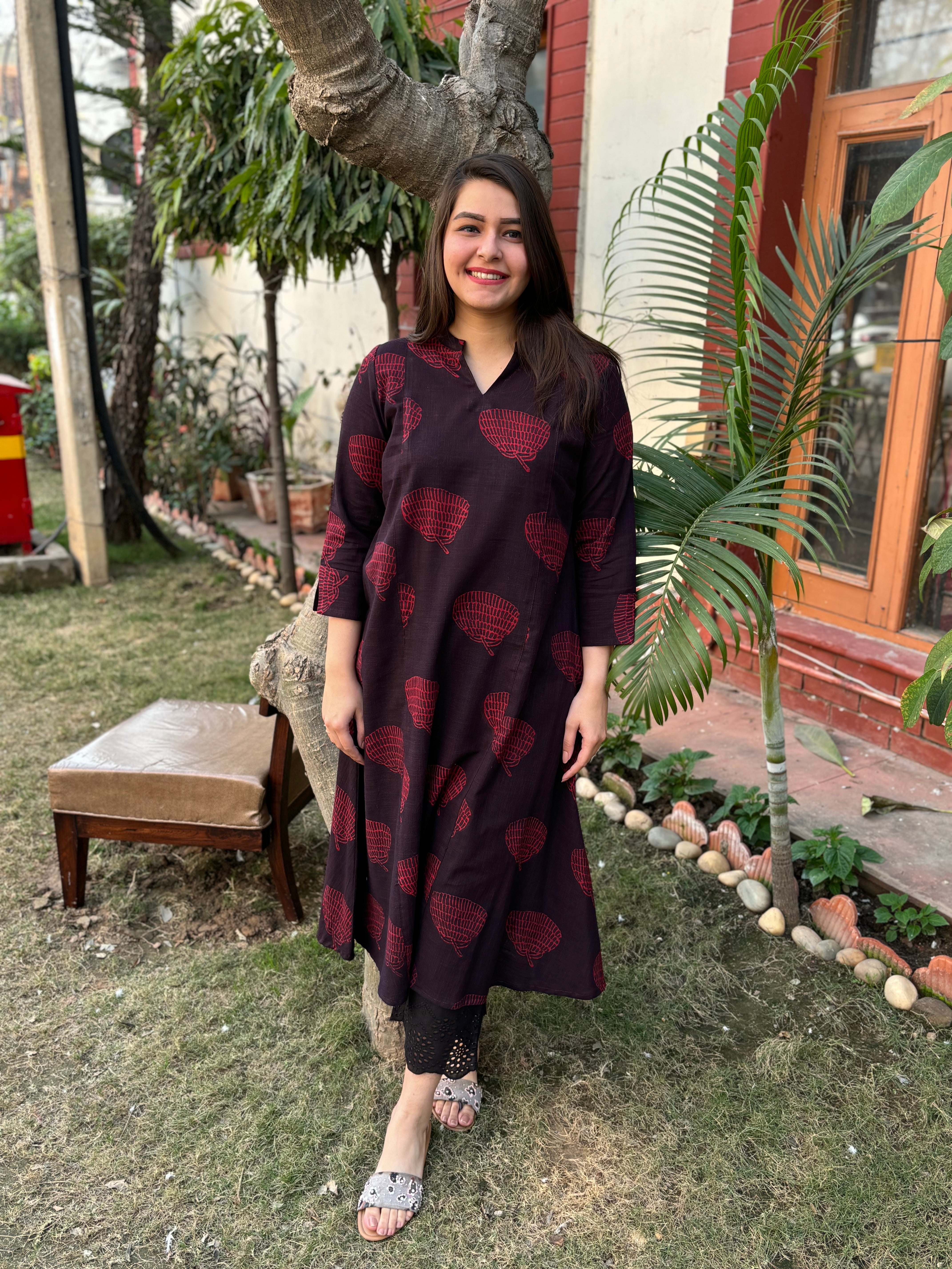 Handcrafted Ajrakh printed A-line kurta with Pocket. Made in cotton slub.