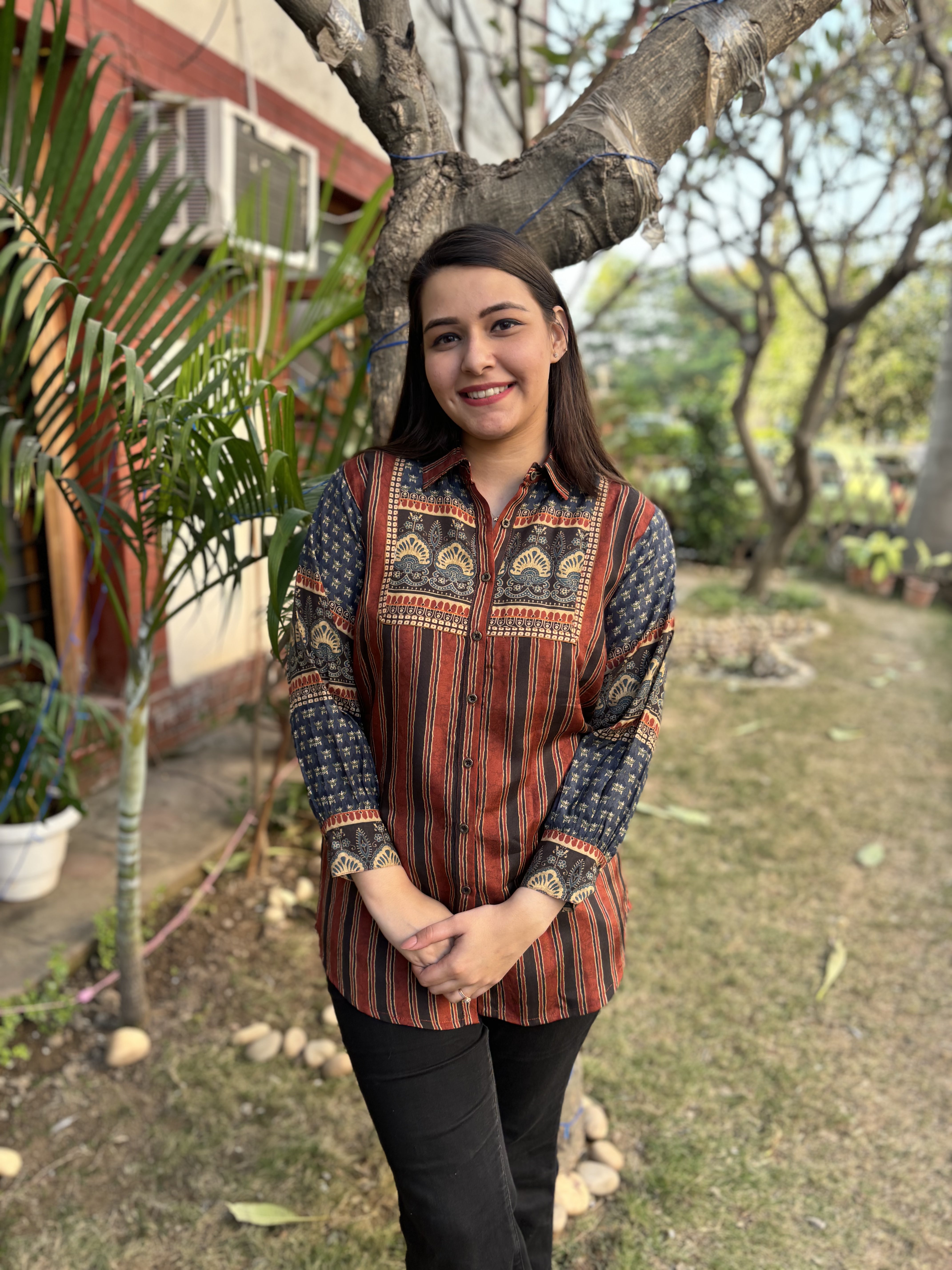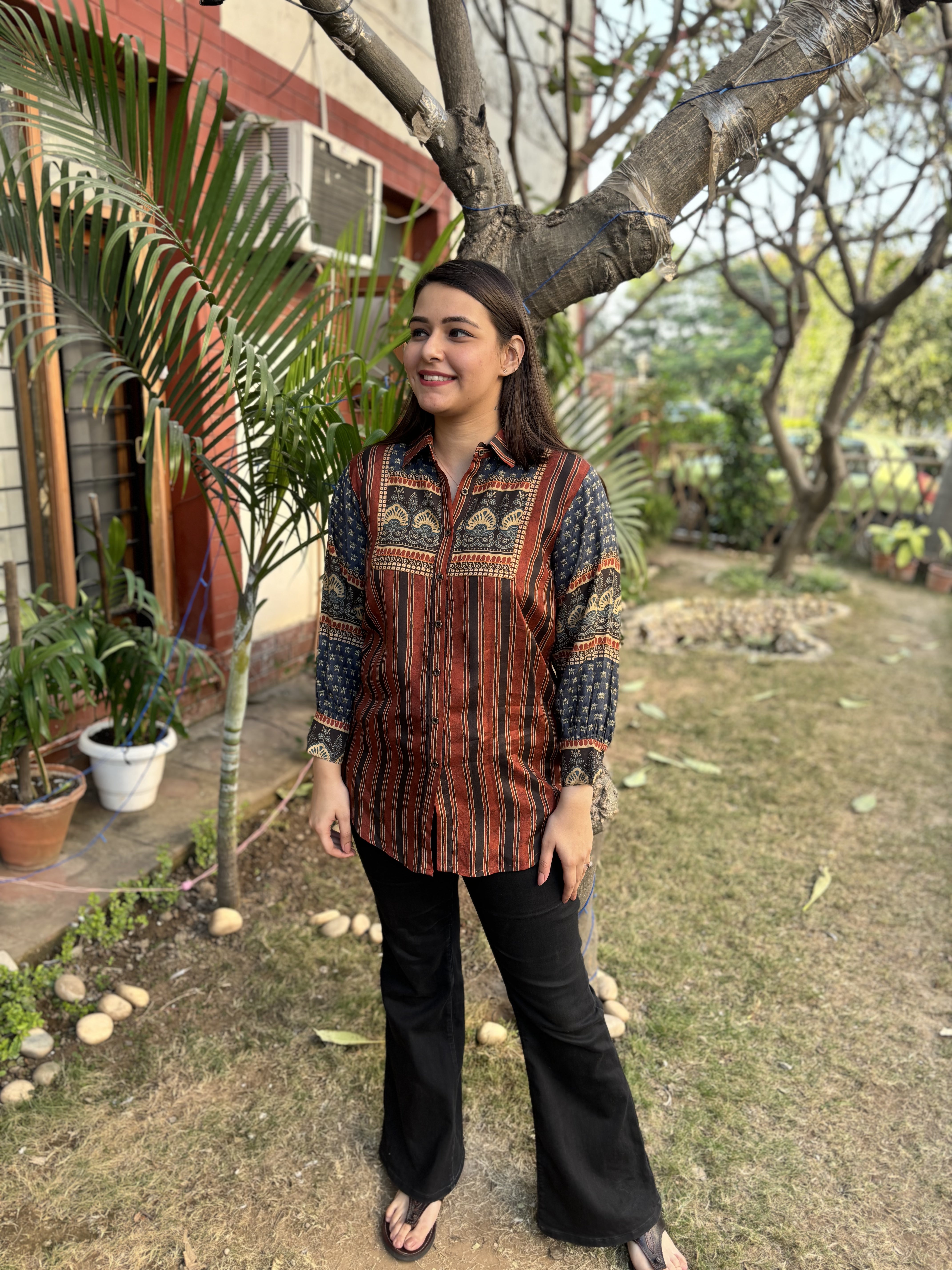 Crafted from Muslin silk, this women’s shirt brings comfort and effortless style together. Designed with a relaxed fit, it features a button-down front and covers hip area.