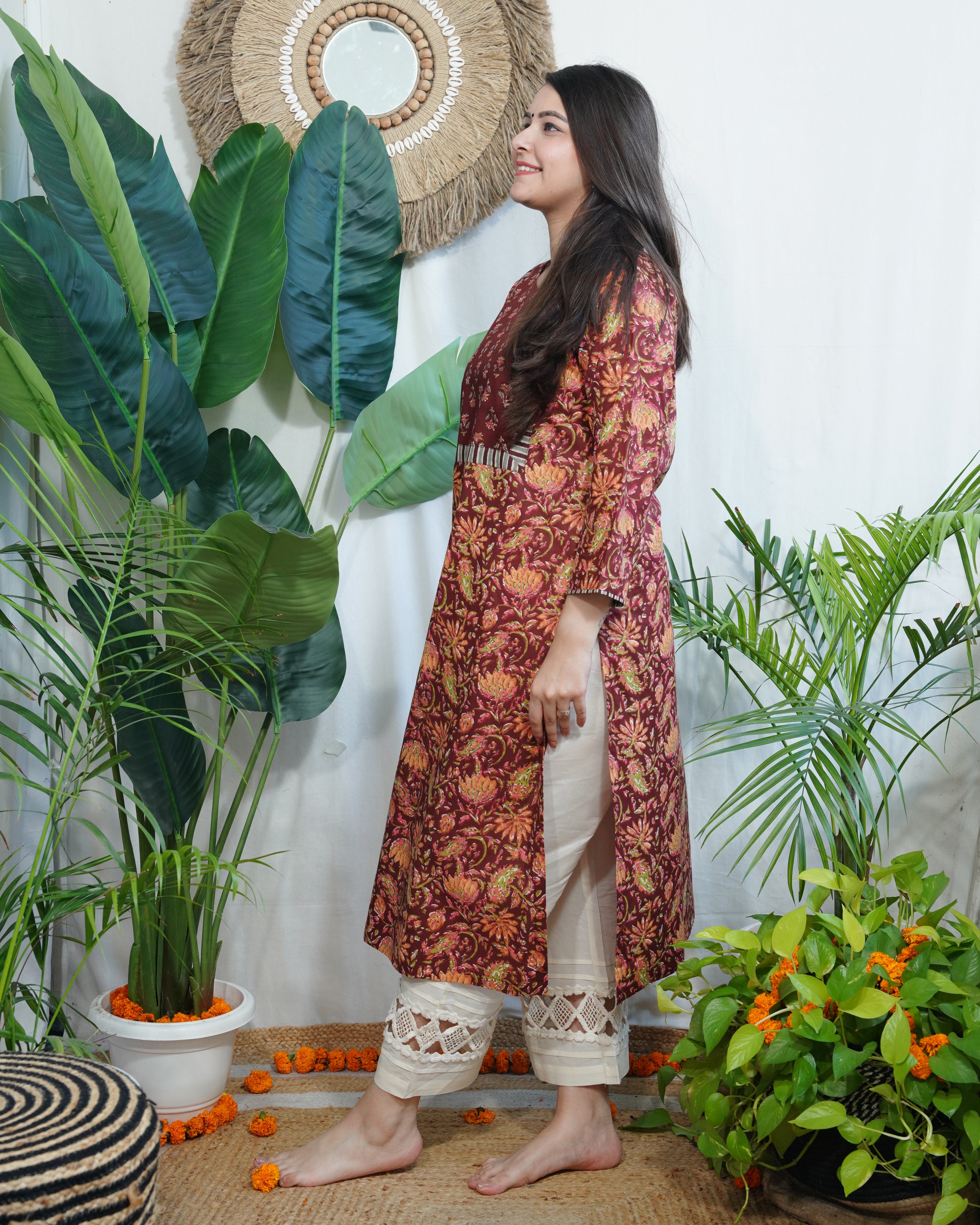 Gerua jaal yoke kurta
