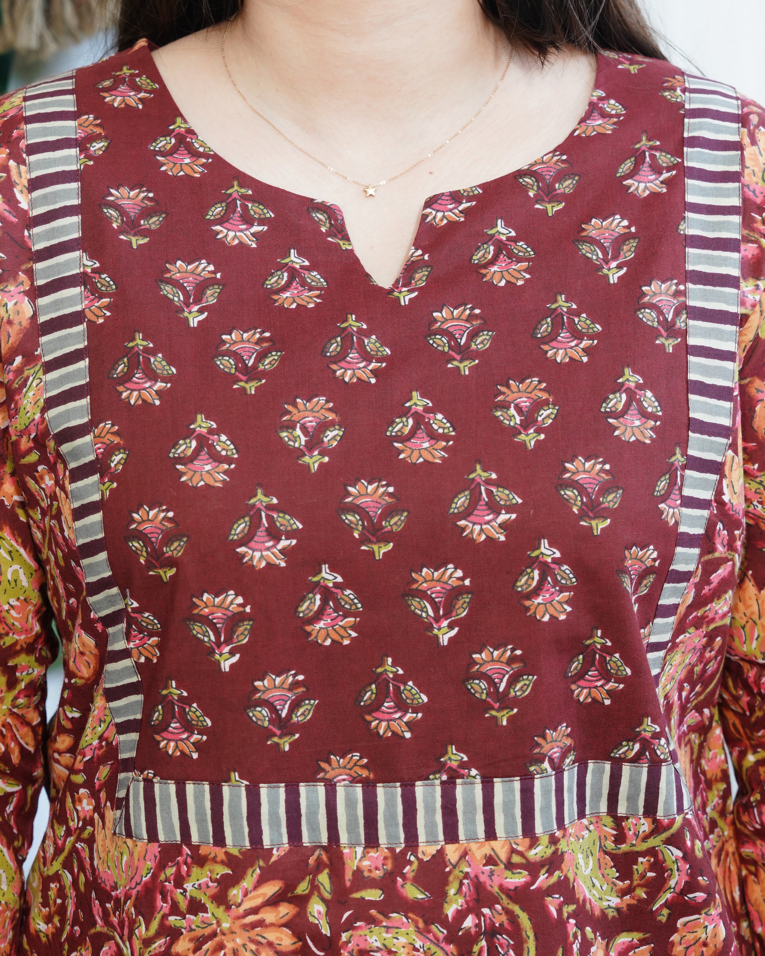 Sanganeri Printed cotton Kurta with yoke.