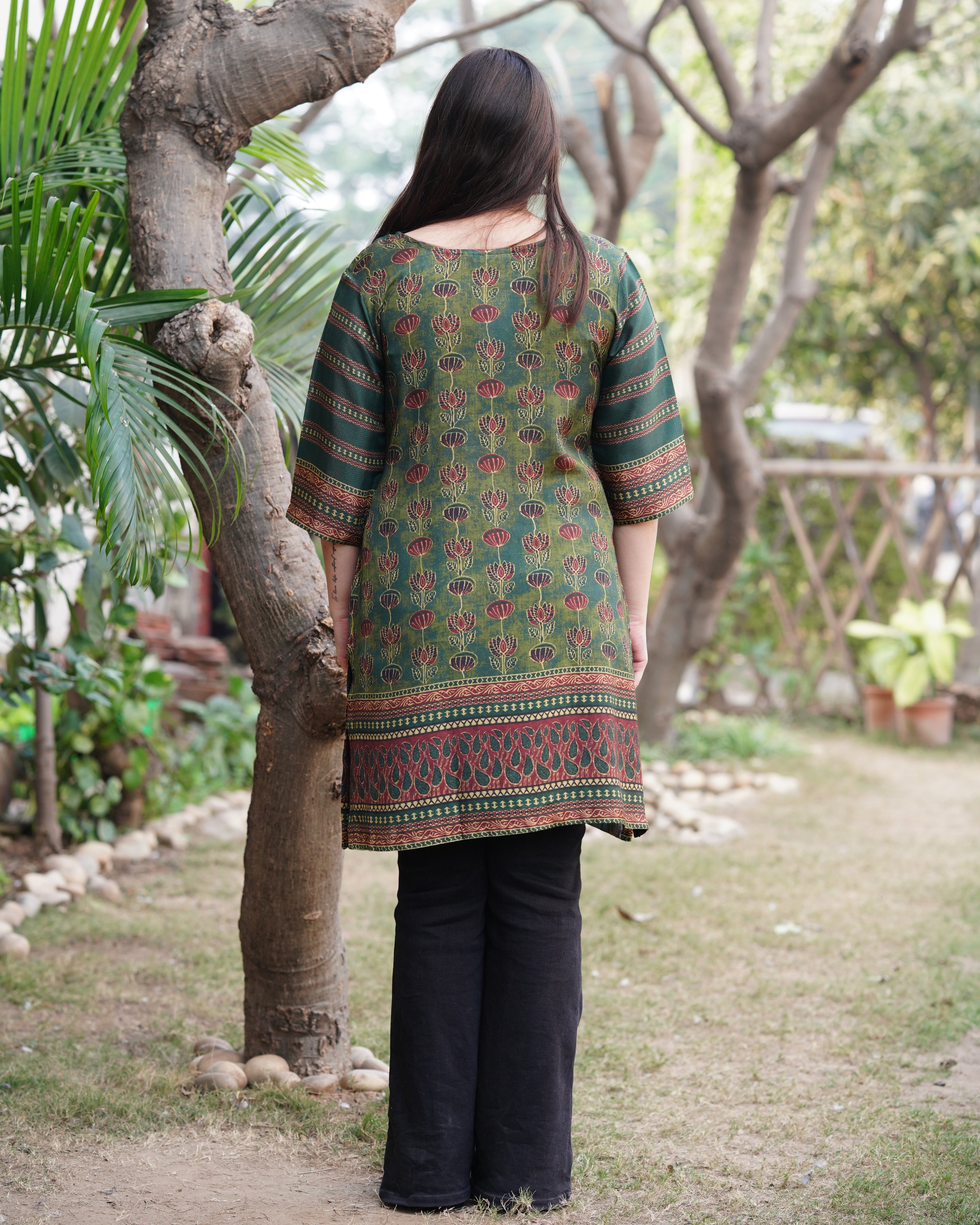 Muslin silk digitally printed short kurti. Top length 35 inches