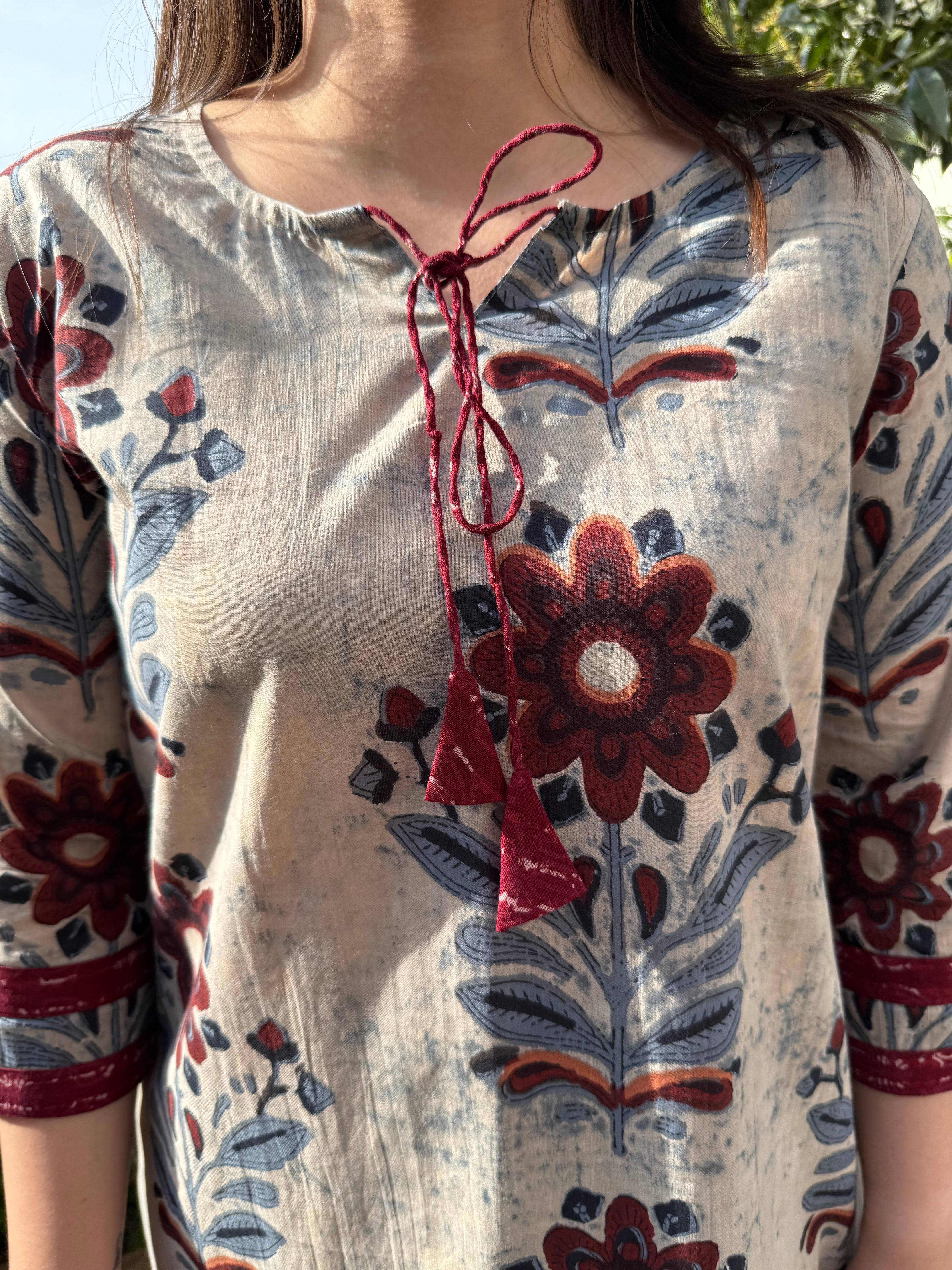 Maroon buti Ajrakh Yoke kurta
