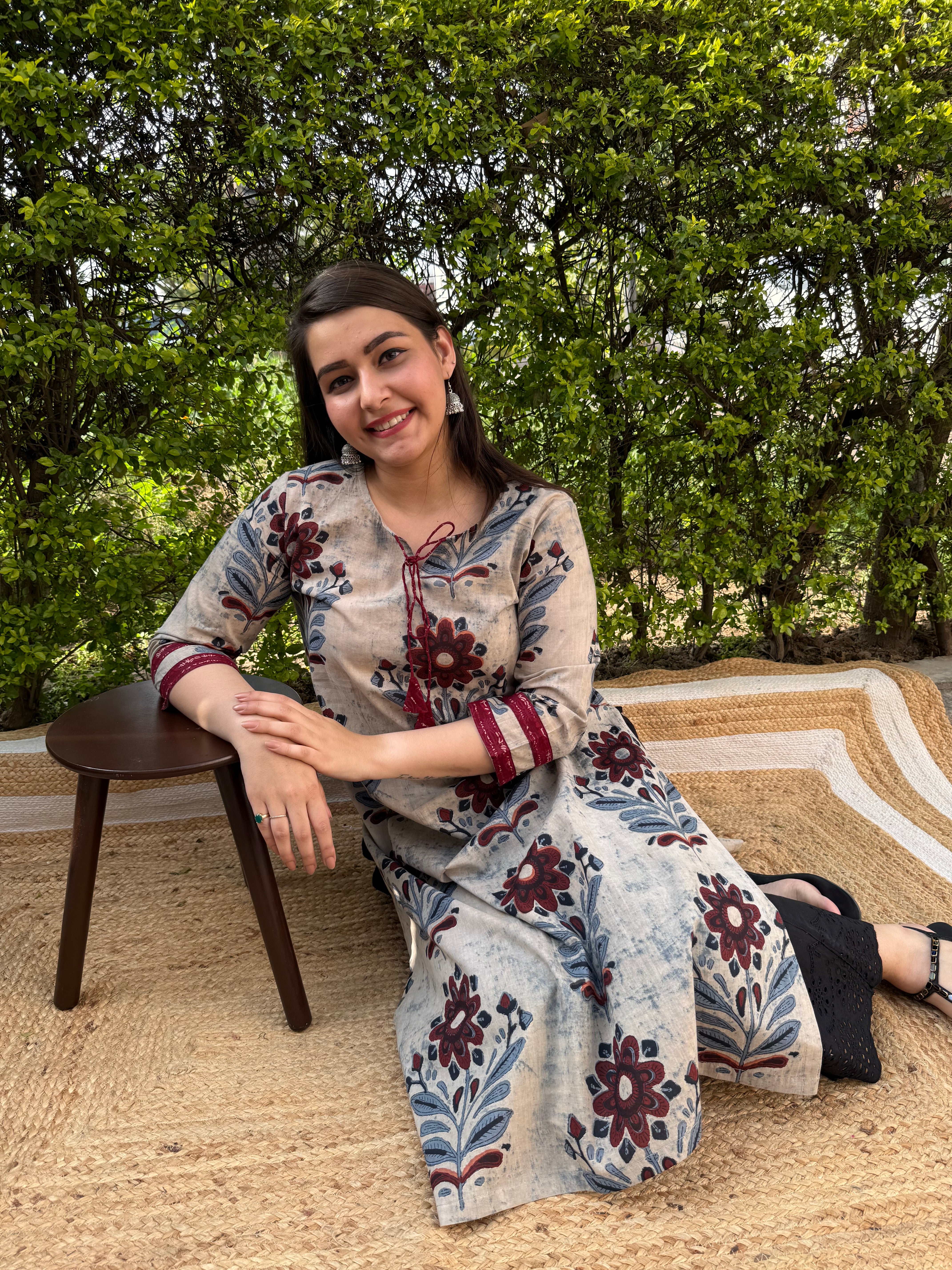 Grey Big rose kurta