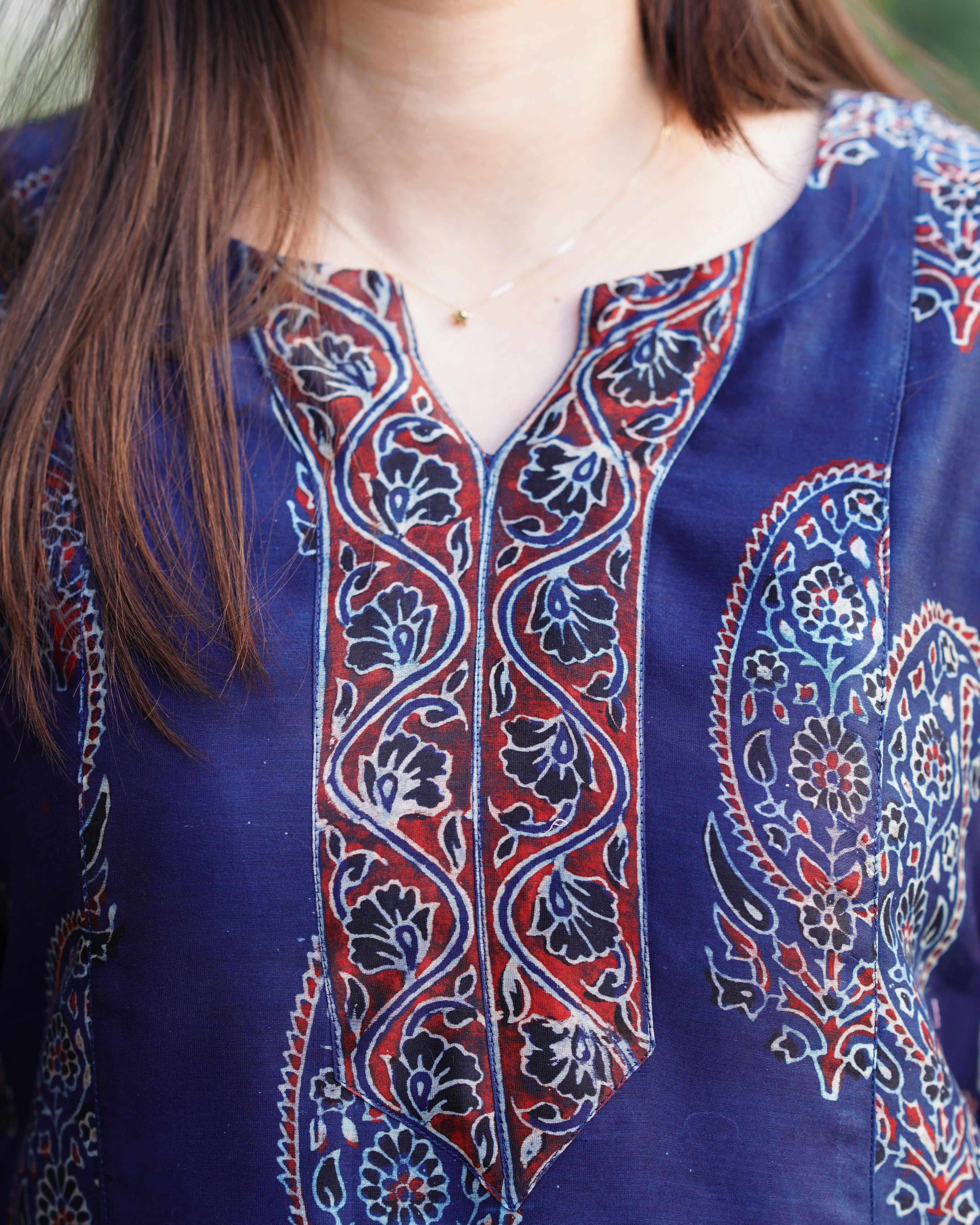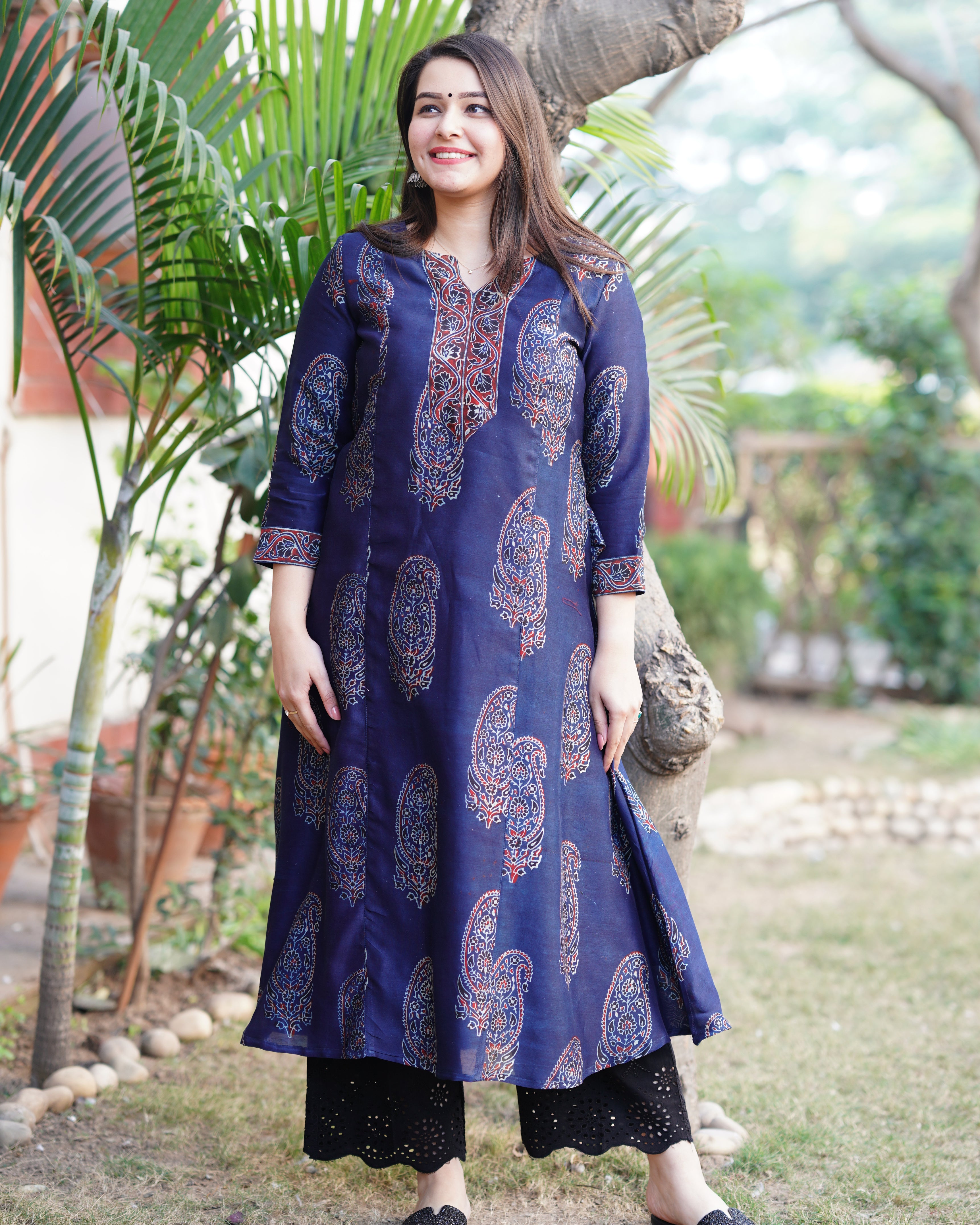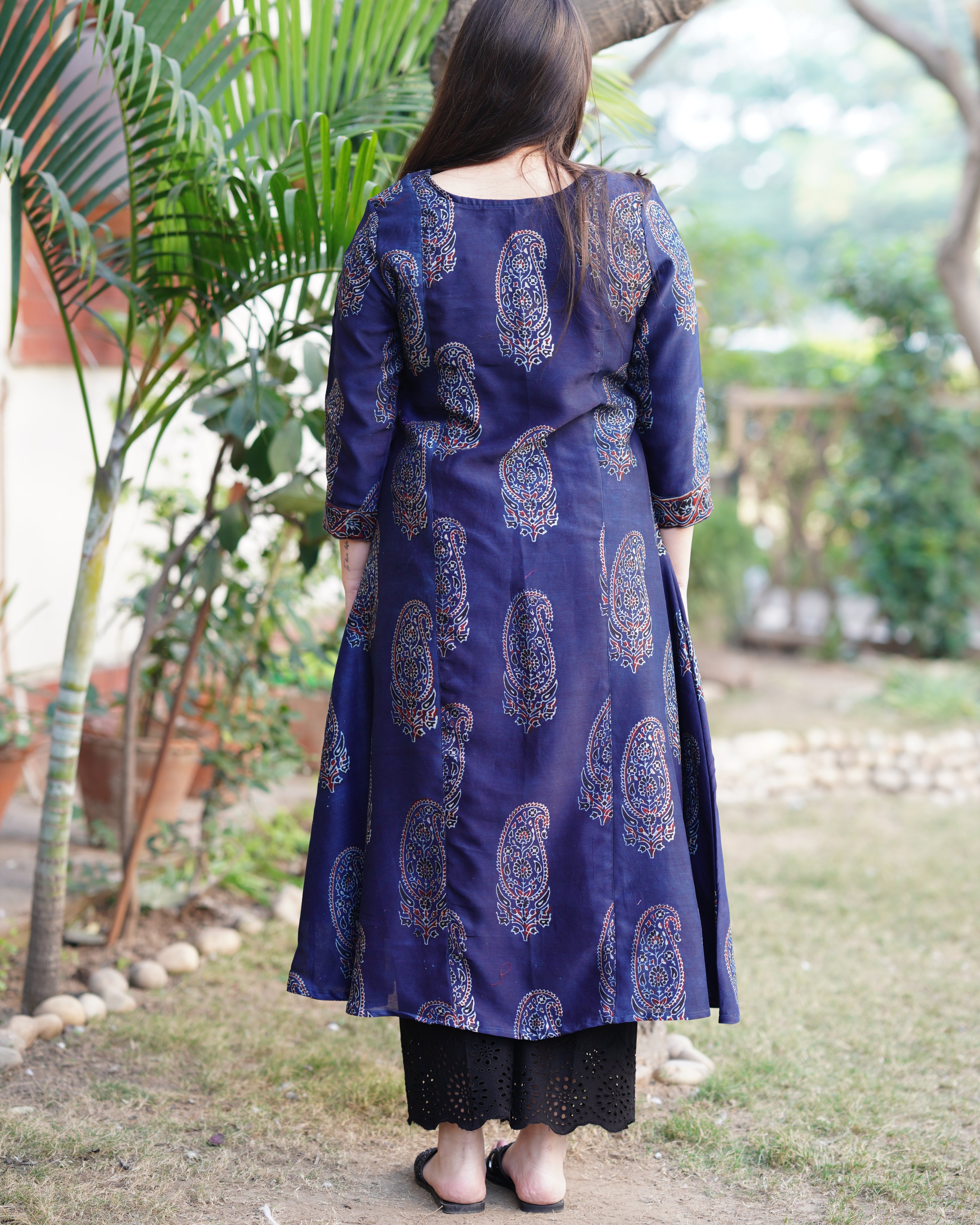 Indigo ajrakh chanderi Aline Kurta