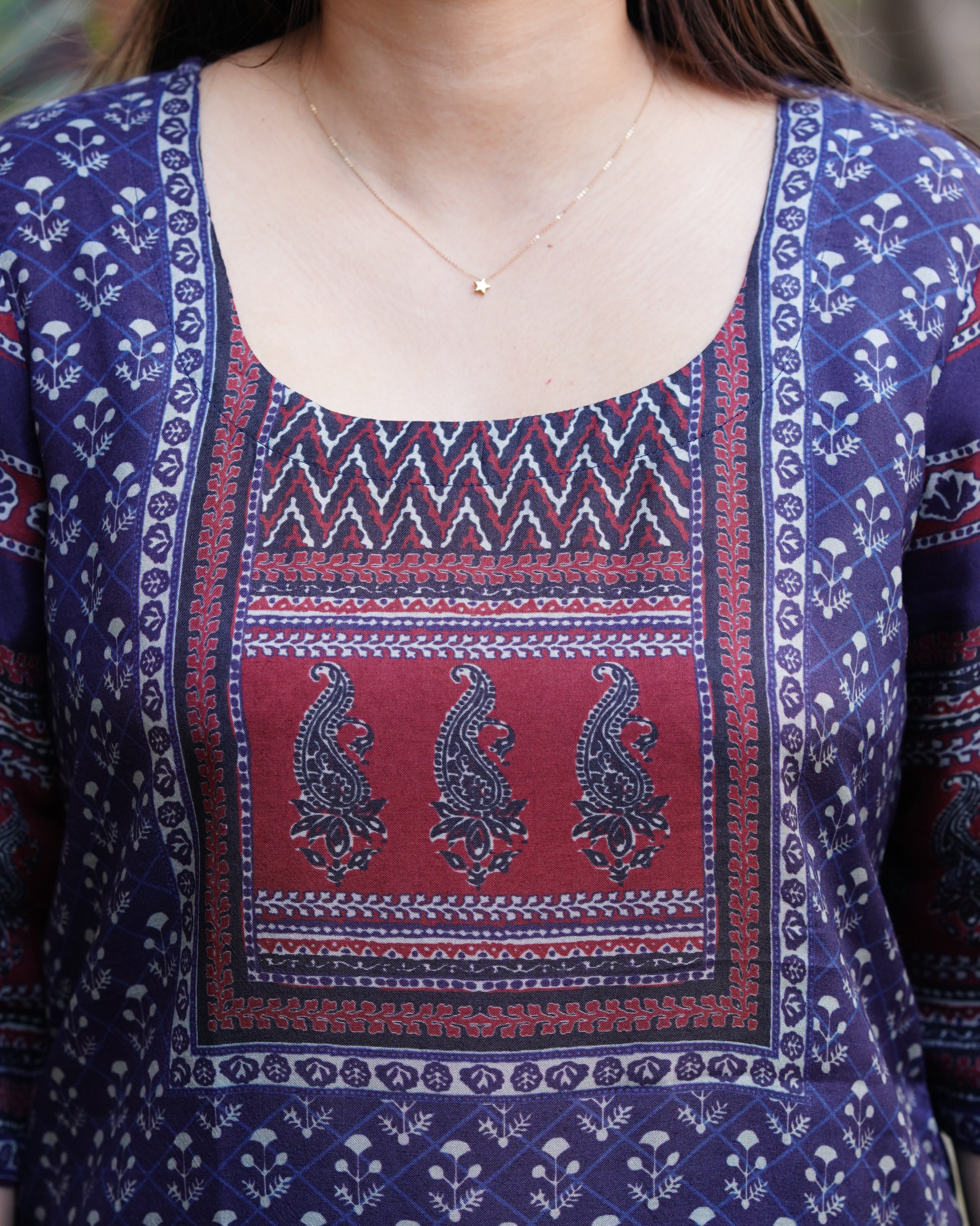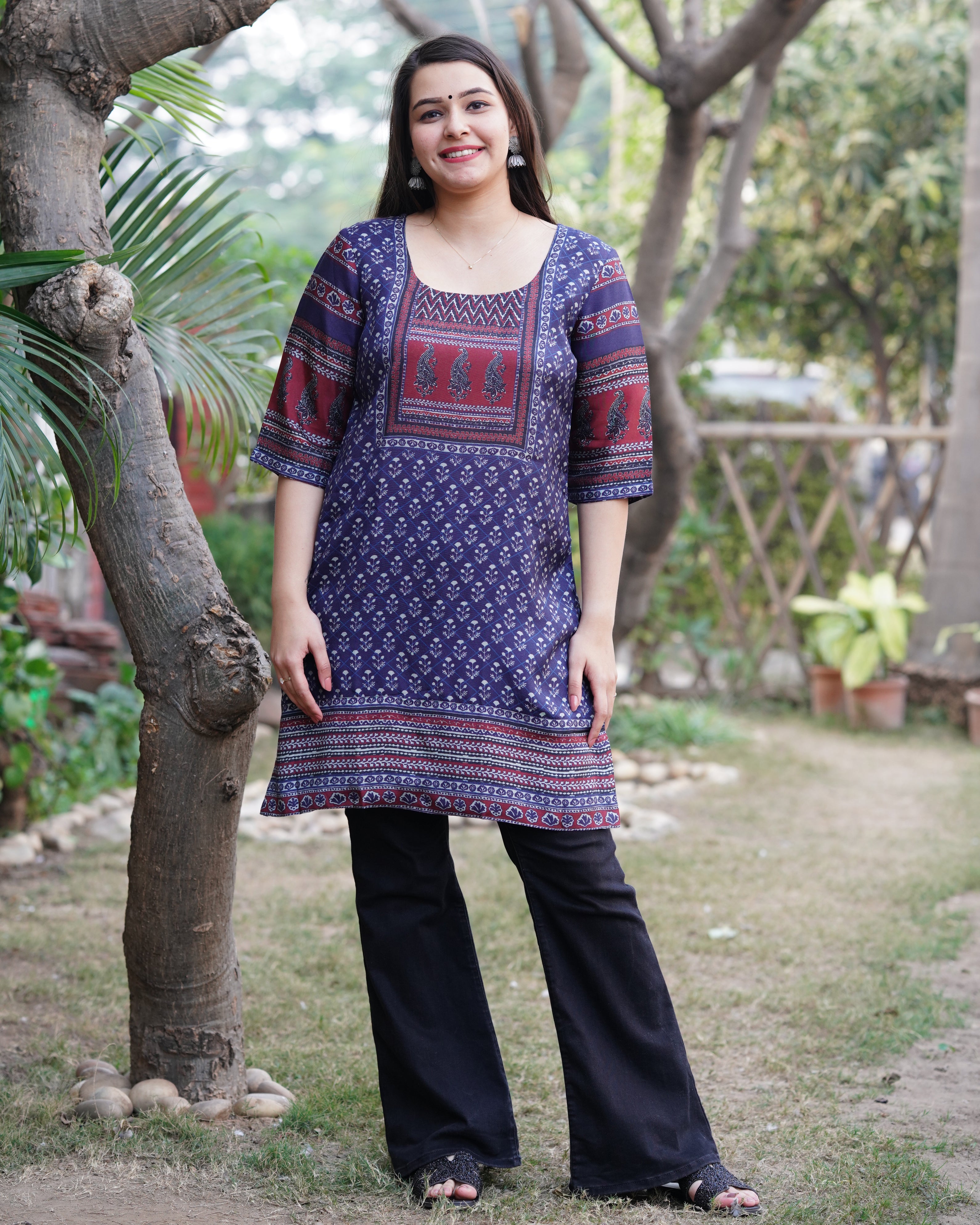 Indigo digital printed muslin silk short kurti