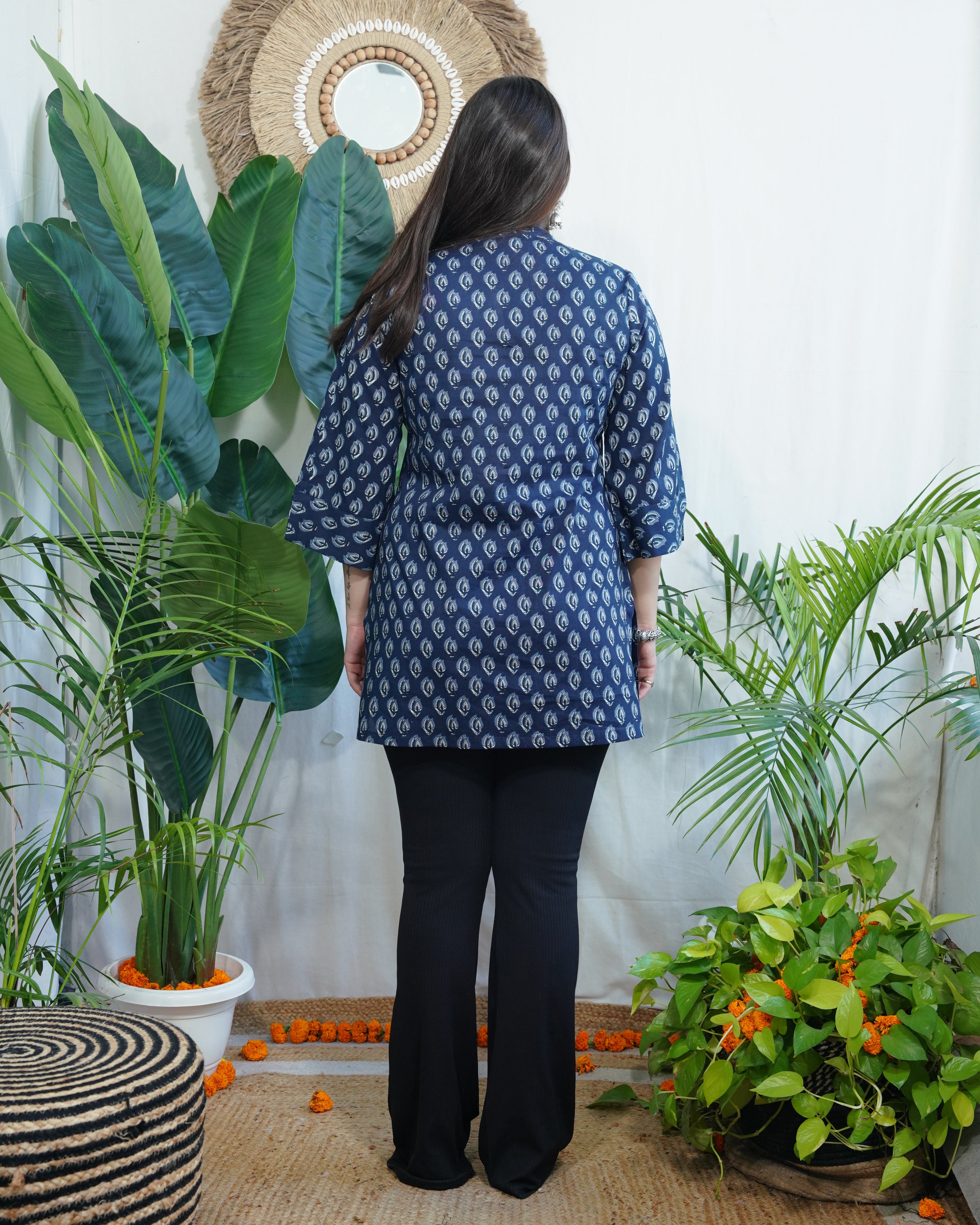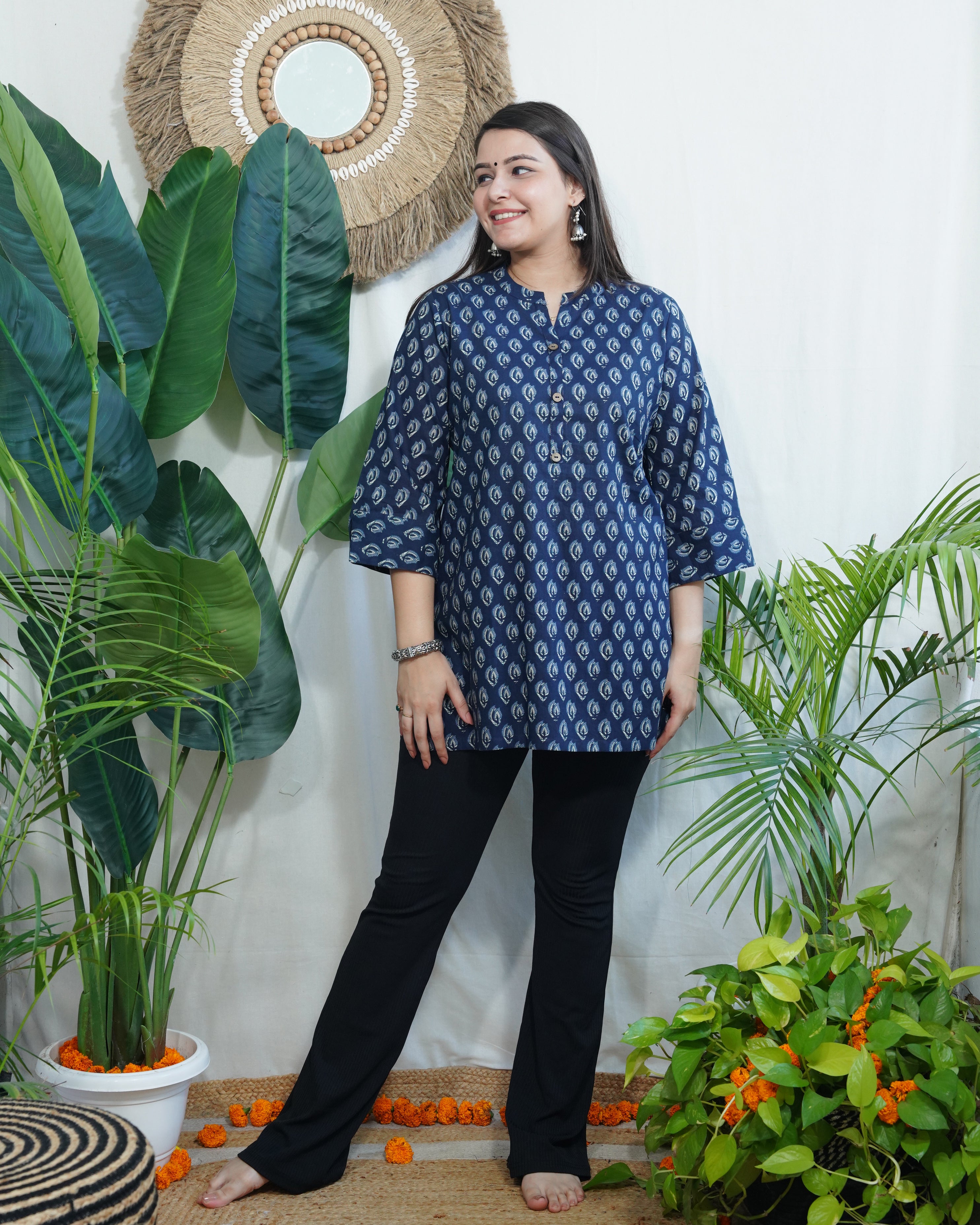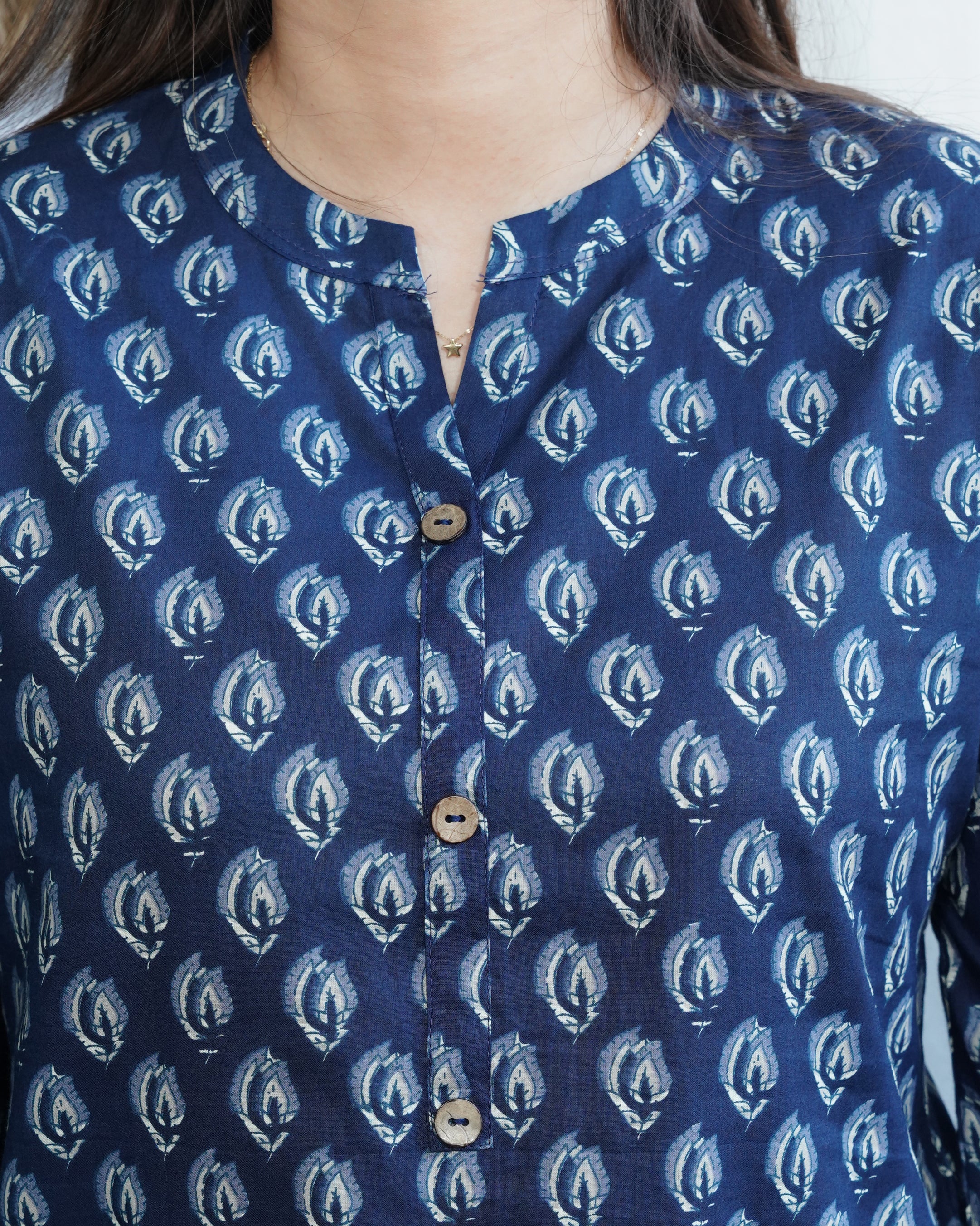 Indigo leaf ban neck kurti