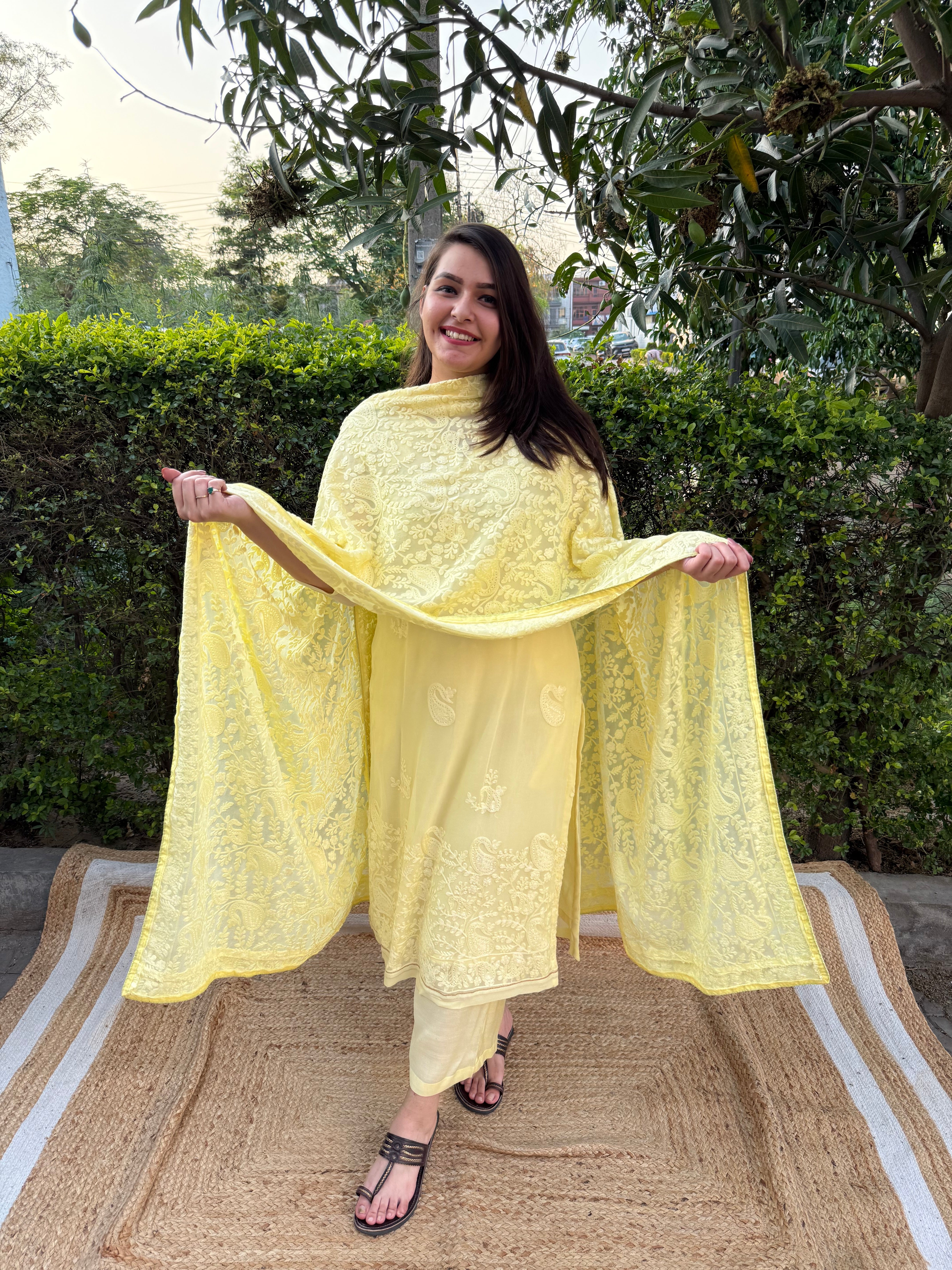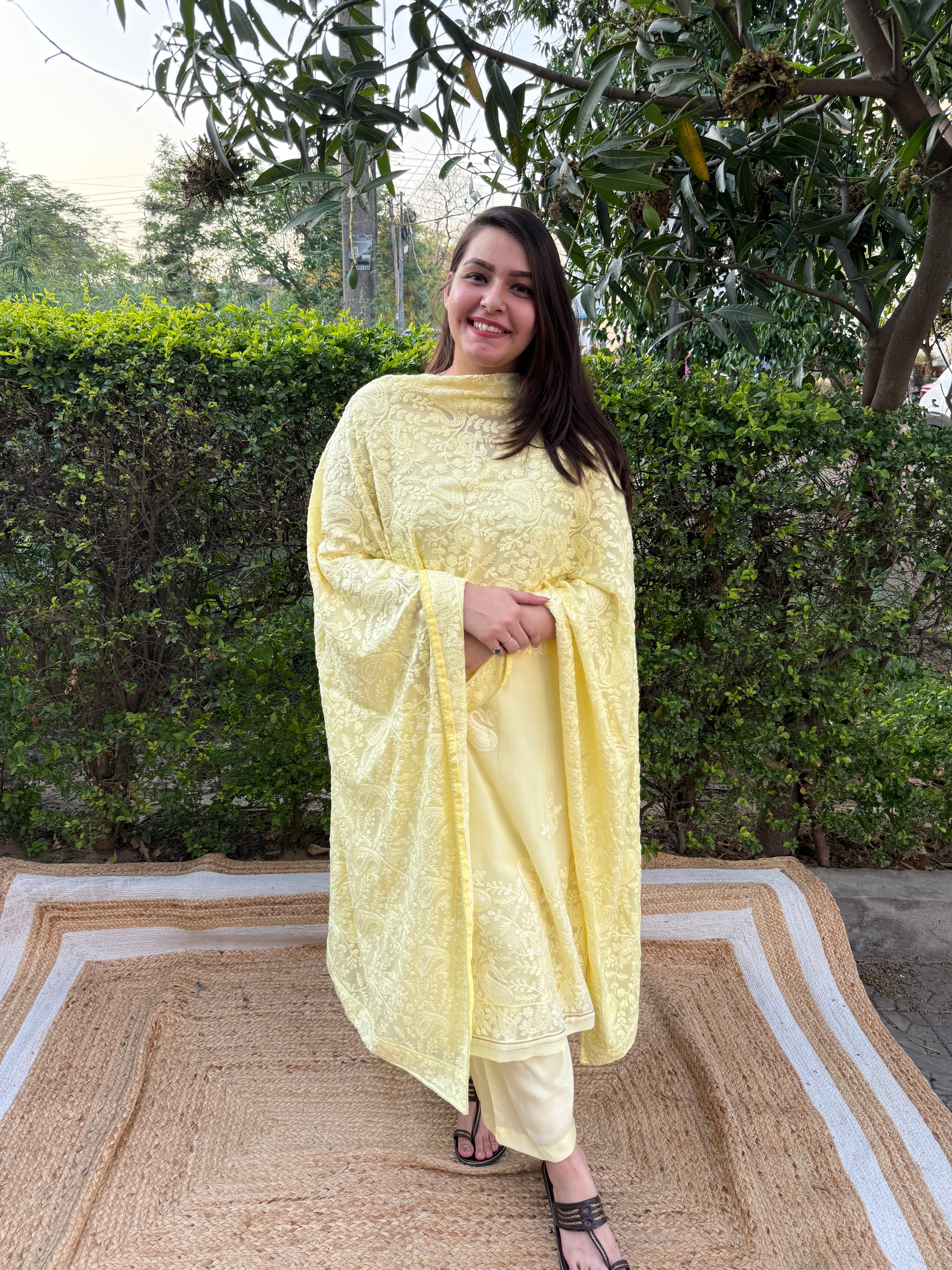 Light fabric that falls easily on the body and looks flattering. I loved the Kullu borders on the neckline and sleeves. Only suggestion I have for the team is not to call the colour 'rust'. Compared to the image shown, the colour is not bright and definitely not rust. Its more like a mustard and brown mix. Goes very well with the borders so no complaints :)