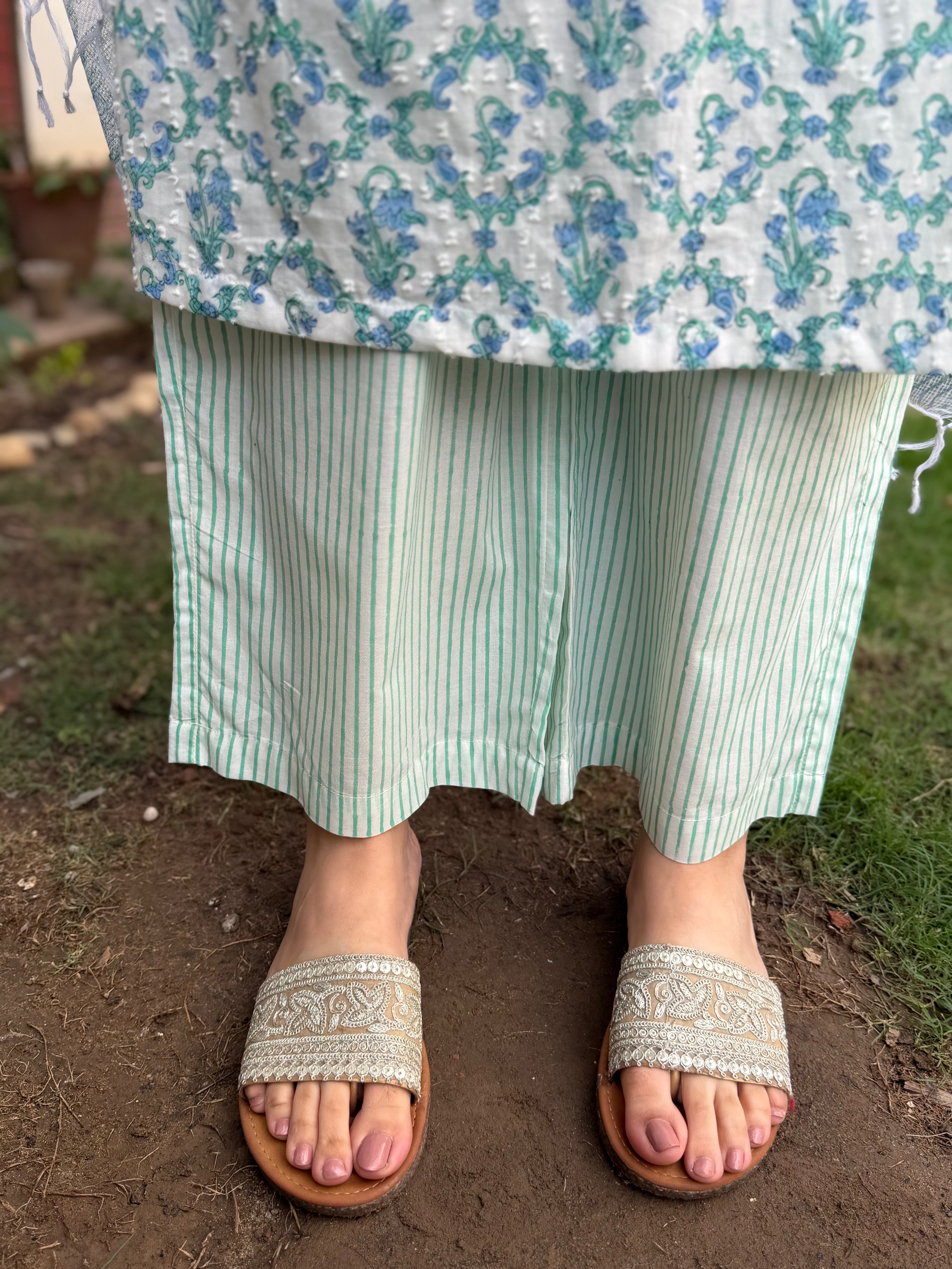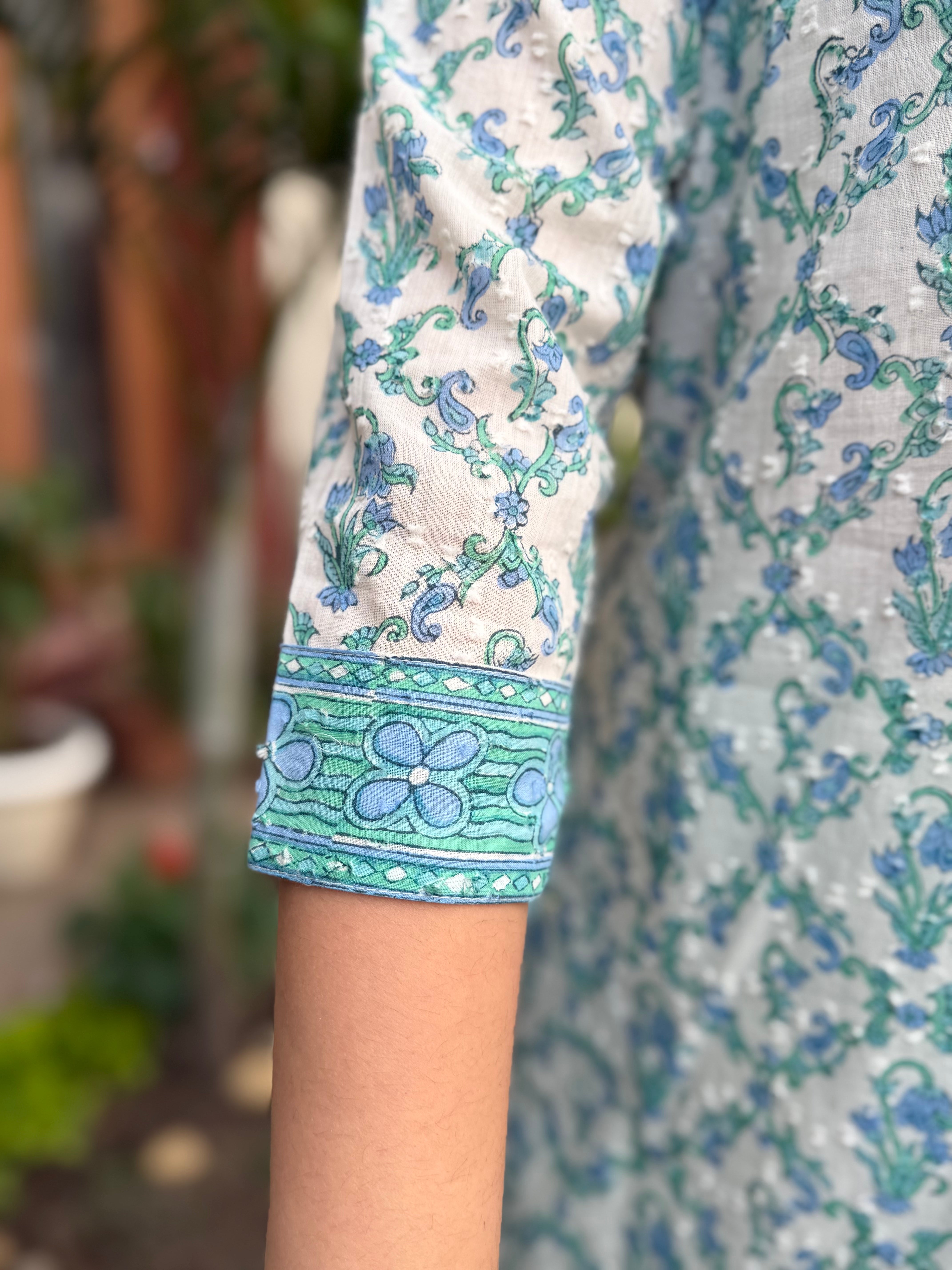 Light blue floral handblock Suit Set