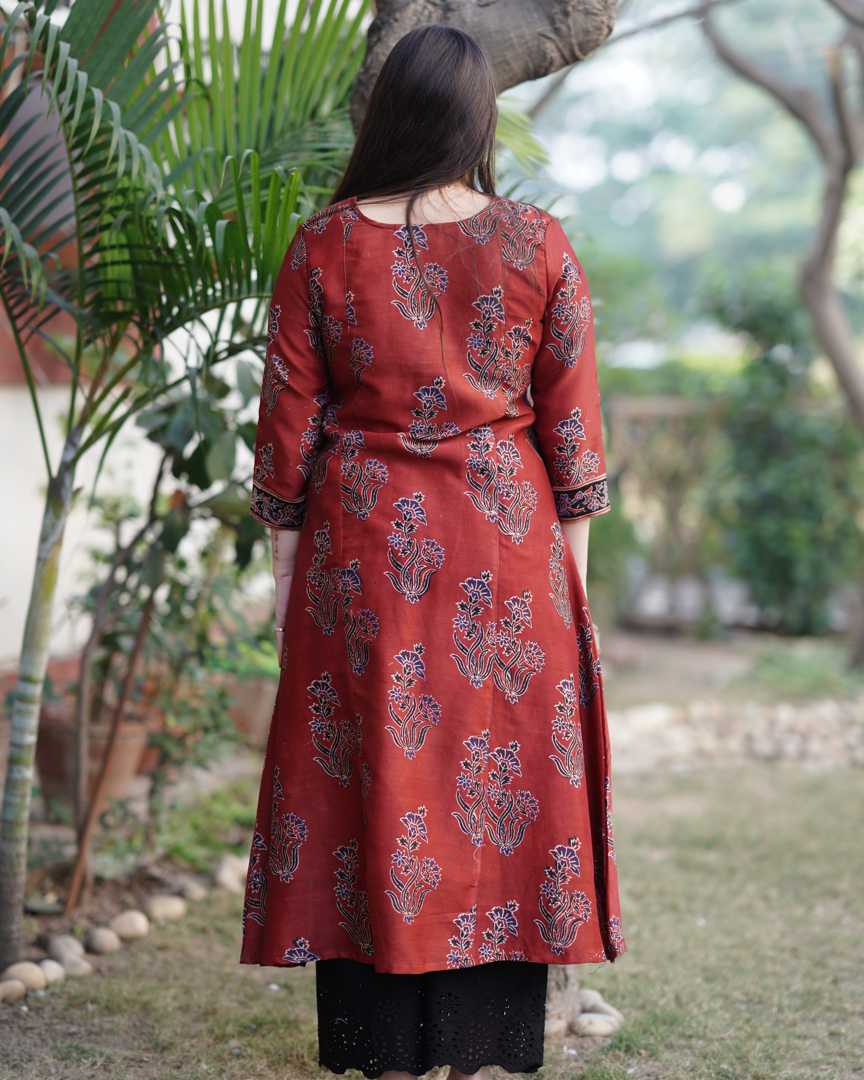 Maroon buta ajrakh chanderi Aline Kurta