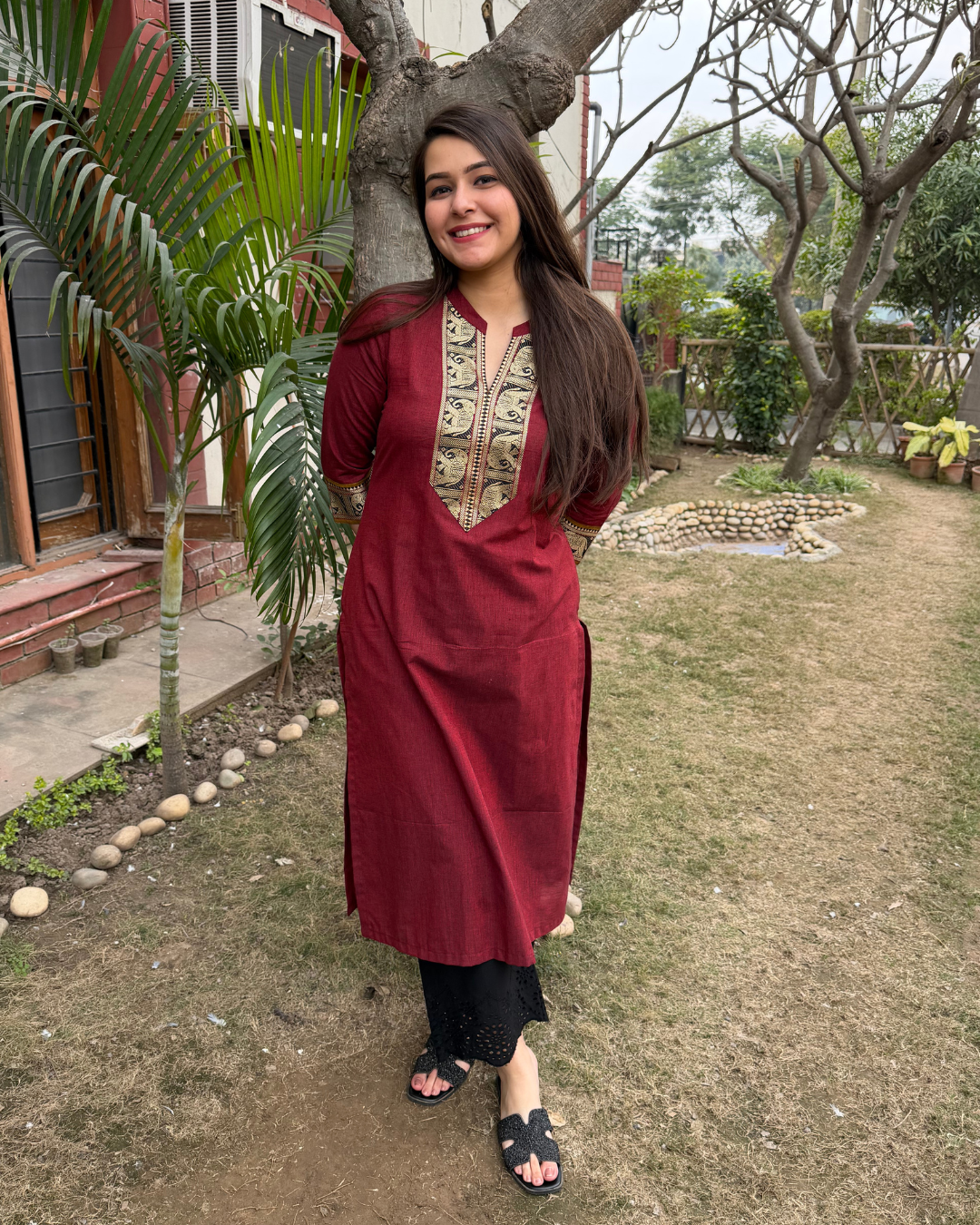 South cotton kurta with border detailing on neck