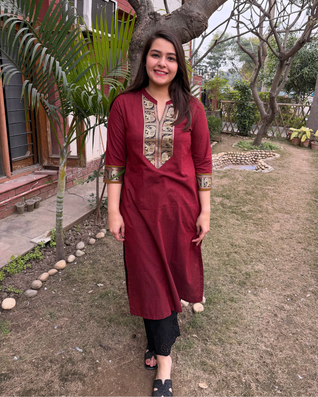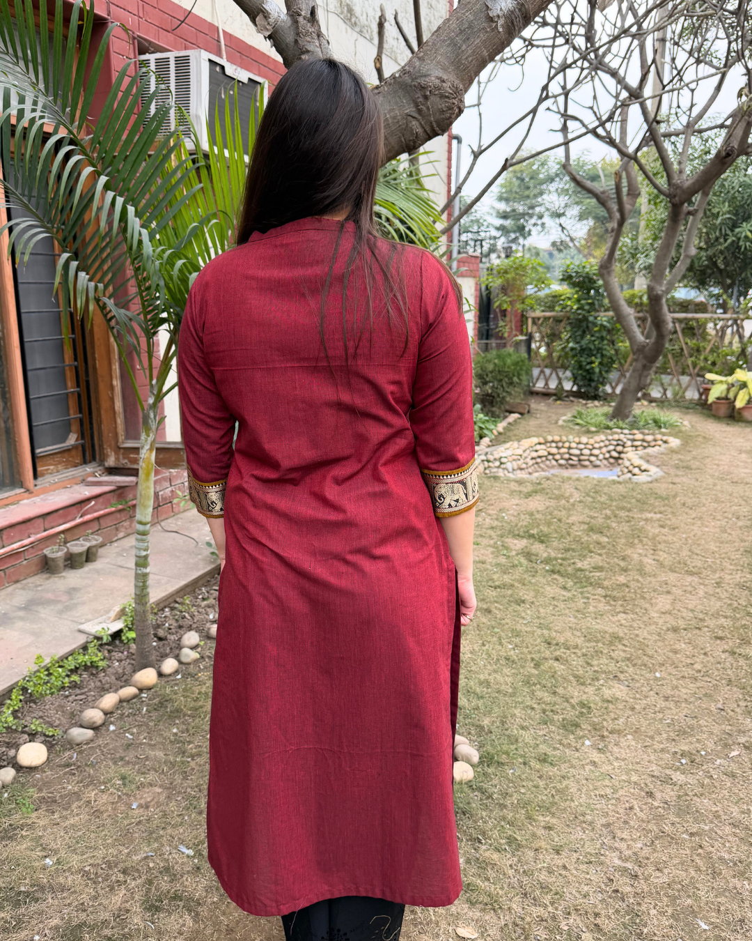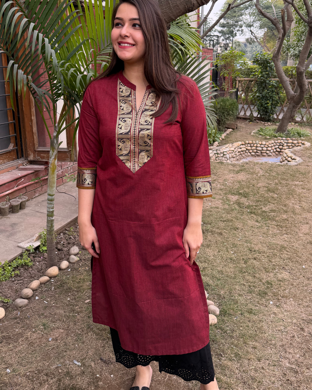Maroon south cotton elephant border kurta