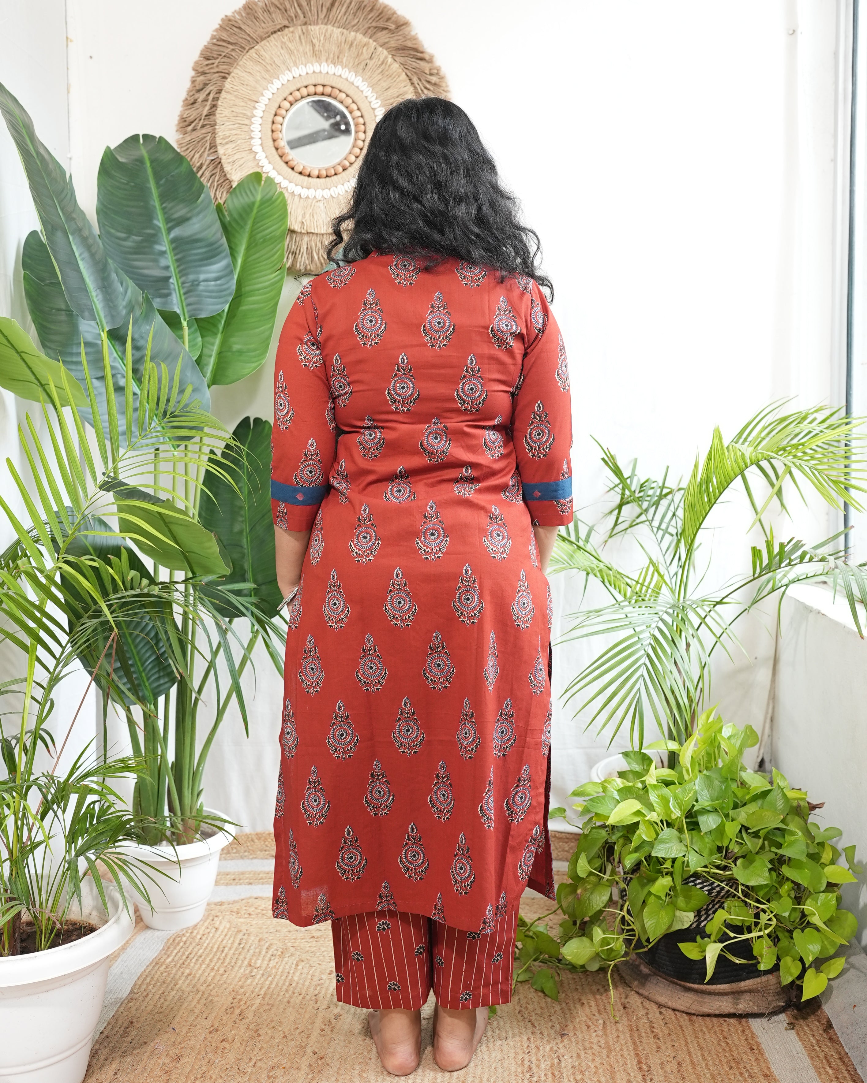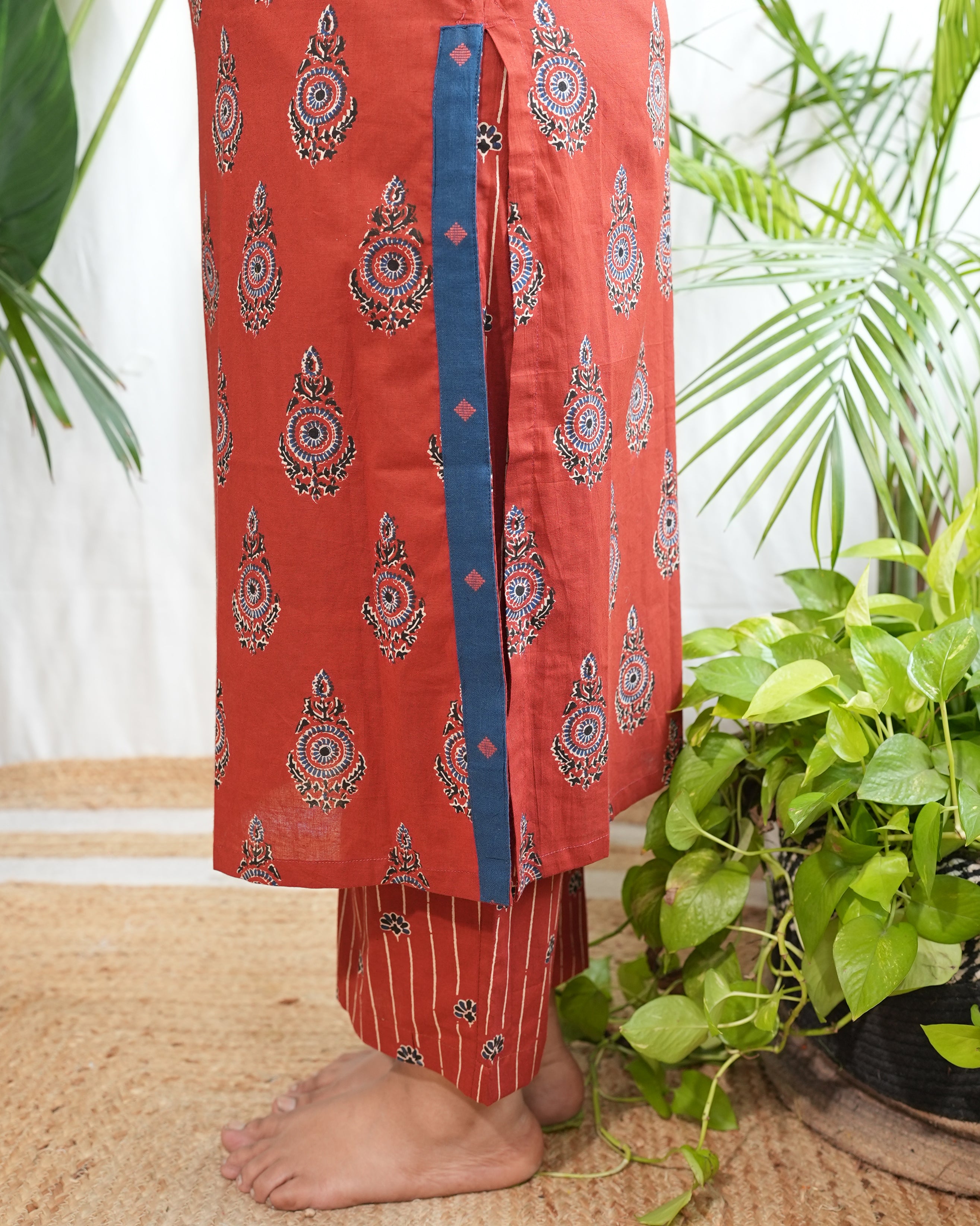 Comfortable straight-fit cotton kurta paired with matching palazzo, designed for effortless everyday style and ease