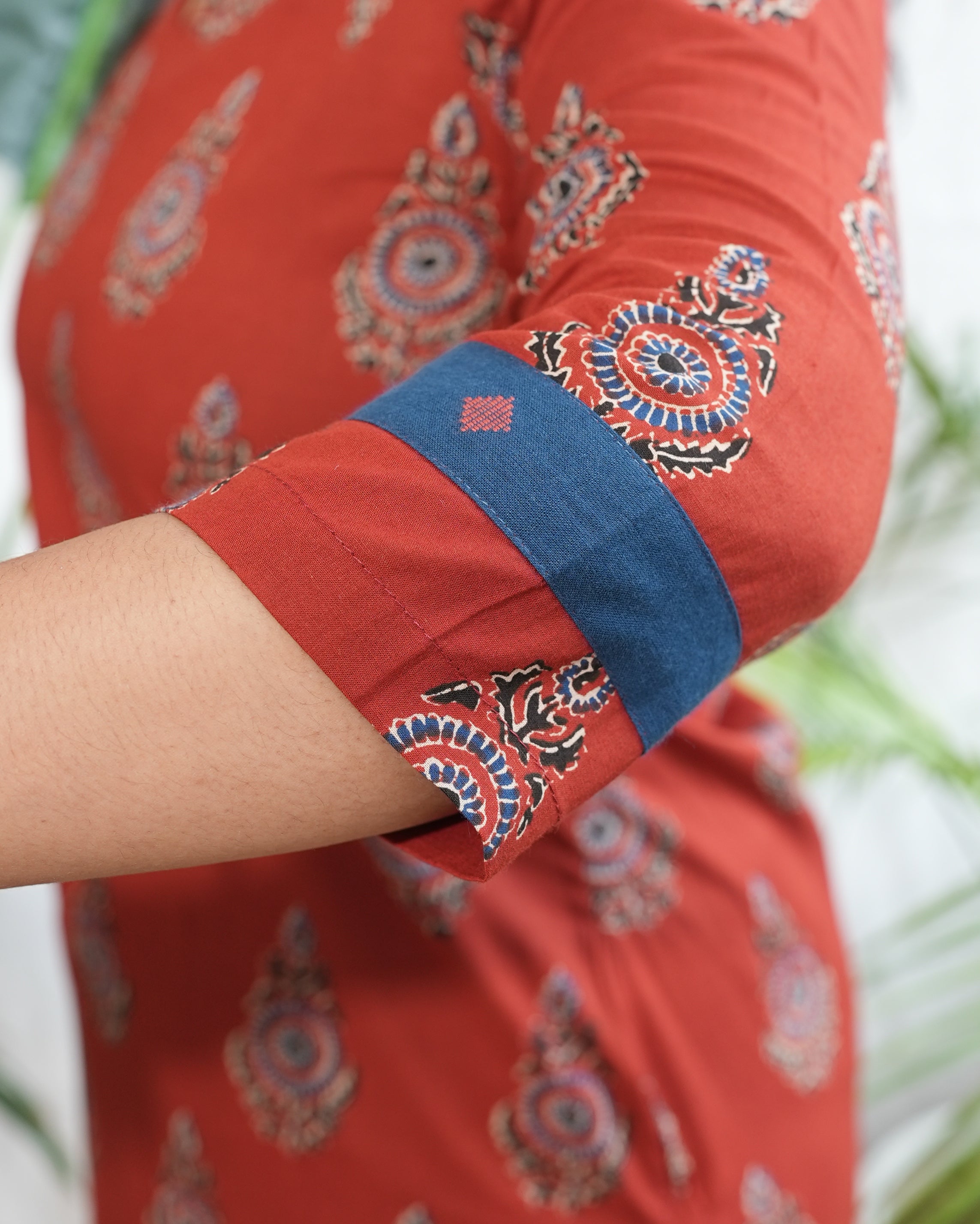 Ajrakh cross yoke neck kurta