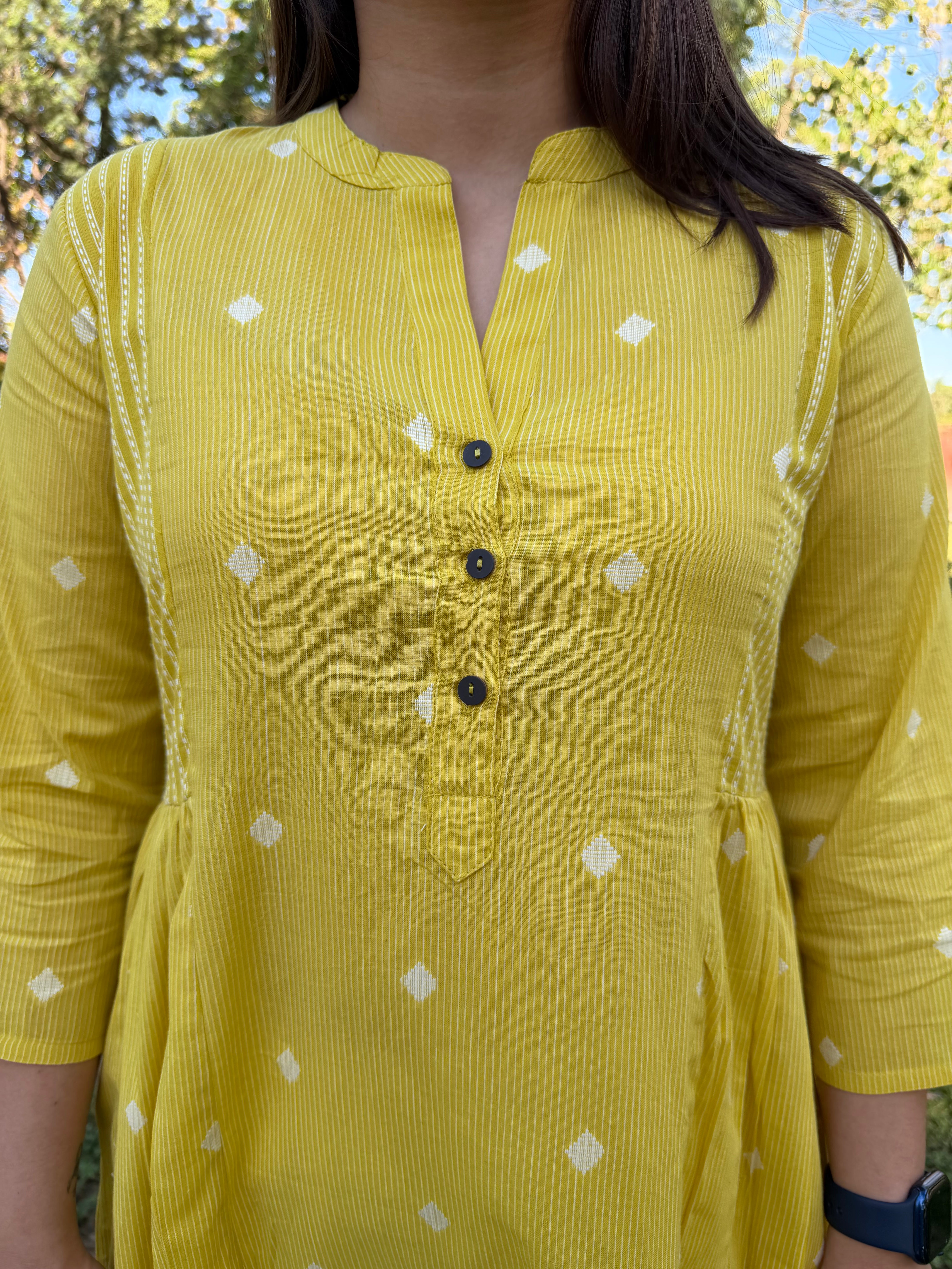 South cotton side gather kurta with button detailing on neck. Has pocket on side.