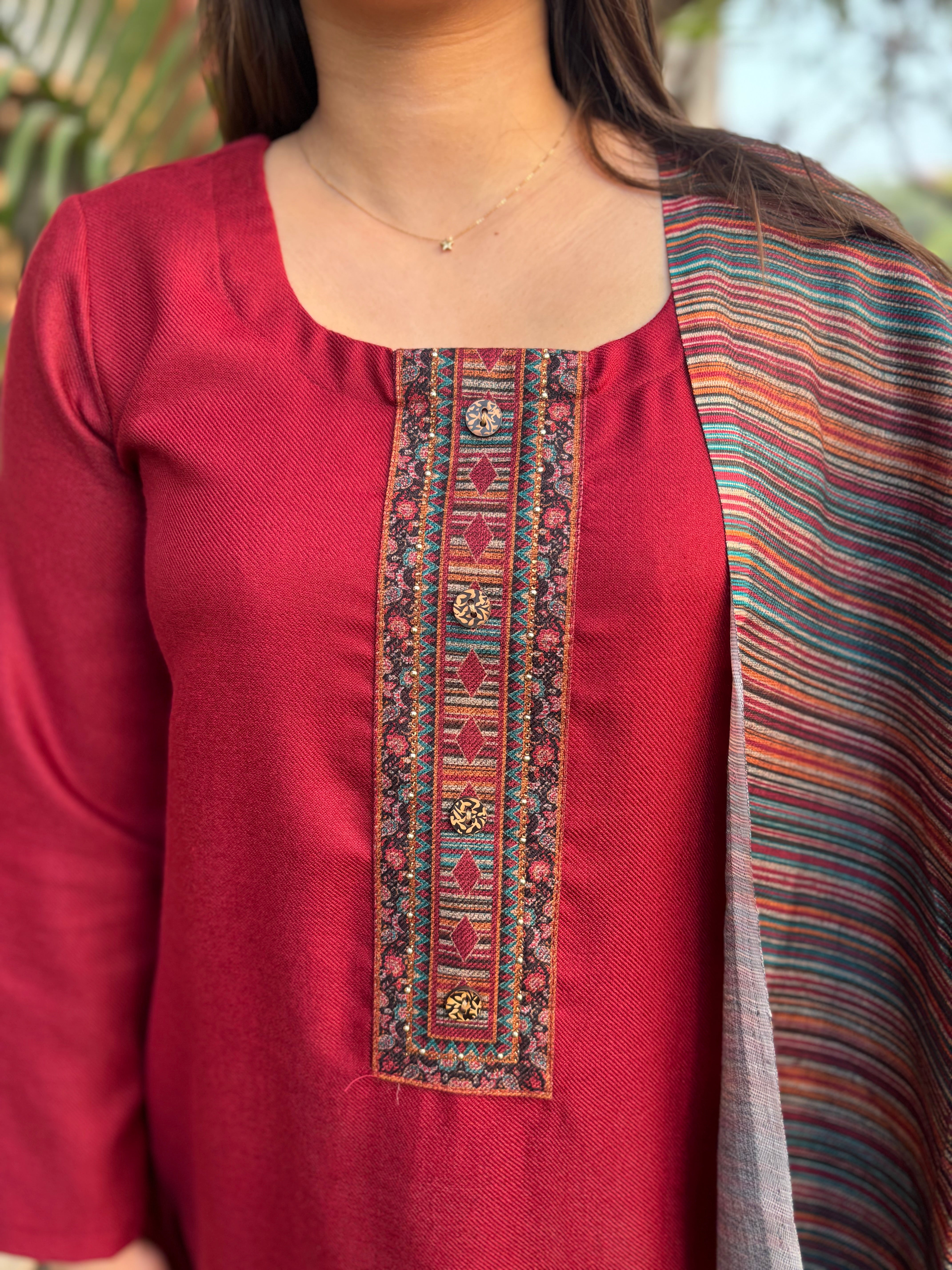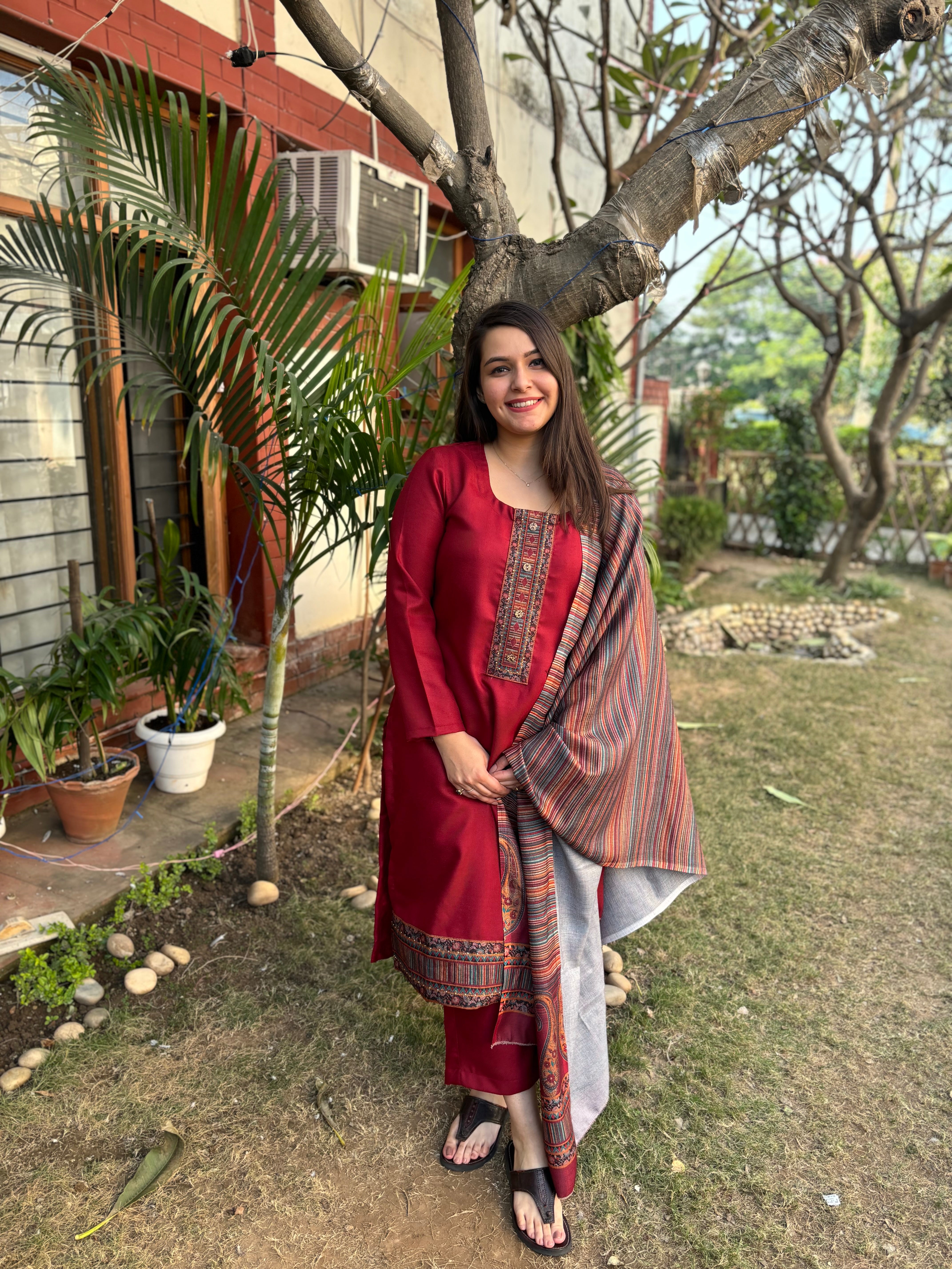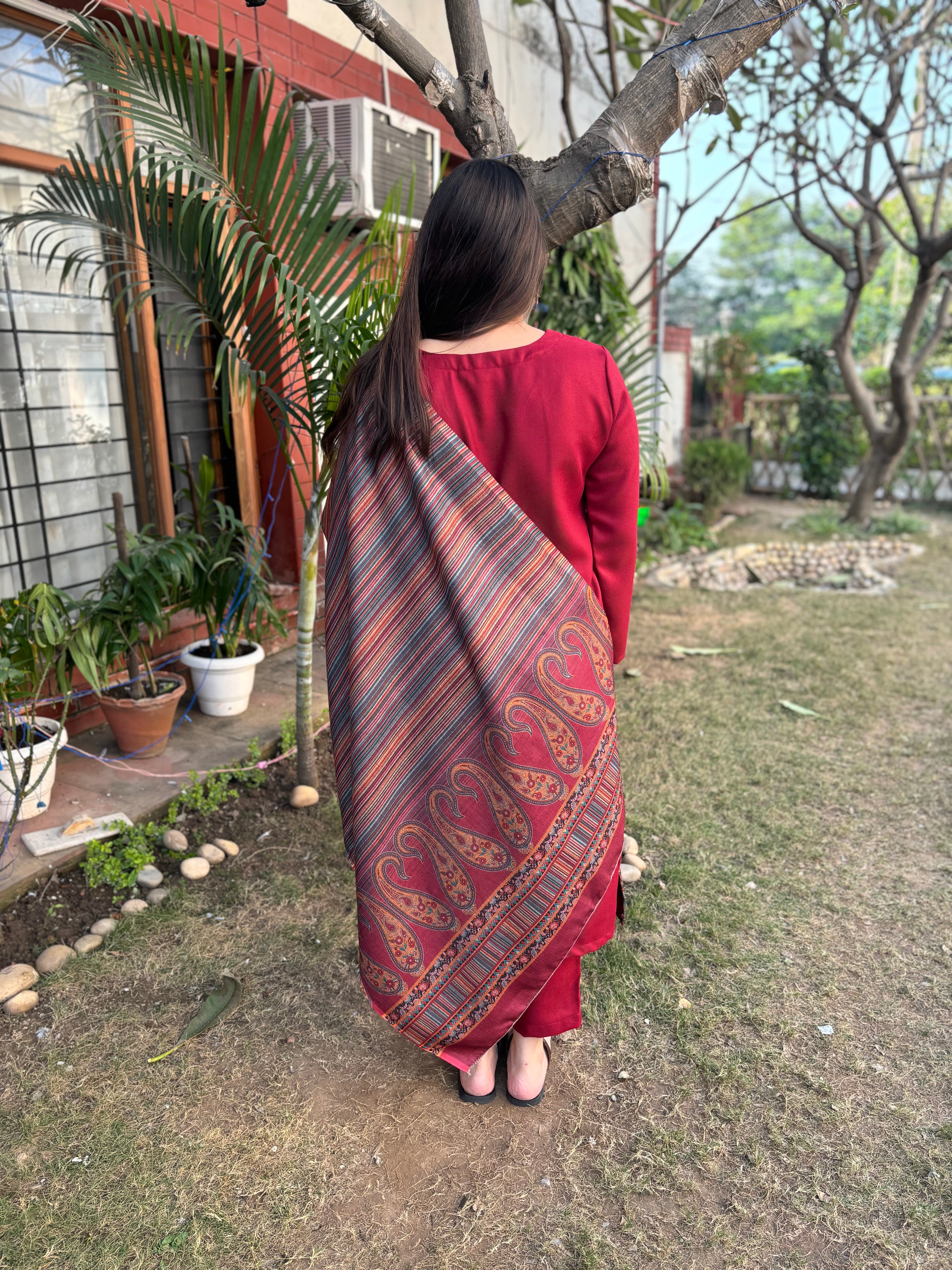 Woollen solid Suit Set – Crafted Warmth, Himachali Heritage. Matched with digital printed stole.