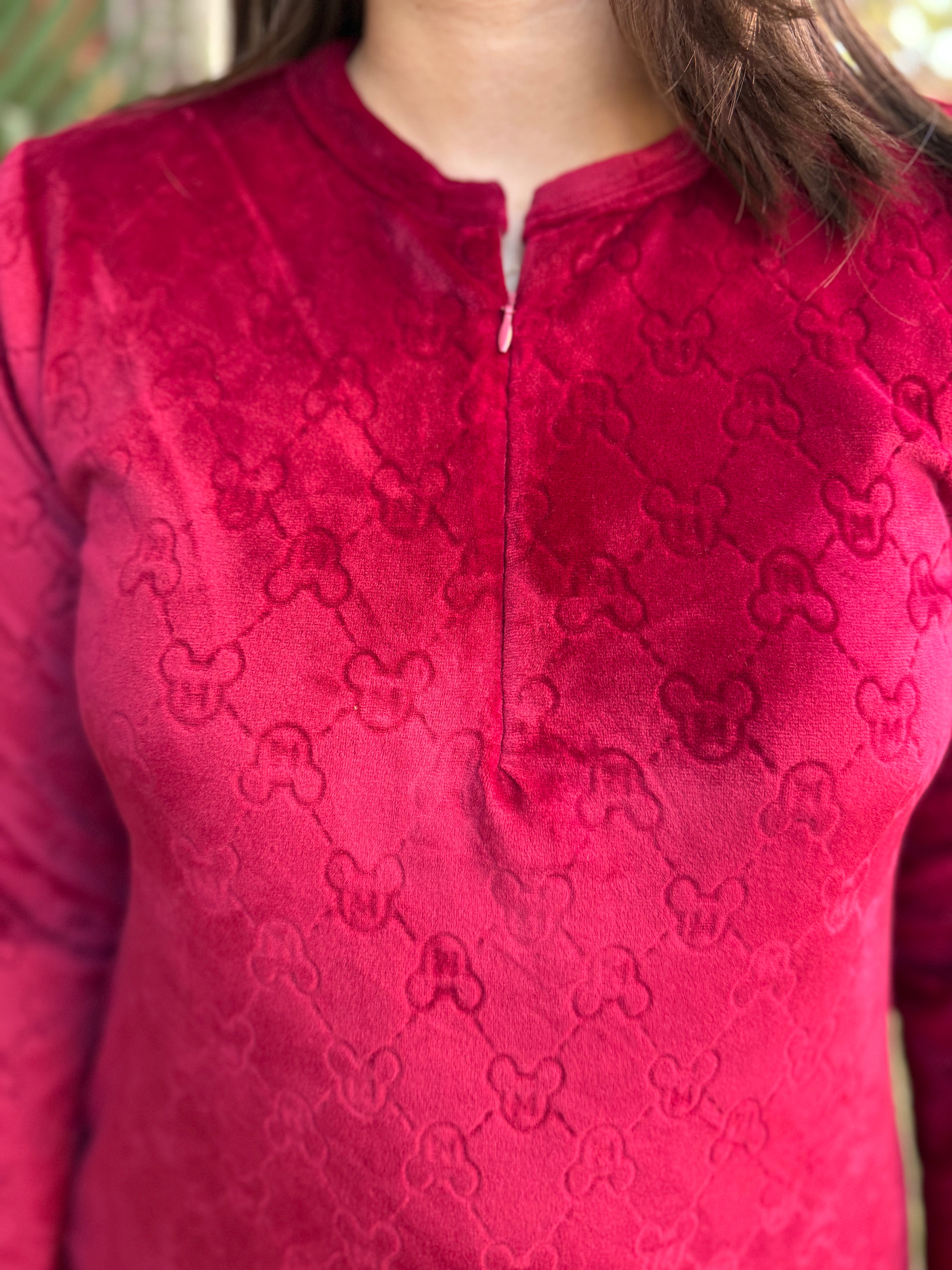 Warm woollen fleece straight-fit Top paired with matching palazzo, designed upcoming winters.