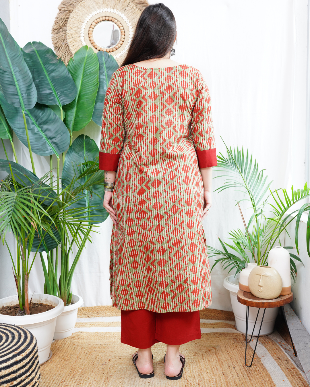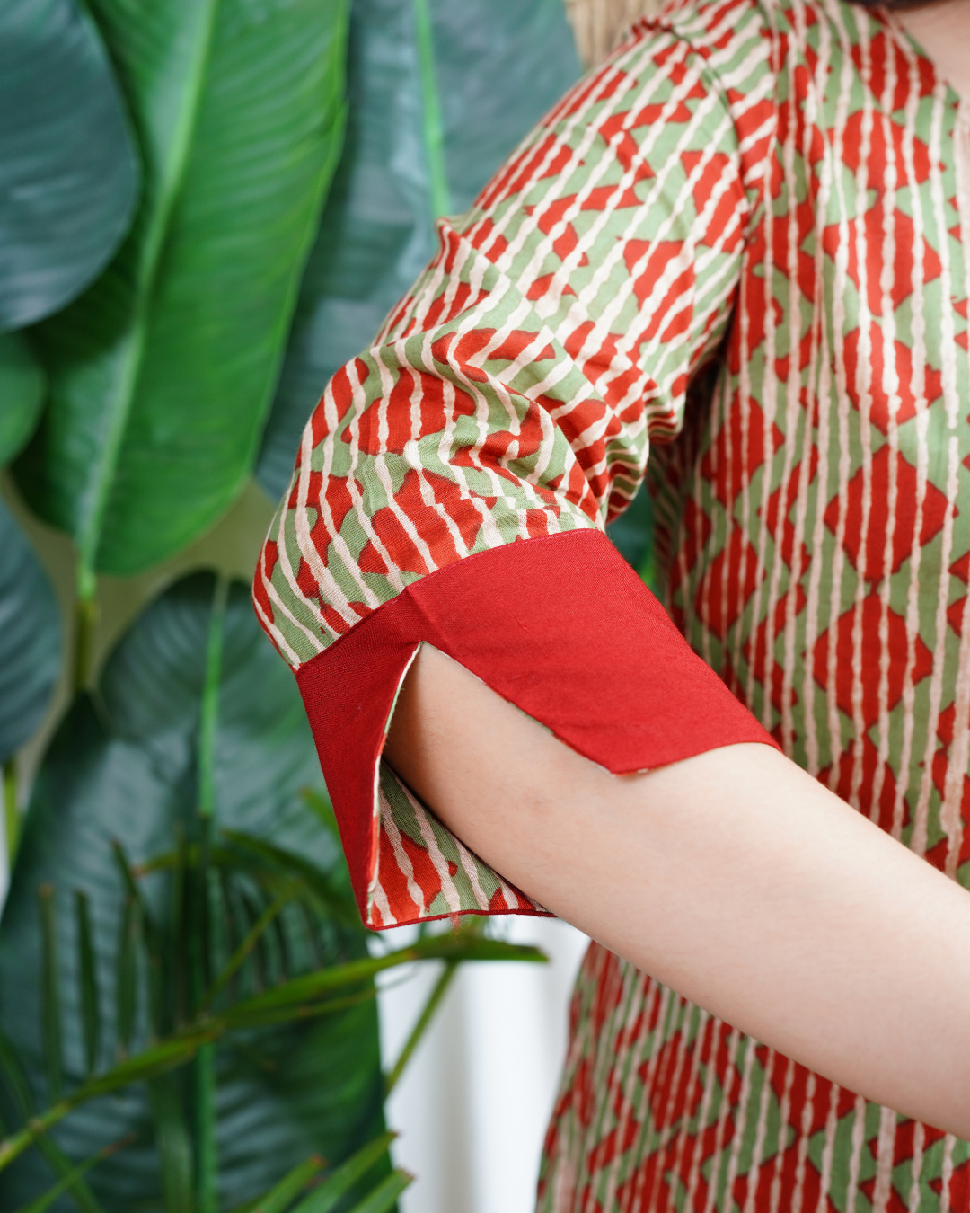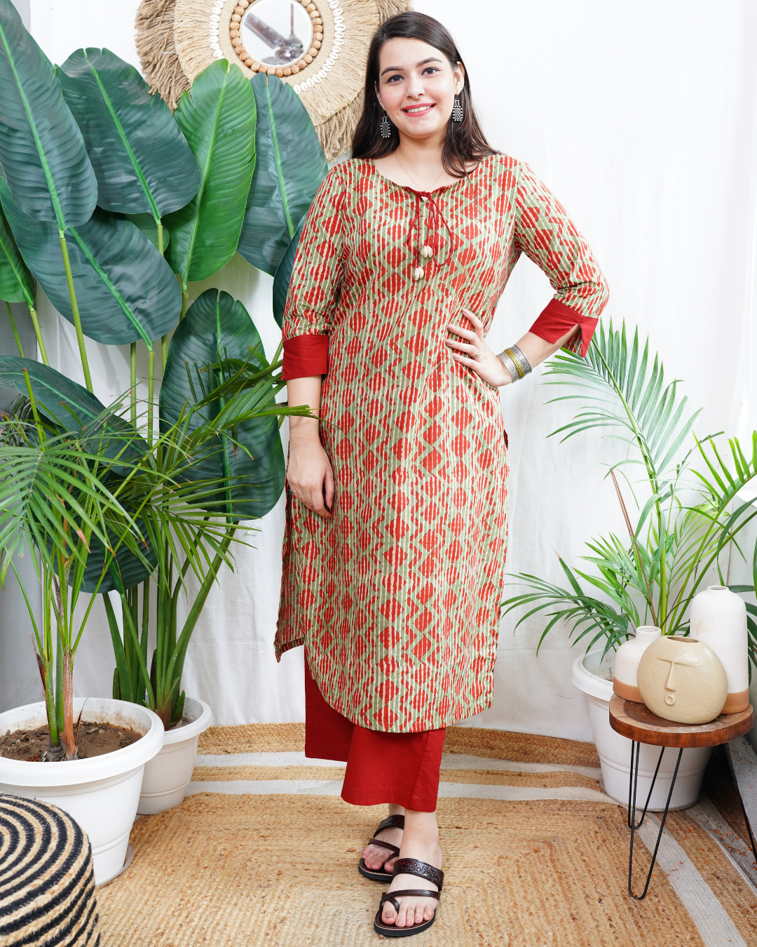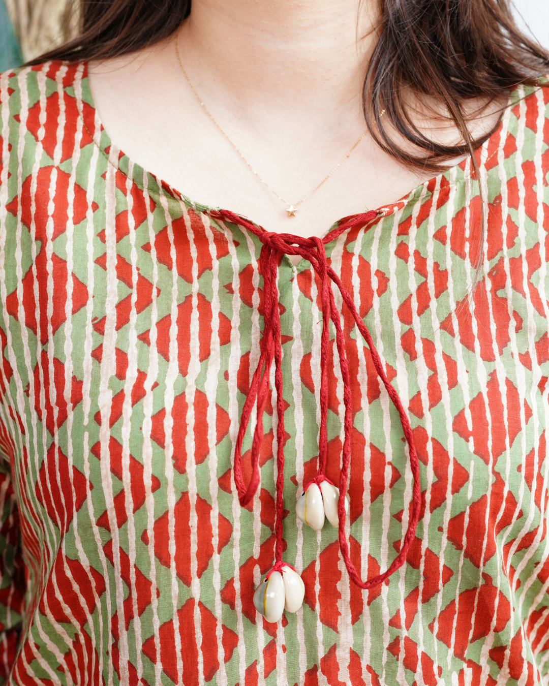 Sanganeri printed kurta with Tassel and shell detailing on neck.