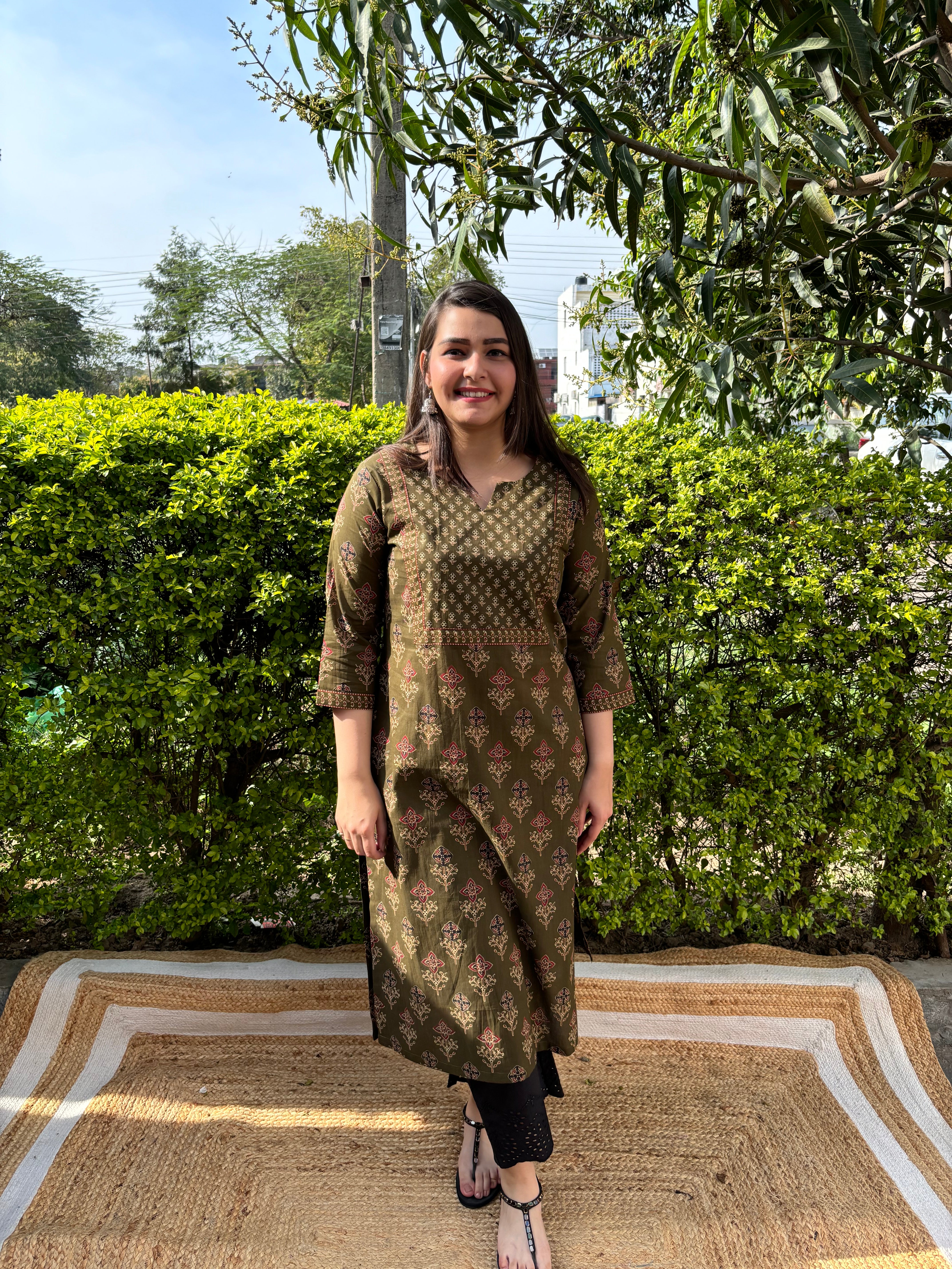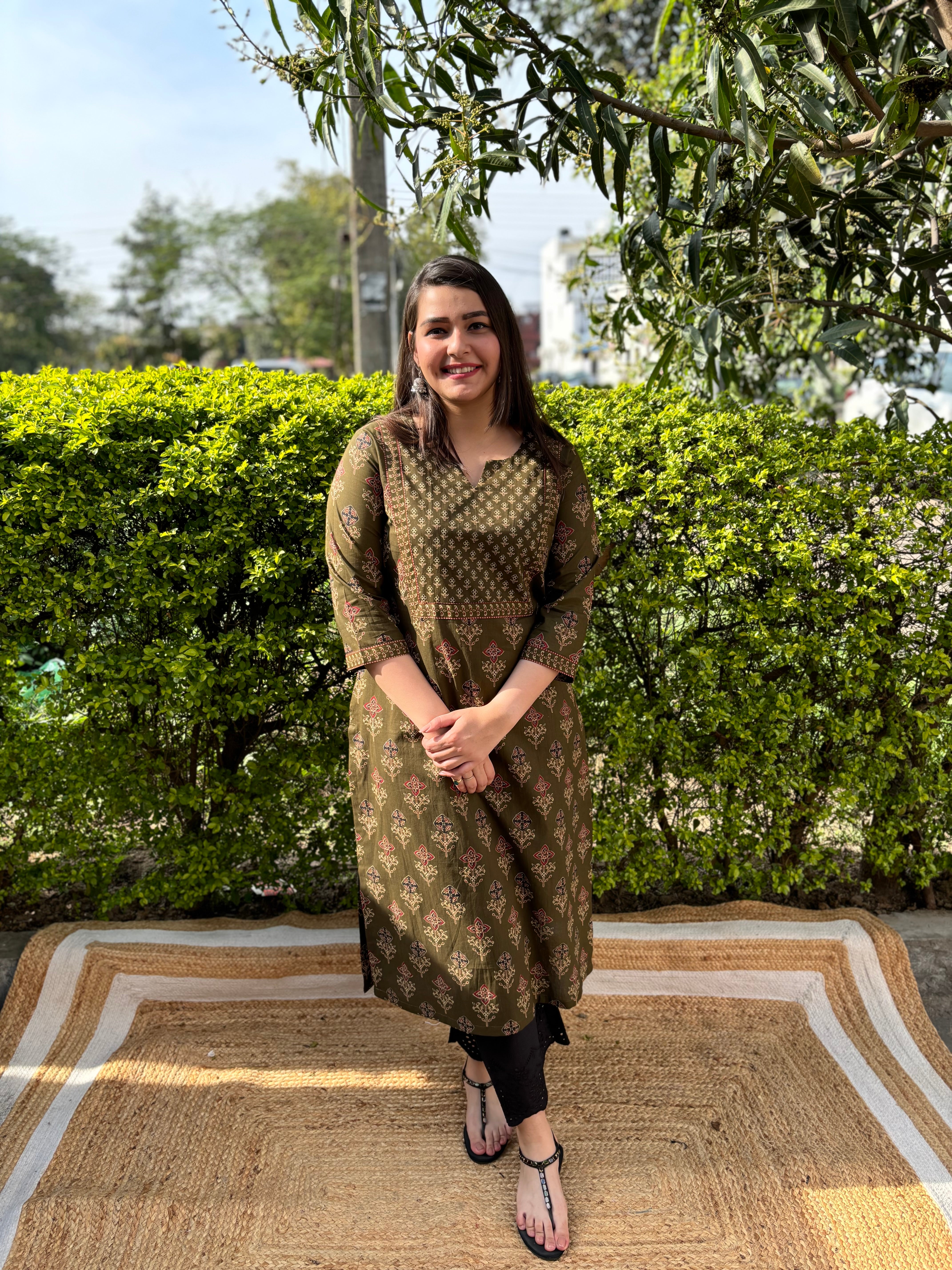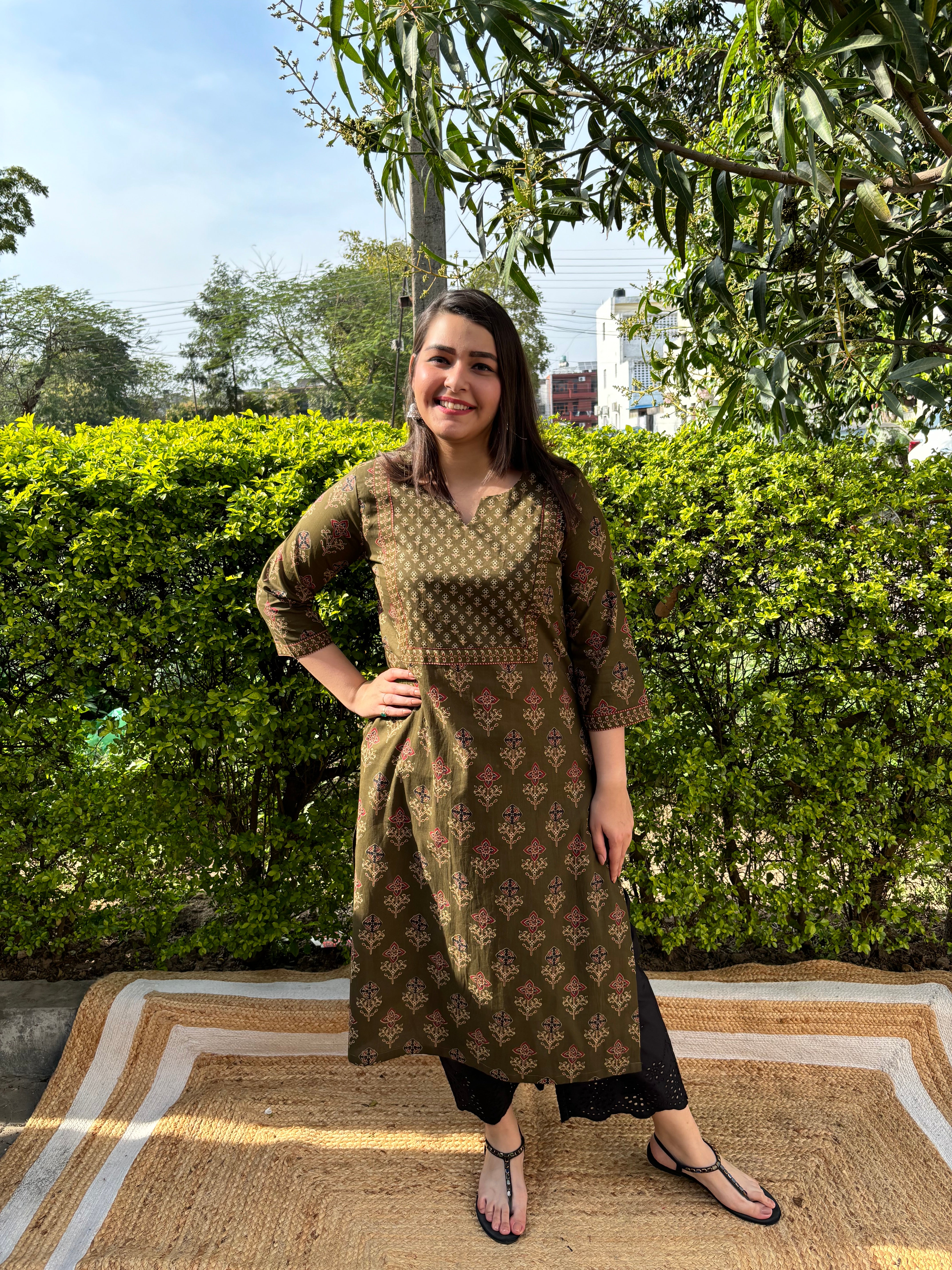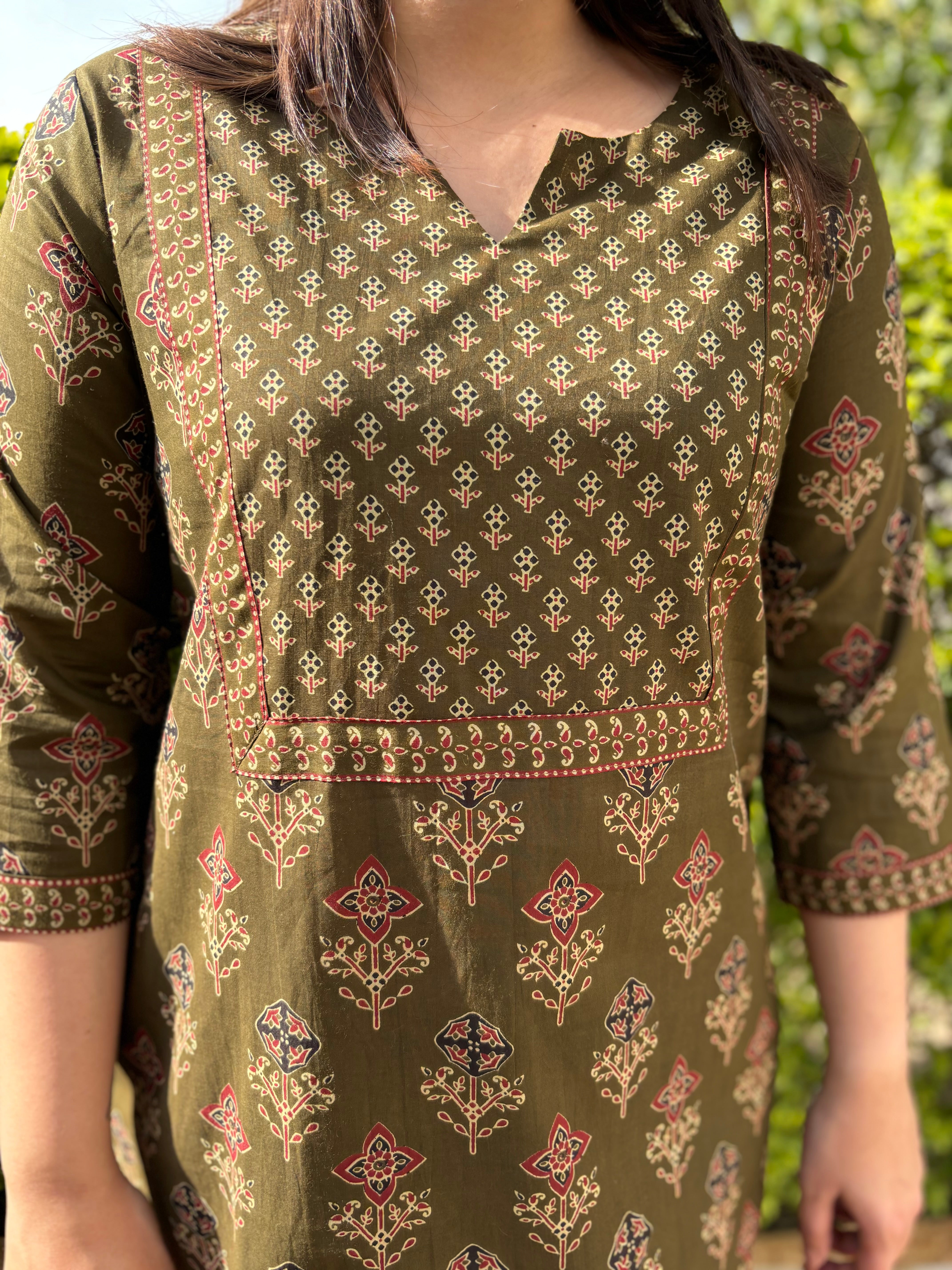 Mehendi green sanganeri yoke kurta