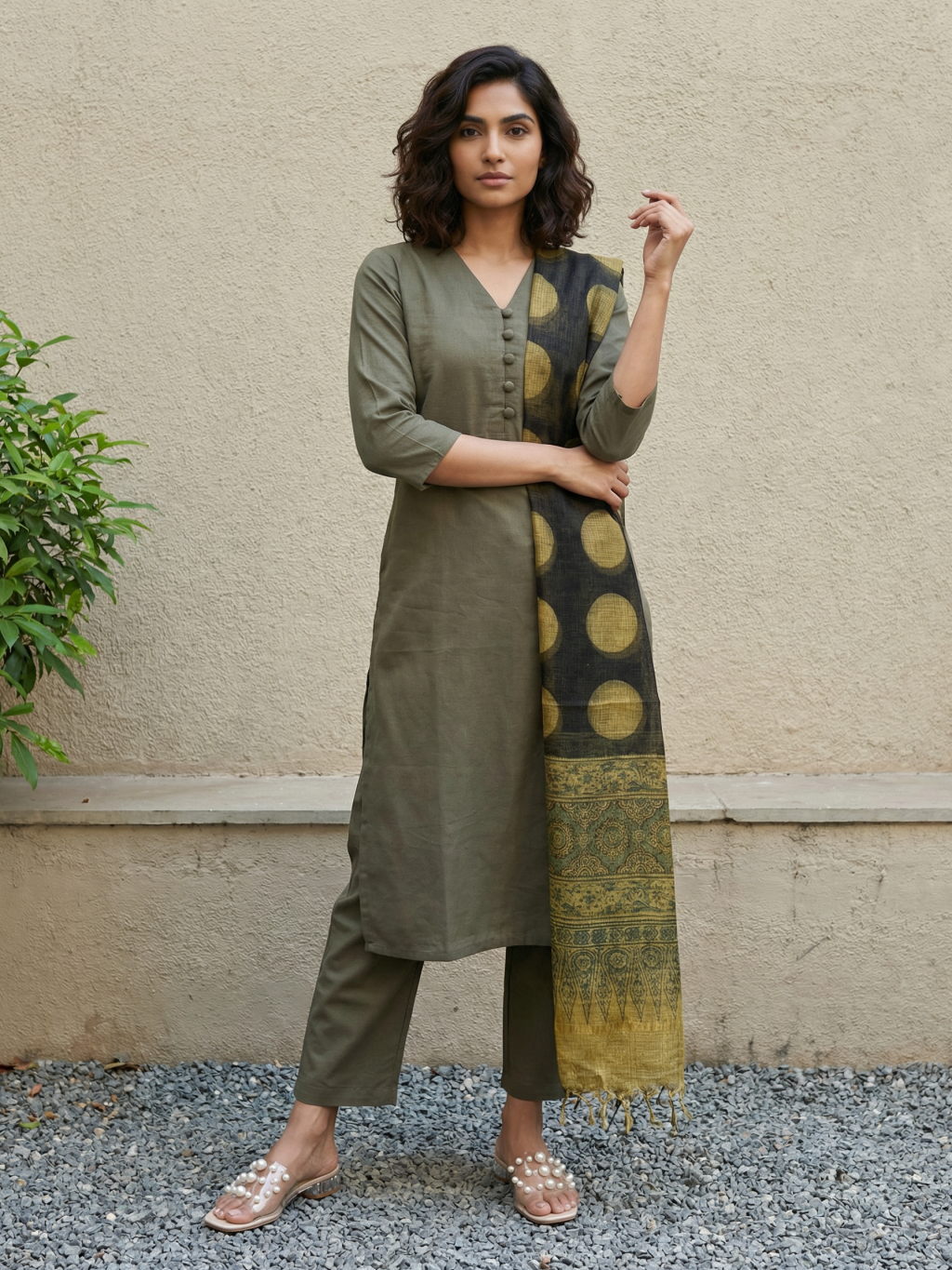 Solid Straight fit full suit set with matching duppata and palazzo.
