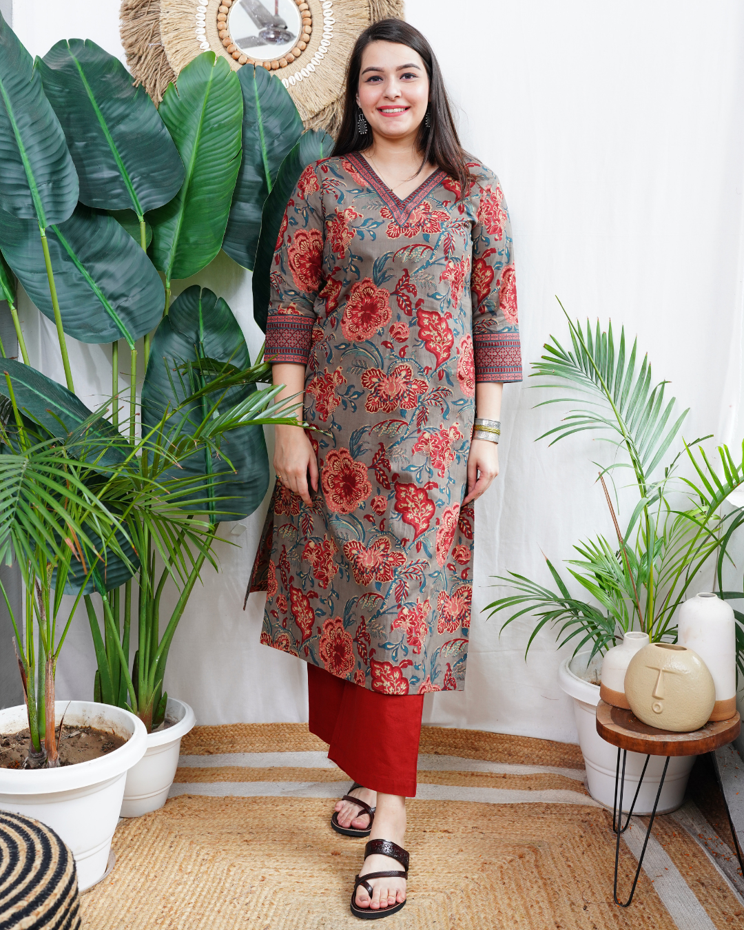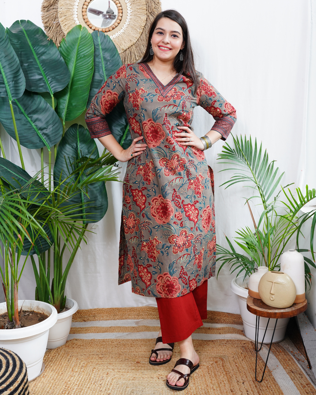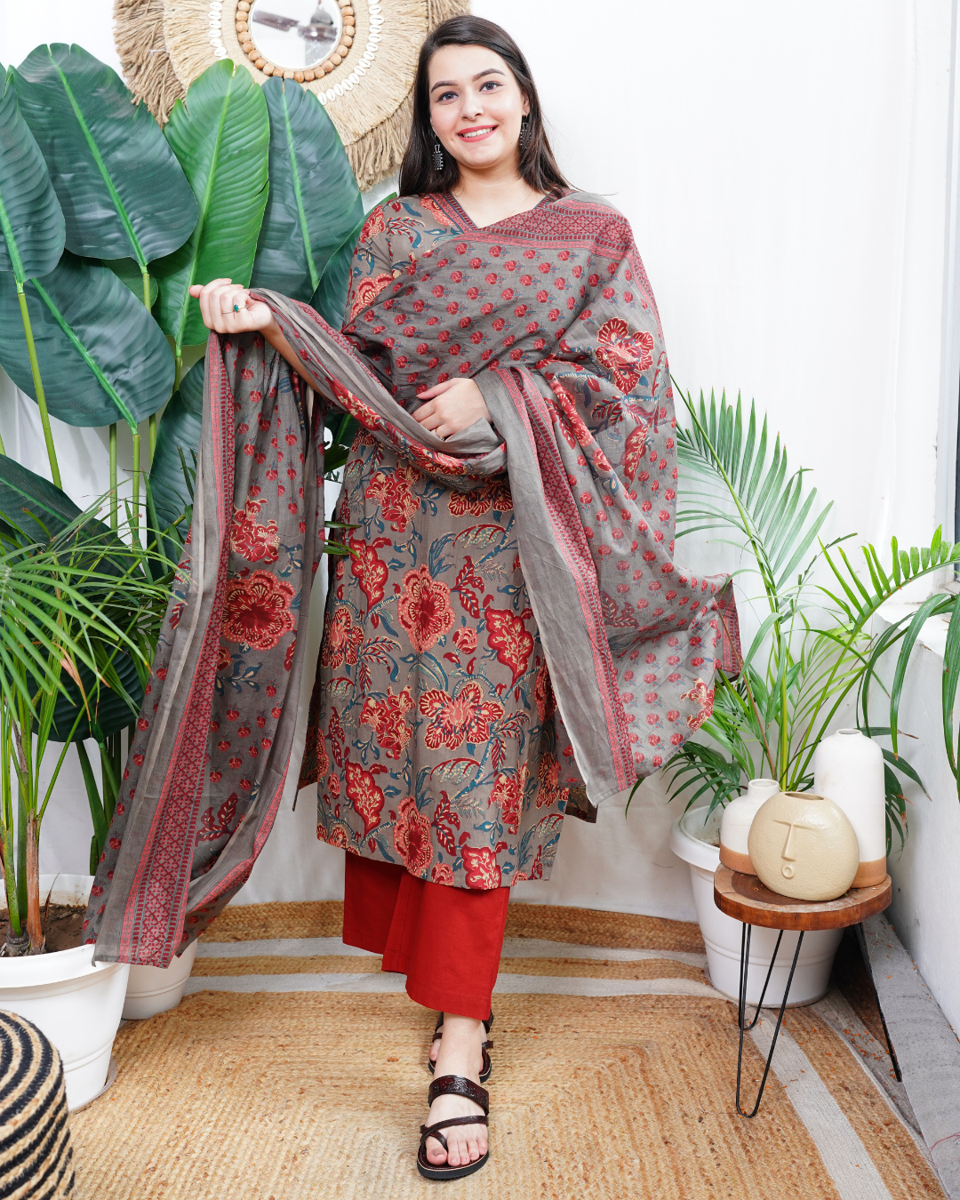 Classic straight kurta with a breezy Mulmul printed duppata. This is the price of kurta and duppata only.