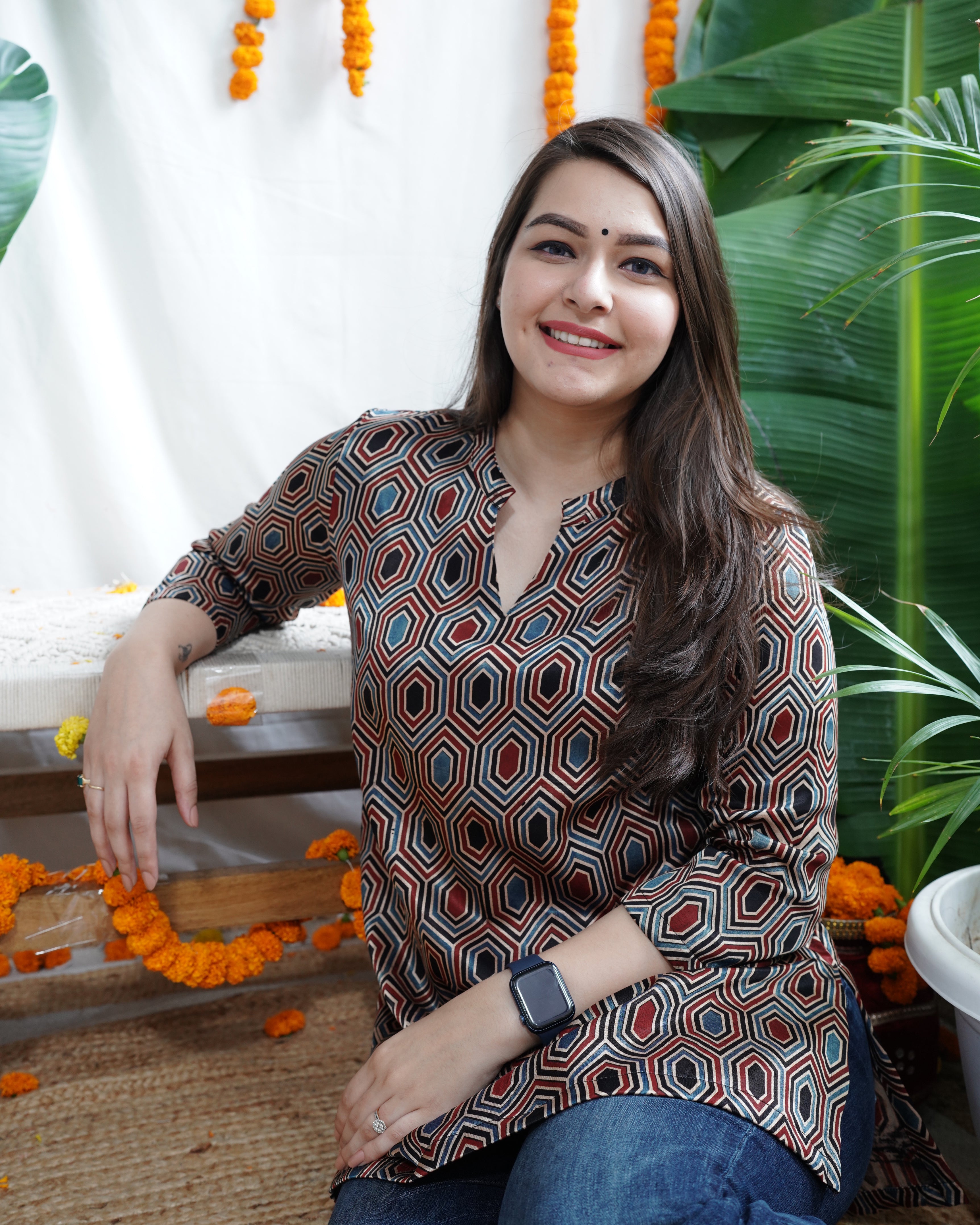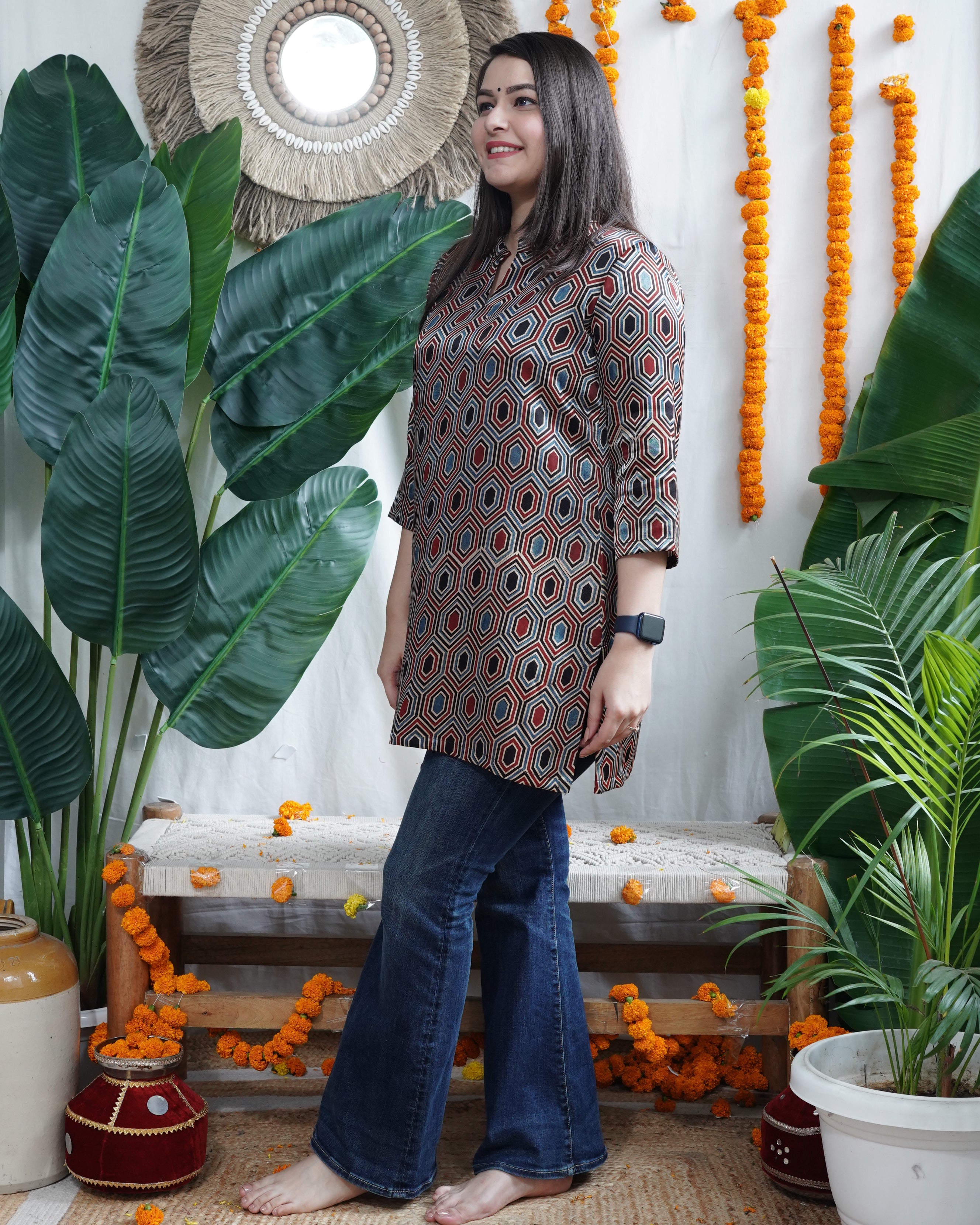 Multi tone geometric modal silk kurti