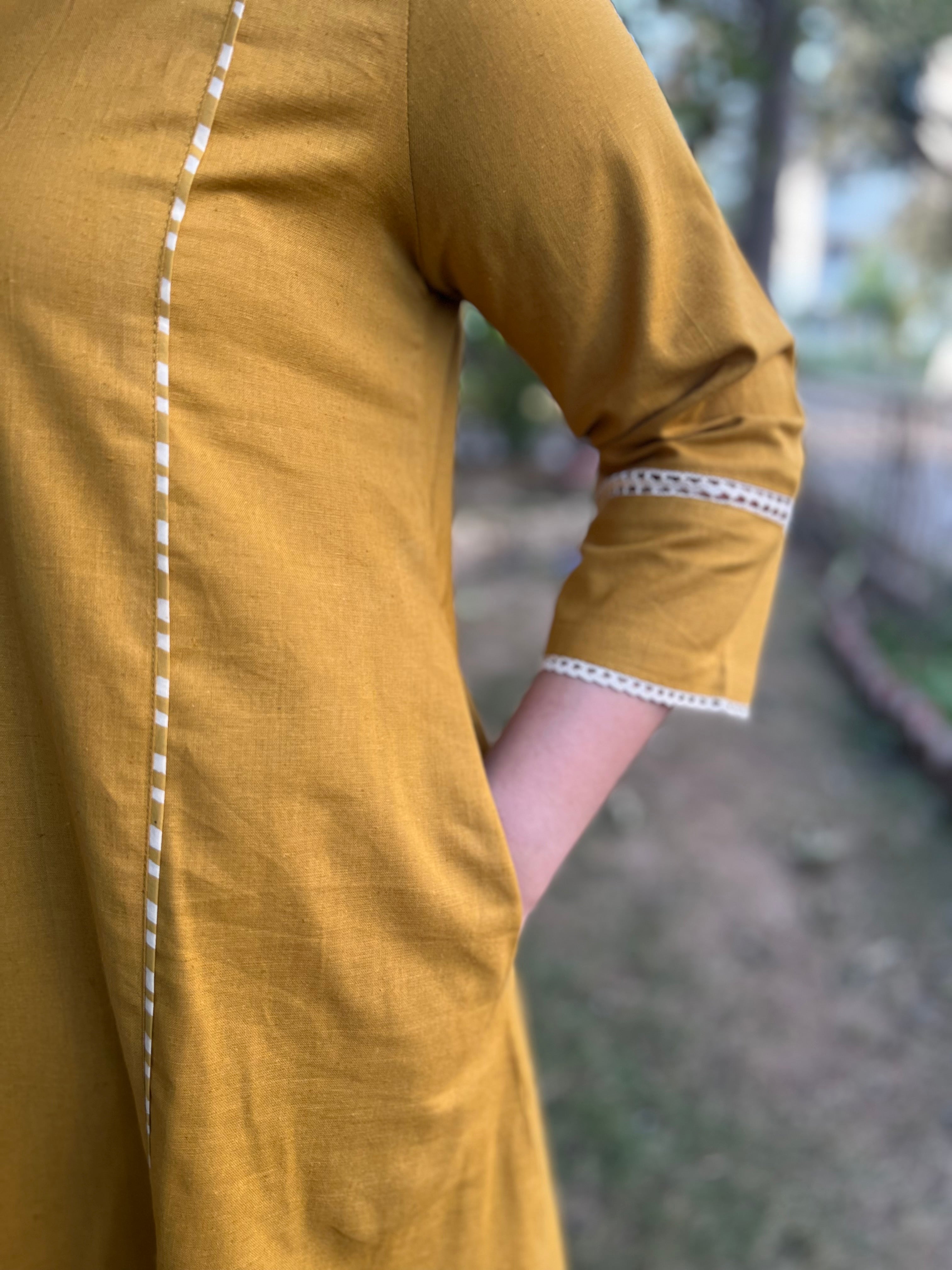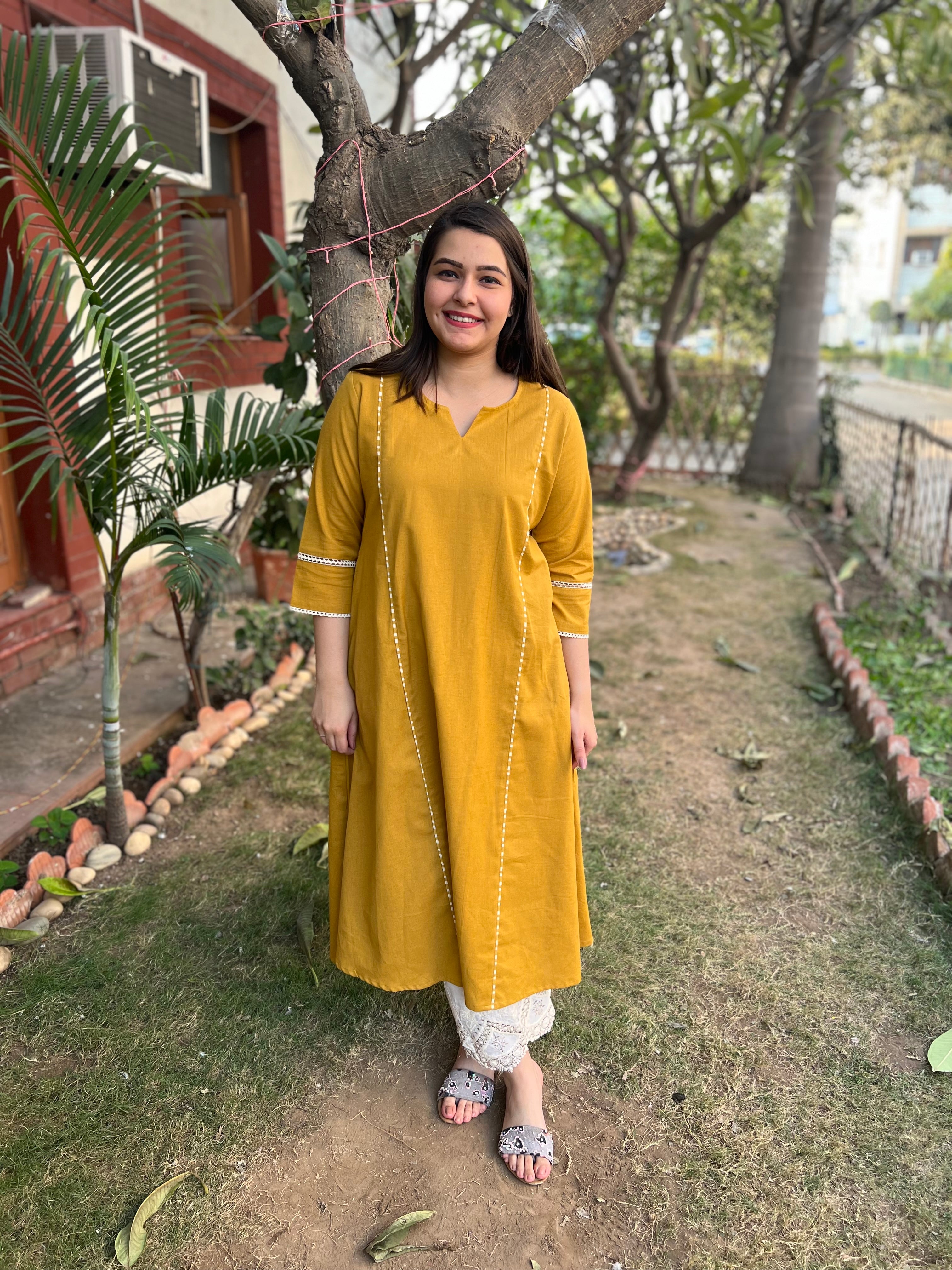 Mustard A-line Basic Kurta is designed in a flattering A-line silhouette, this kurta flows gently from the bust, creating an easy, unstructured drape that's perfect for all-day wear.