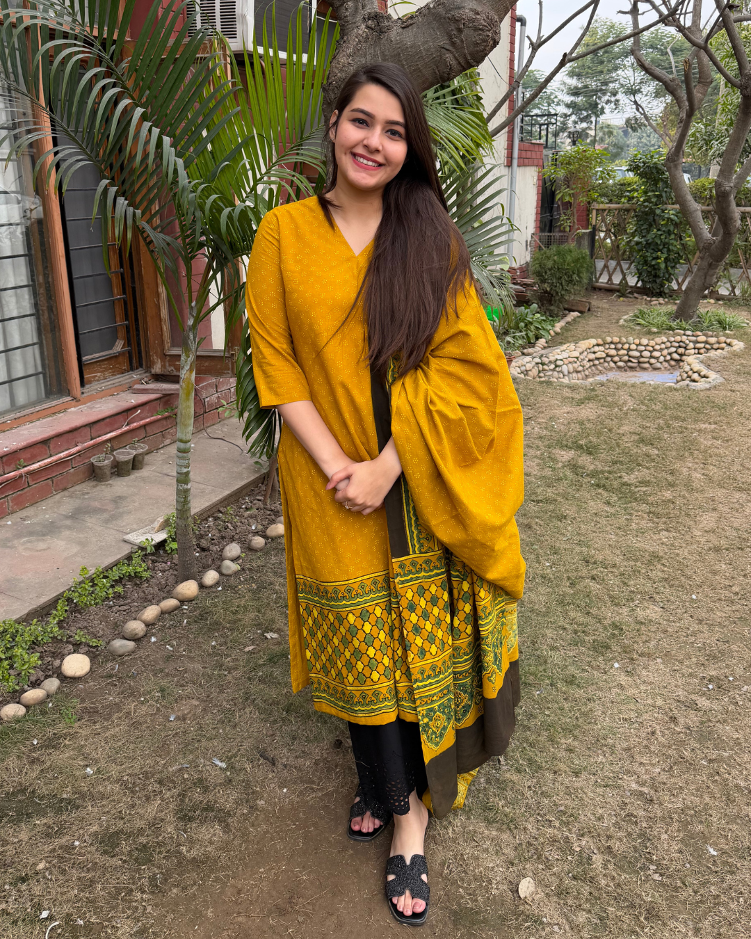 Ajrakh handblock printed cotton Kurta with cotton duppata. This is the price of kurta and duppata only.