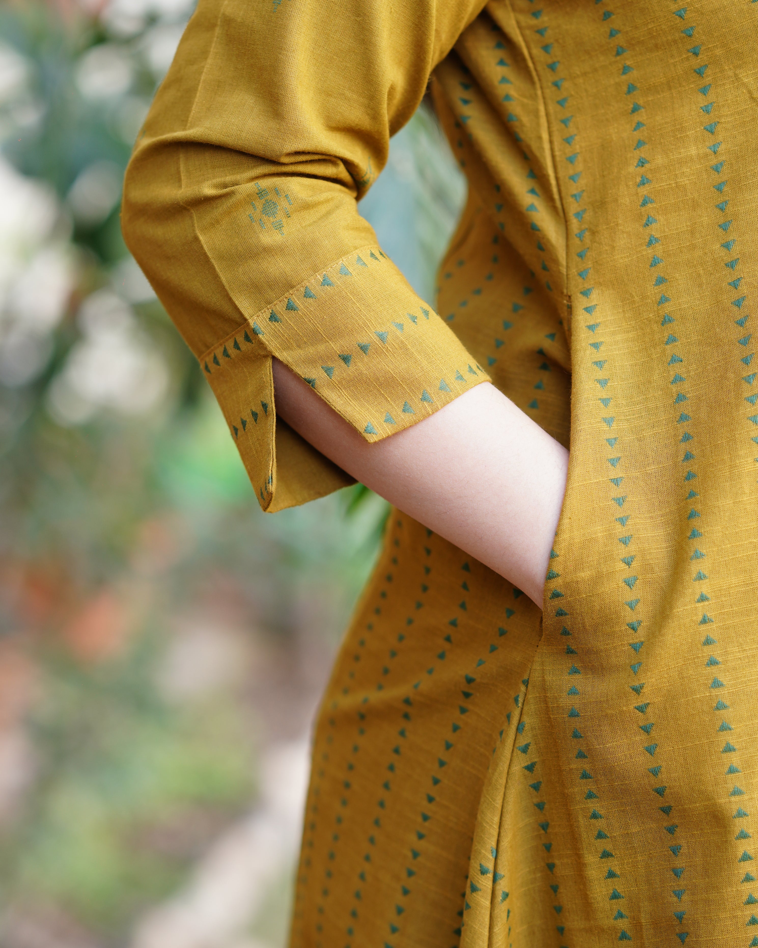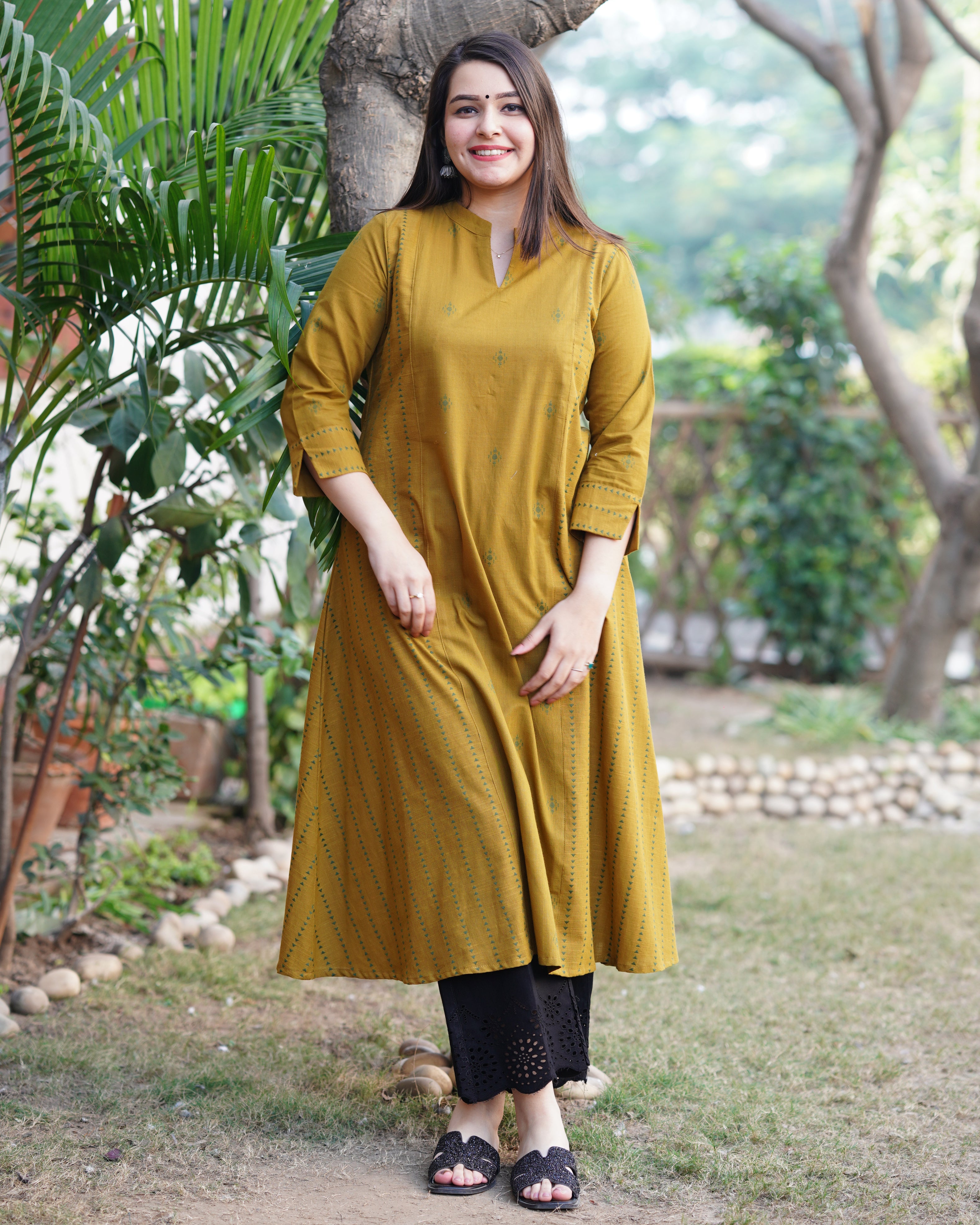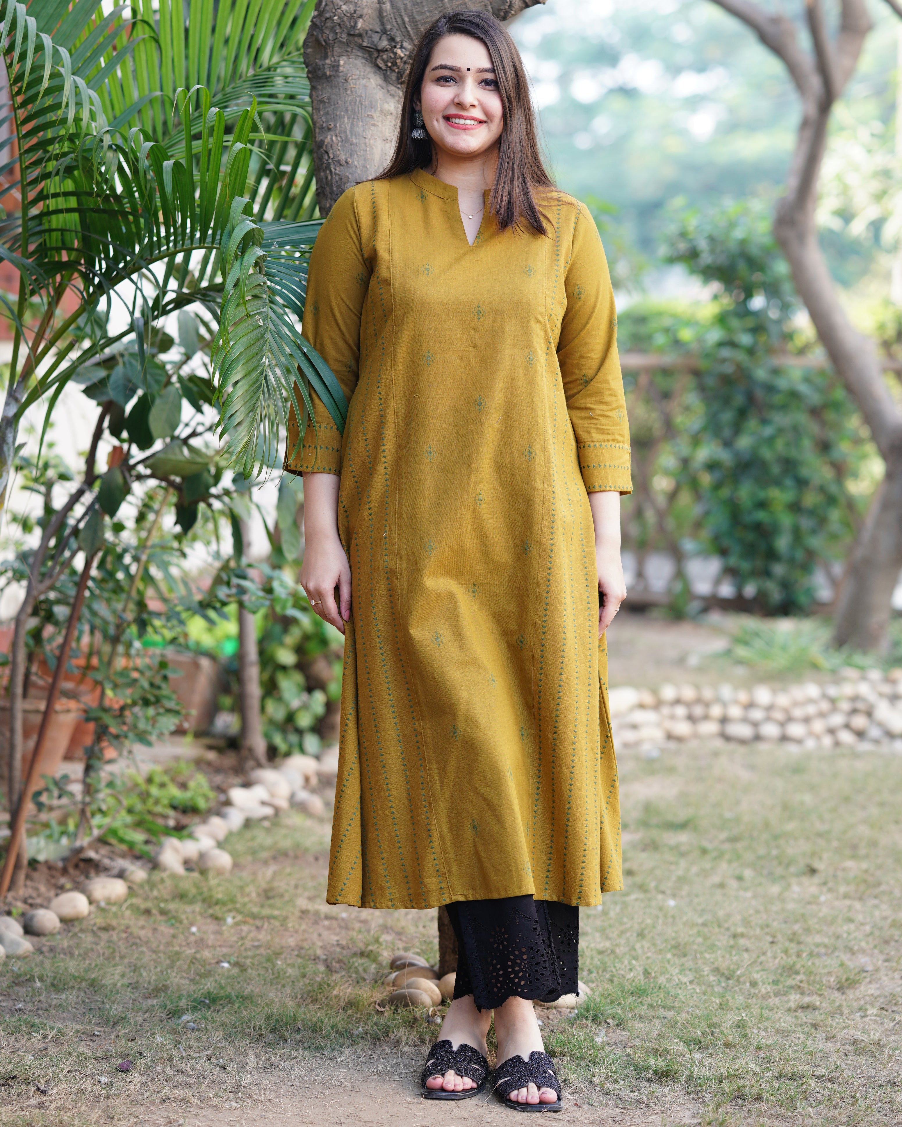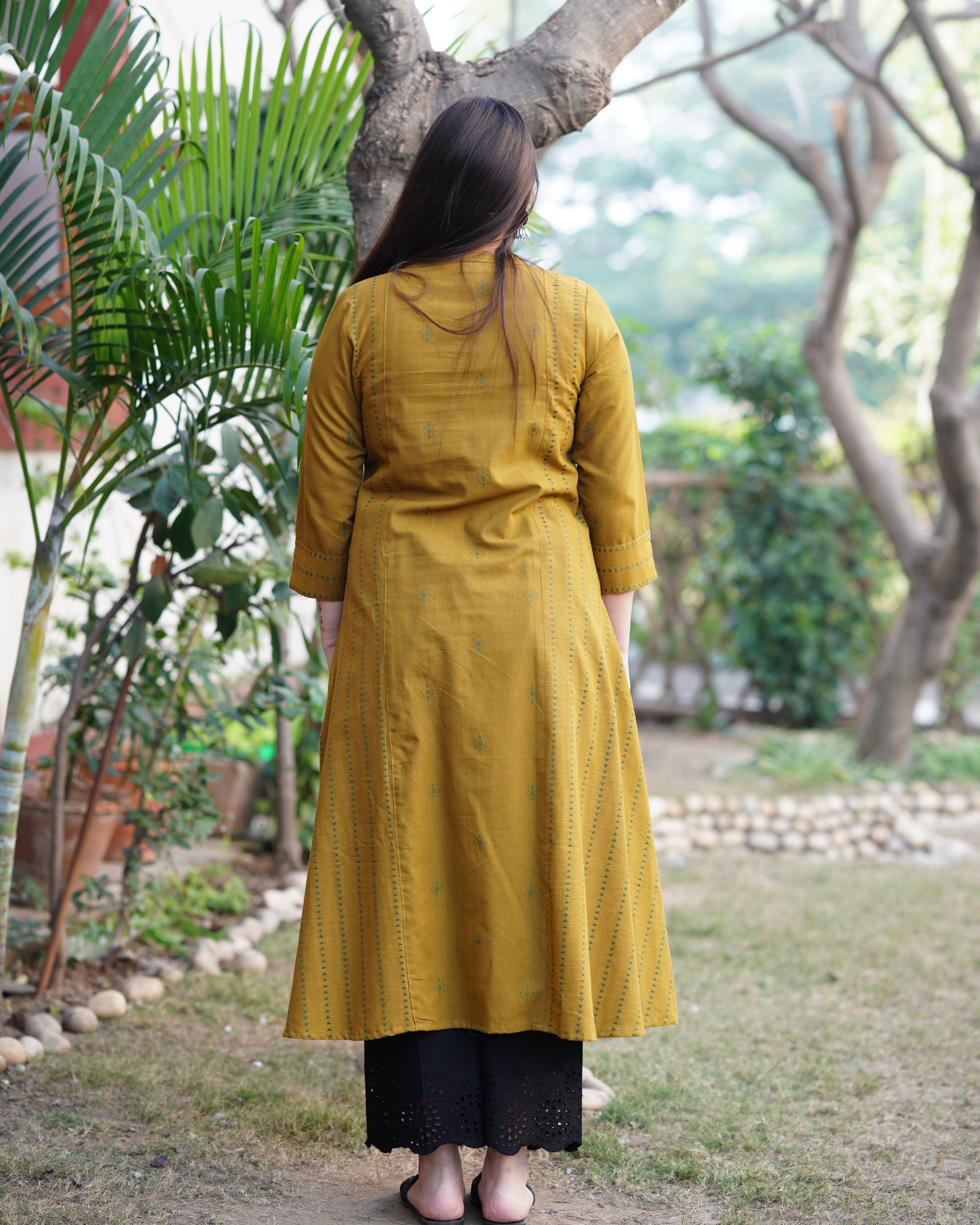 Mustard mehendi buti Aline kurta