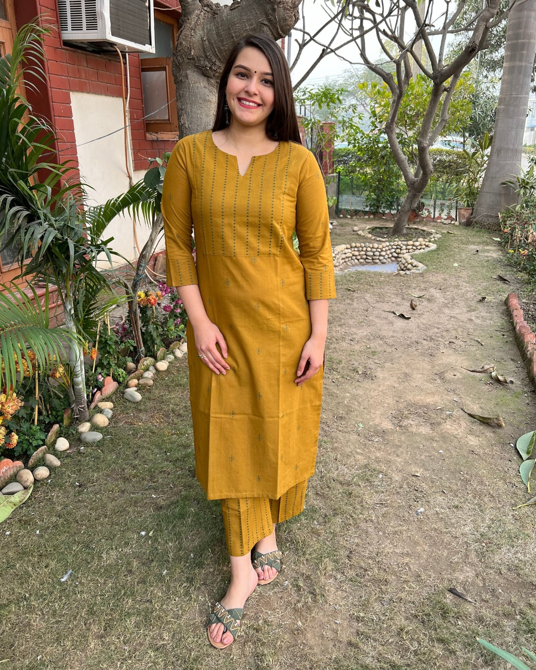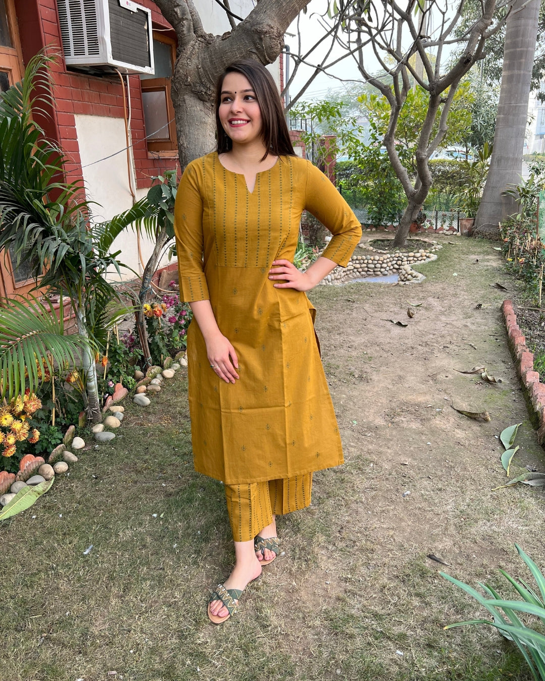 Comfortable straight-fit cotton kurta paired with matching palazzo, designed for effortless everyday style and ease