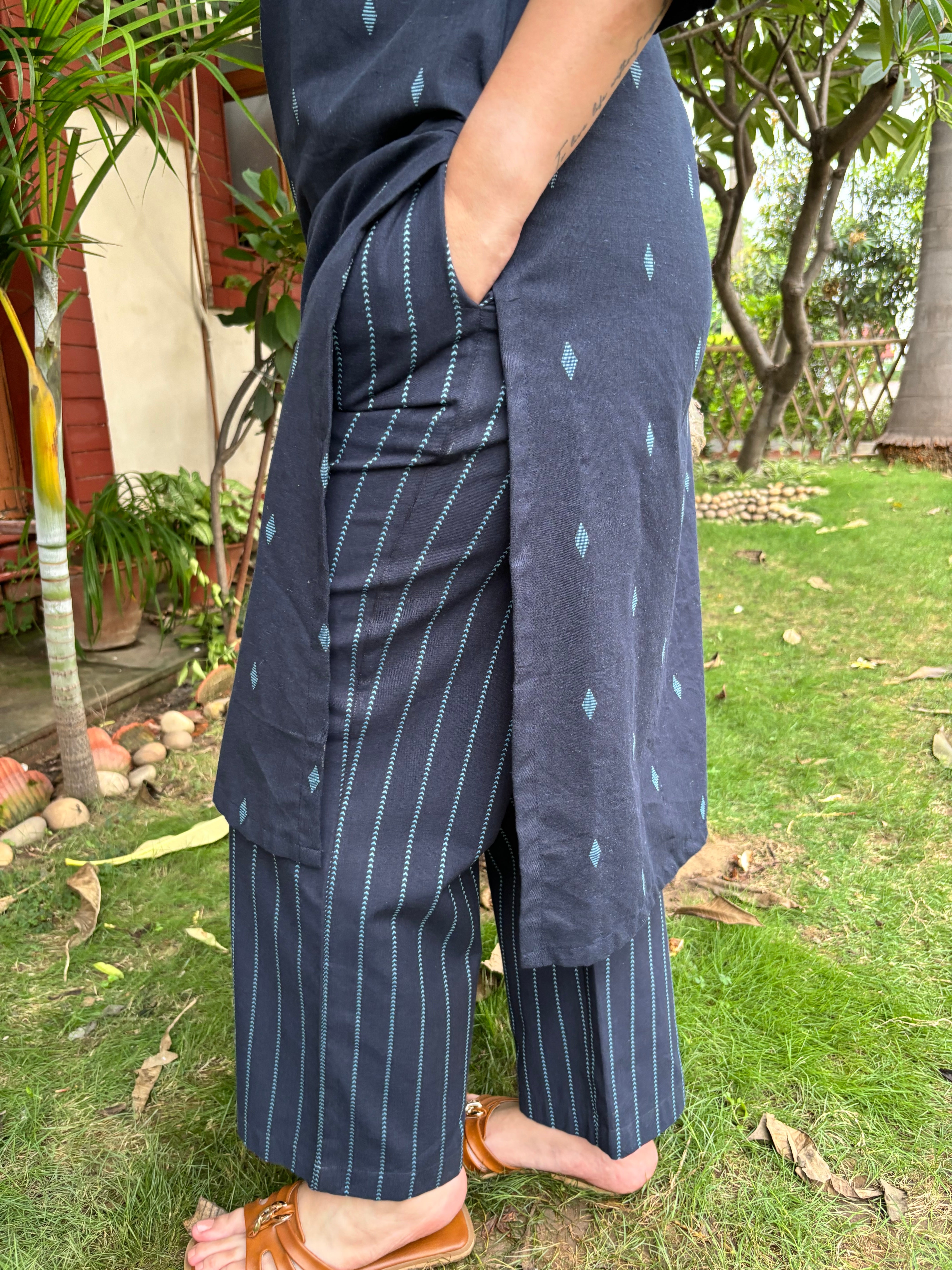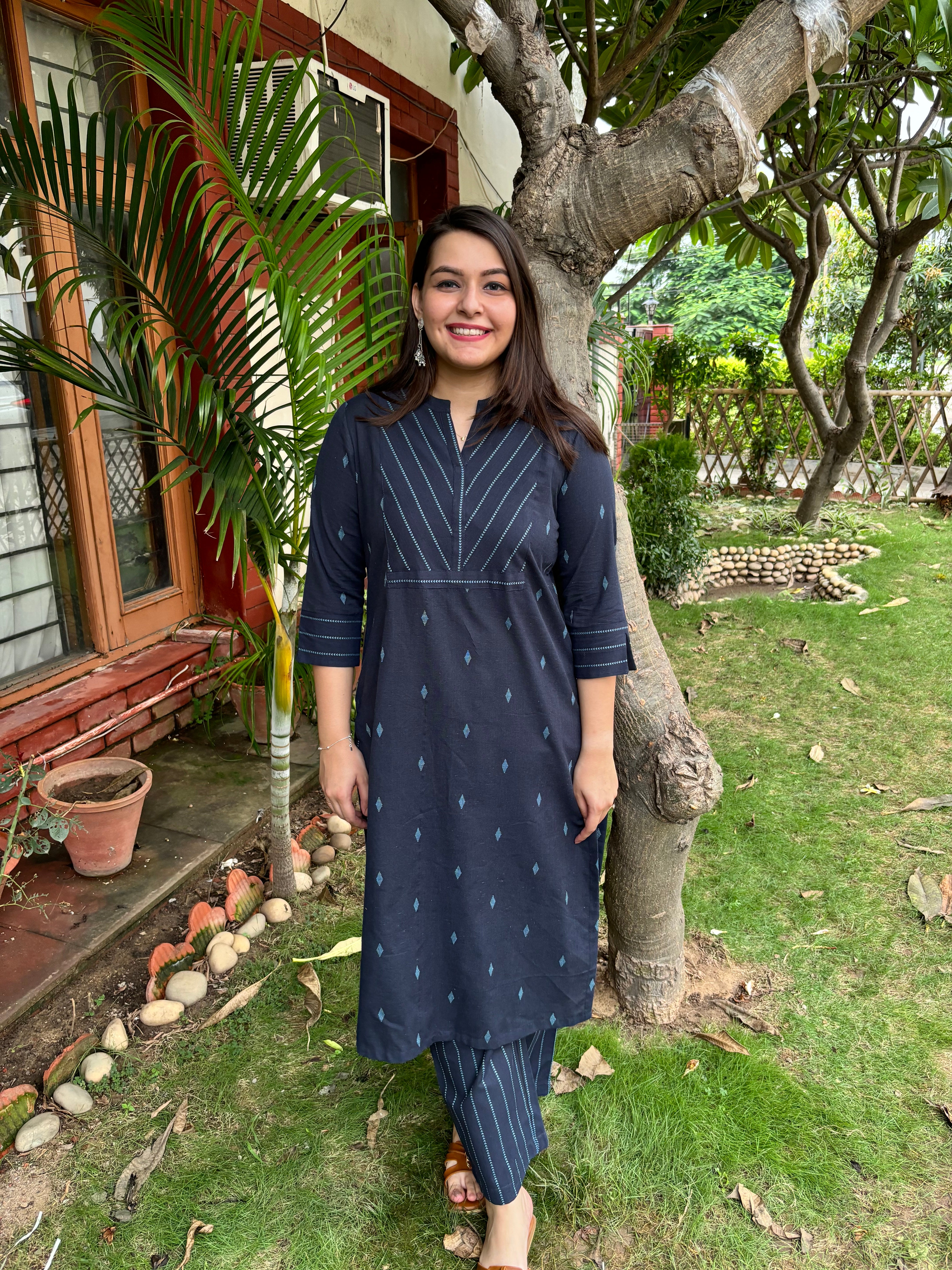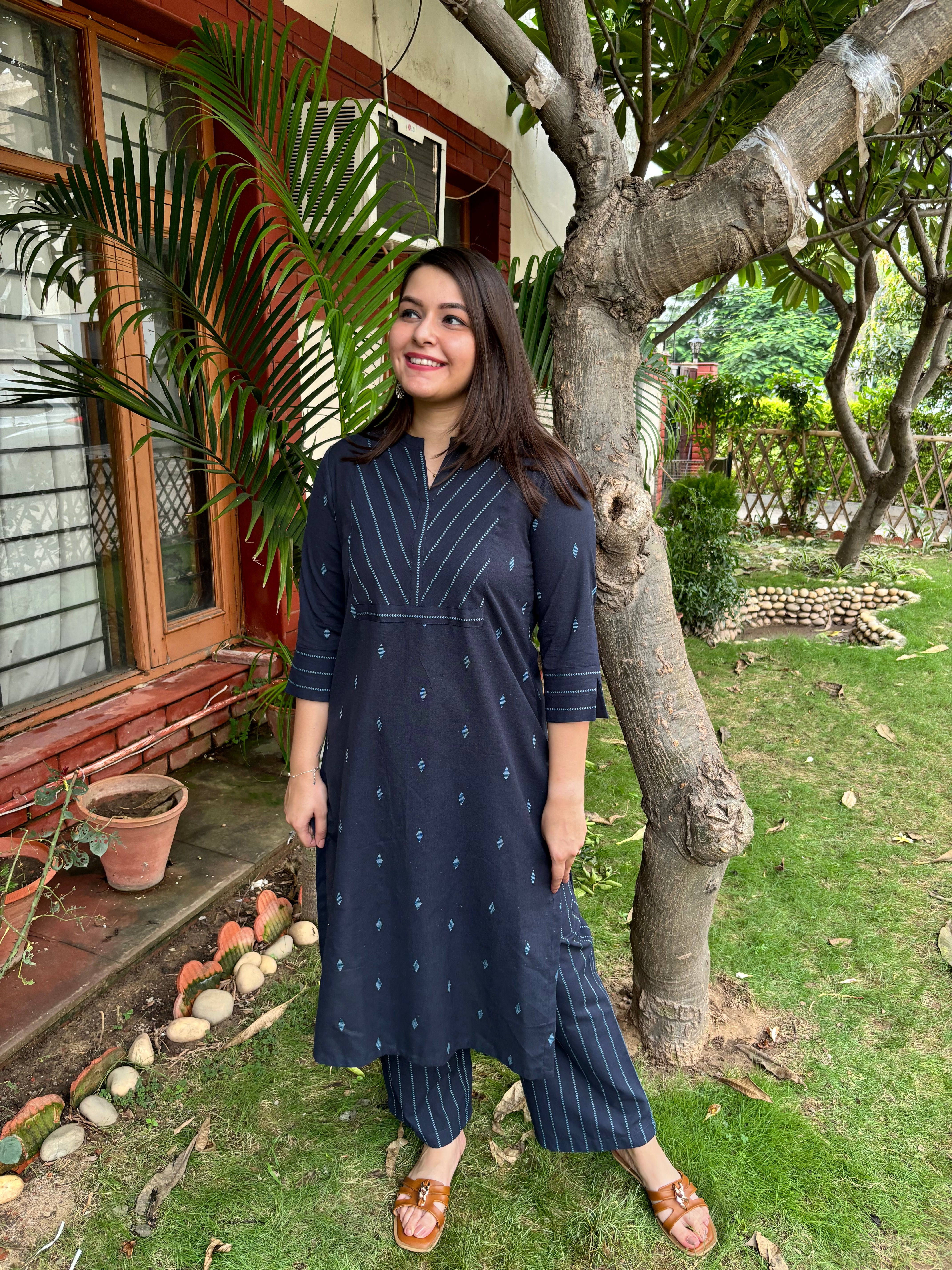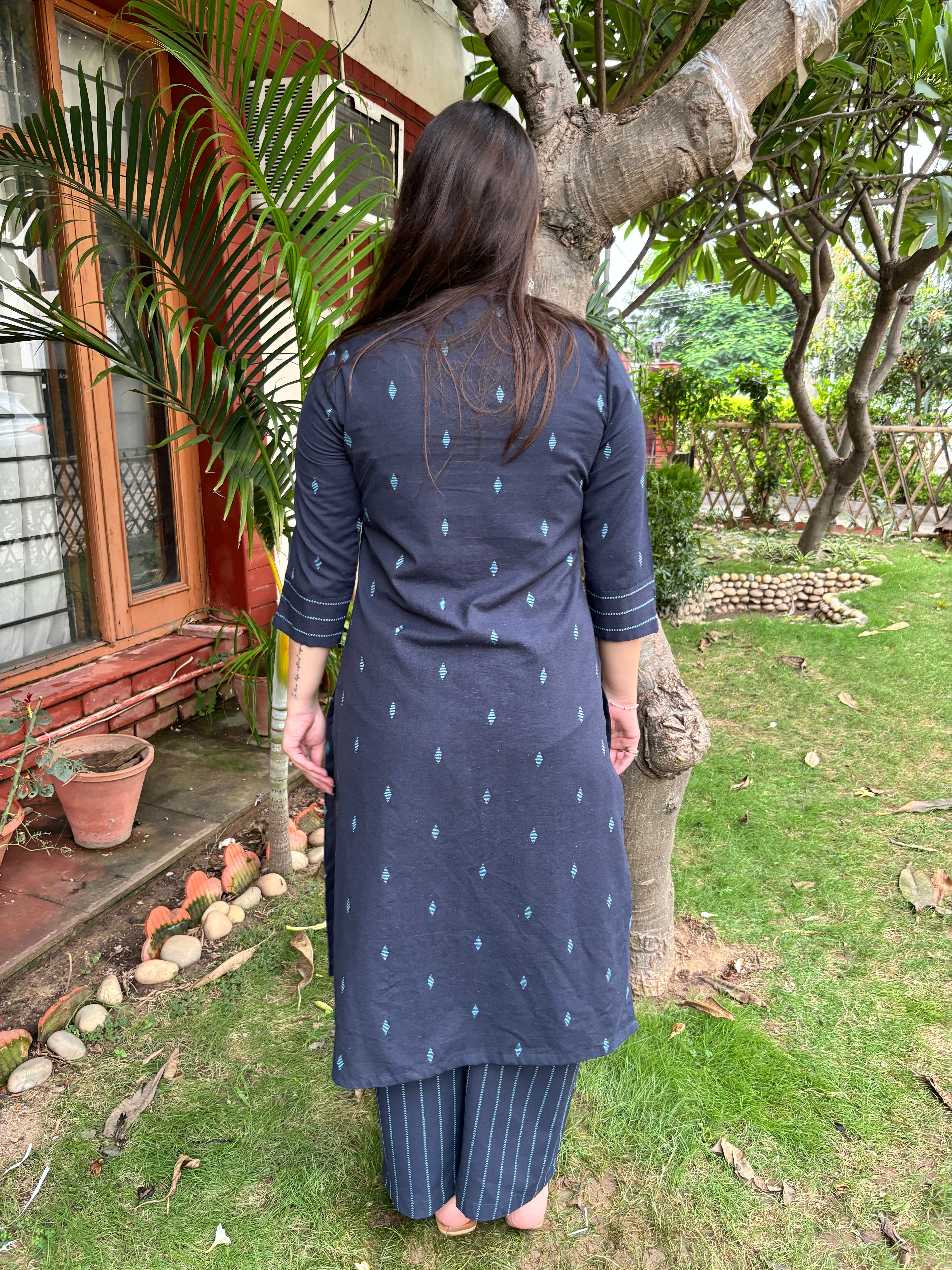 Comfortable straight-fit cotton kurta paired with matching palazzo, designed for effortless everyday style and ease