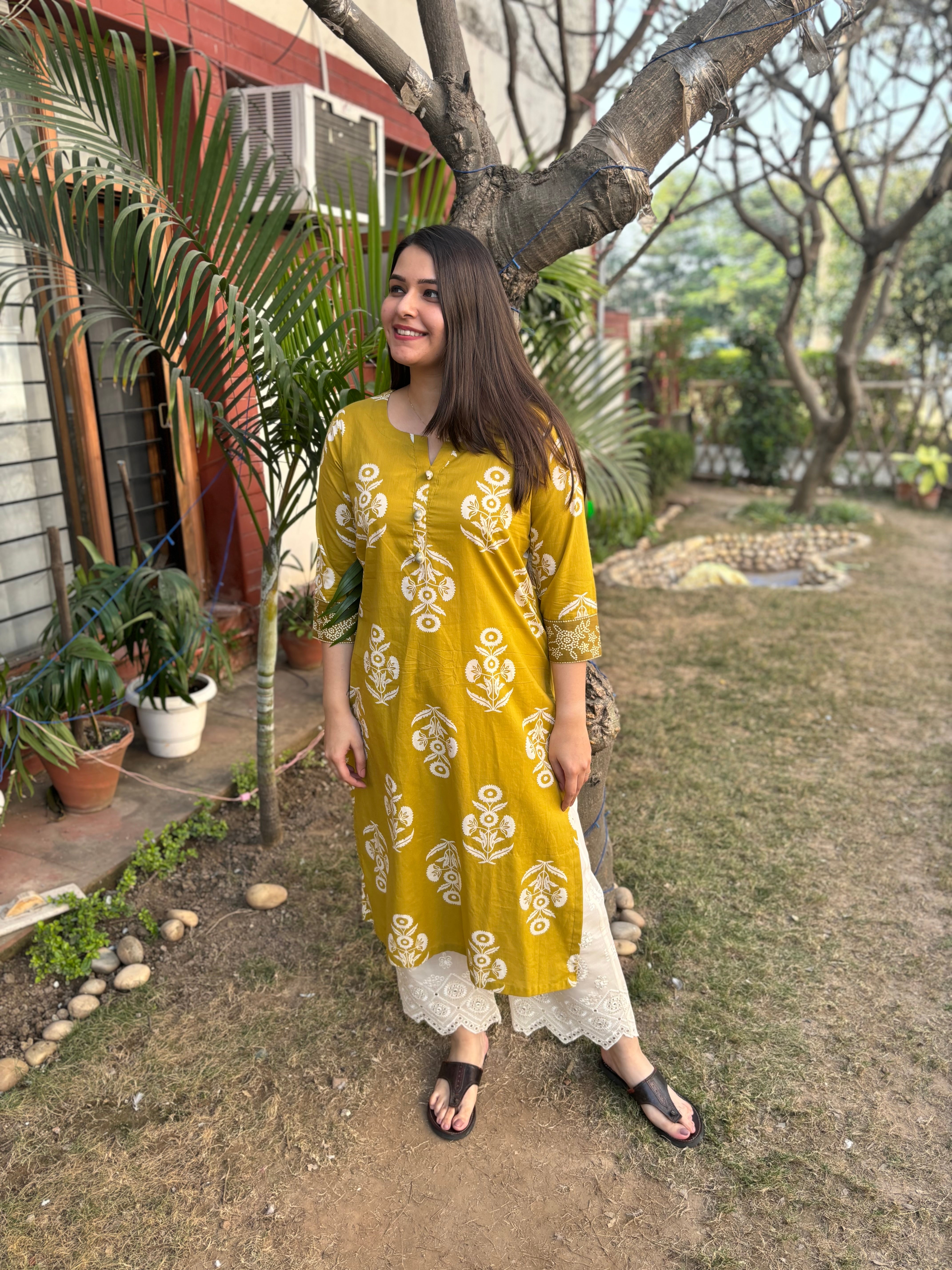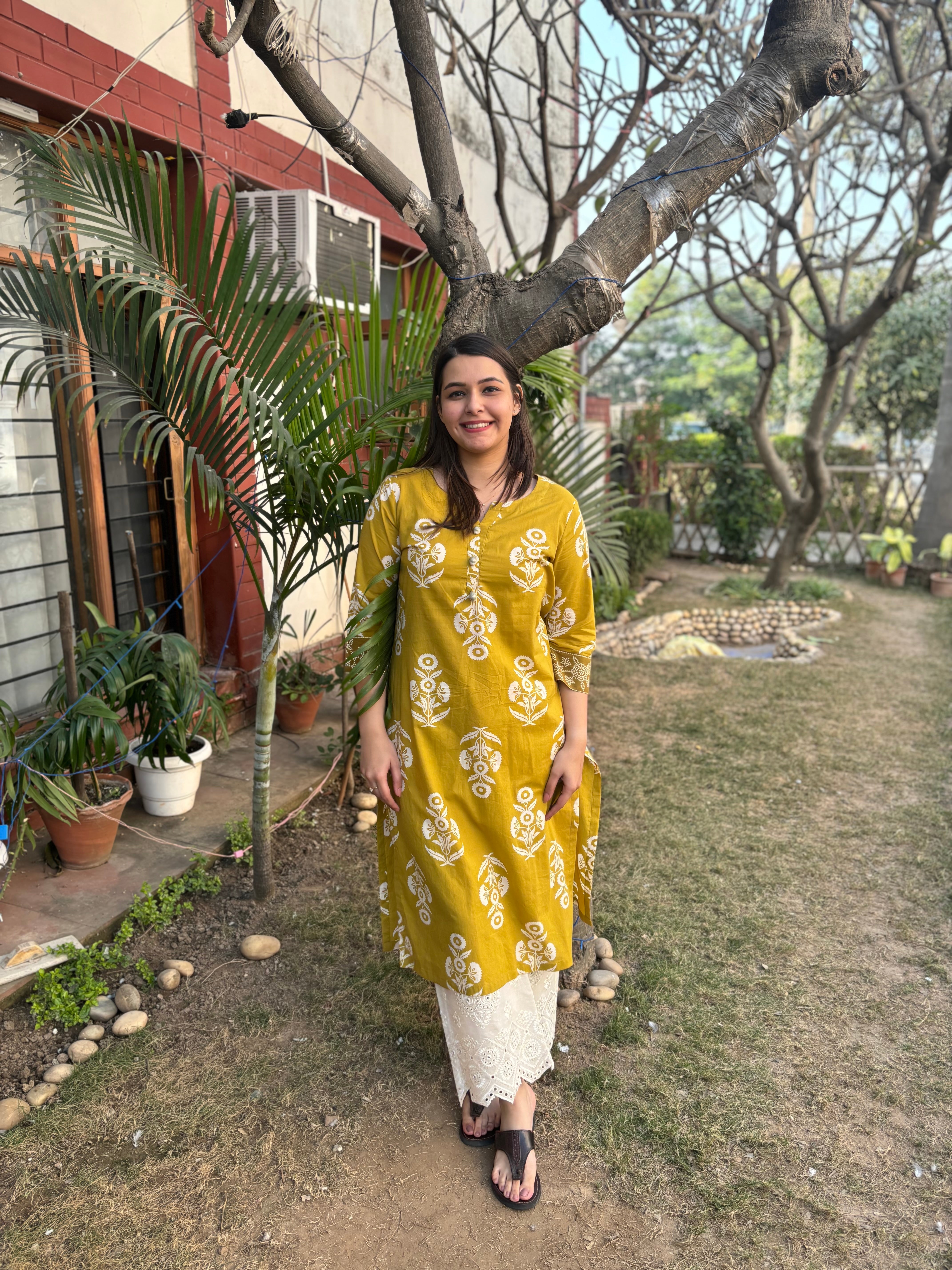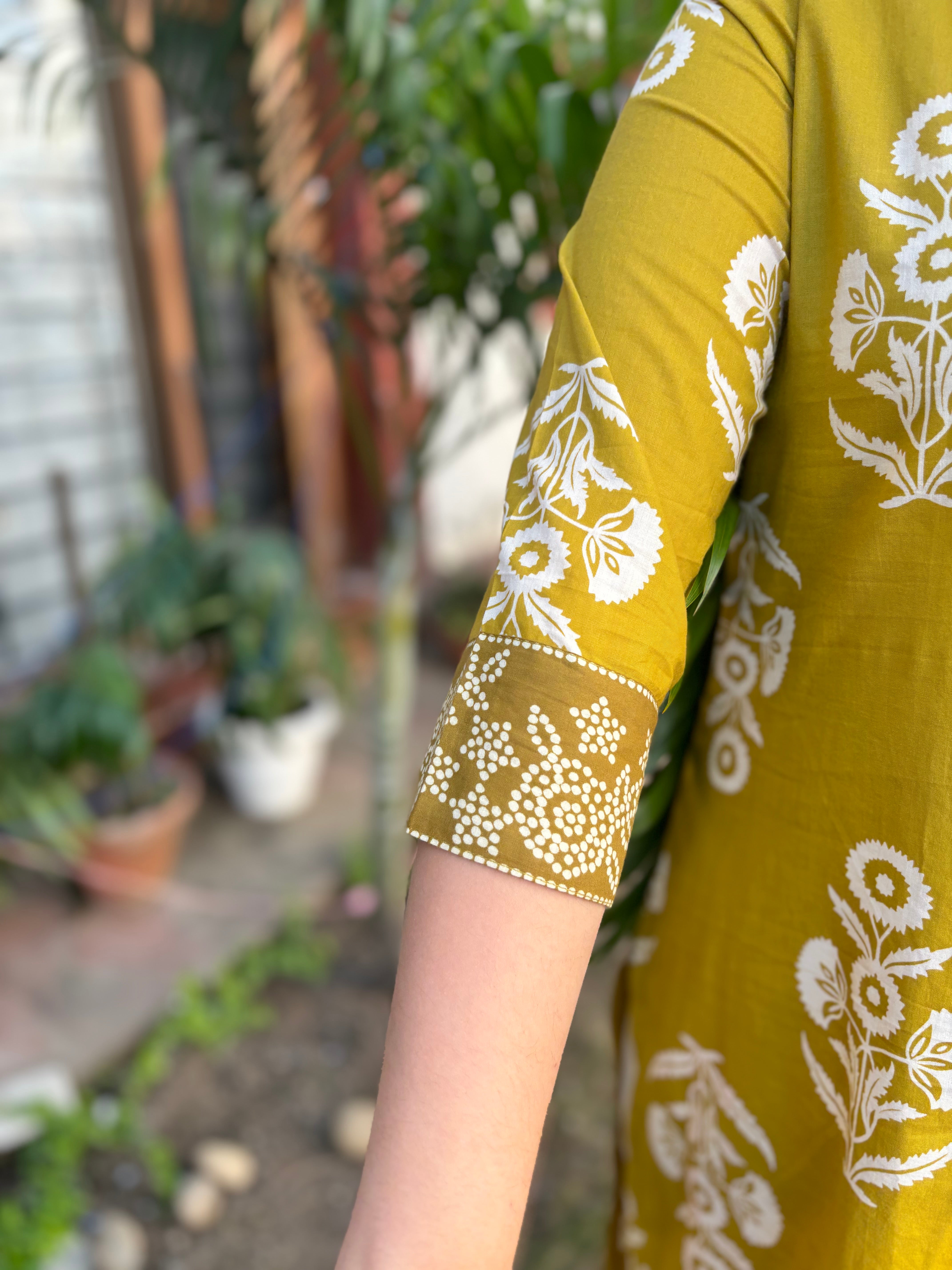 Neon green floral kurta with kodhi