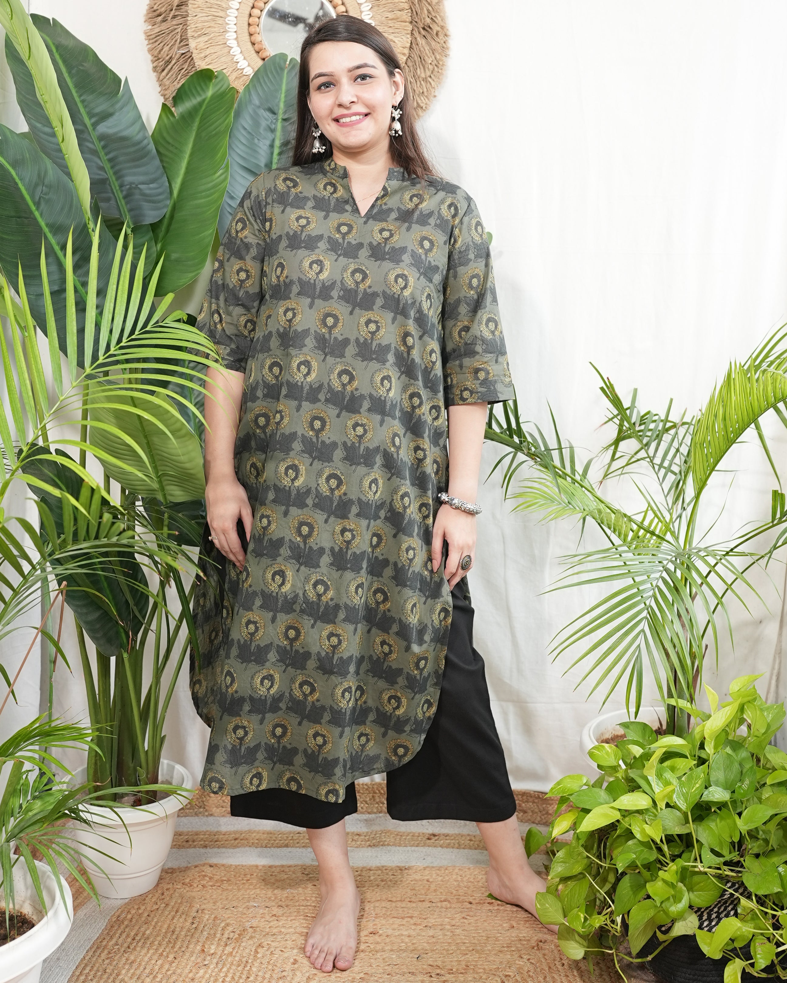 Forest sunflower Printed Kurta with back pleat and side pocket