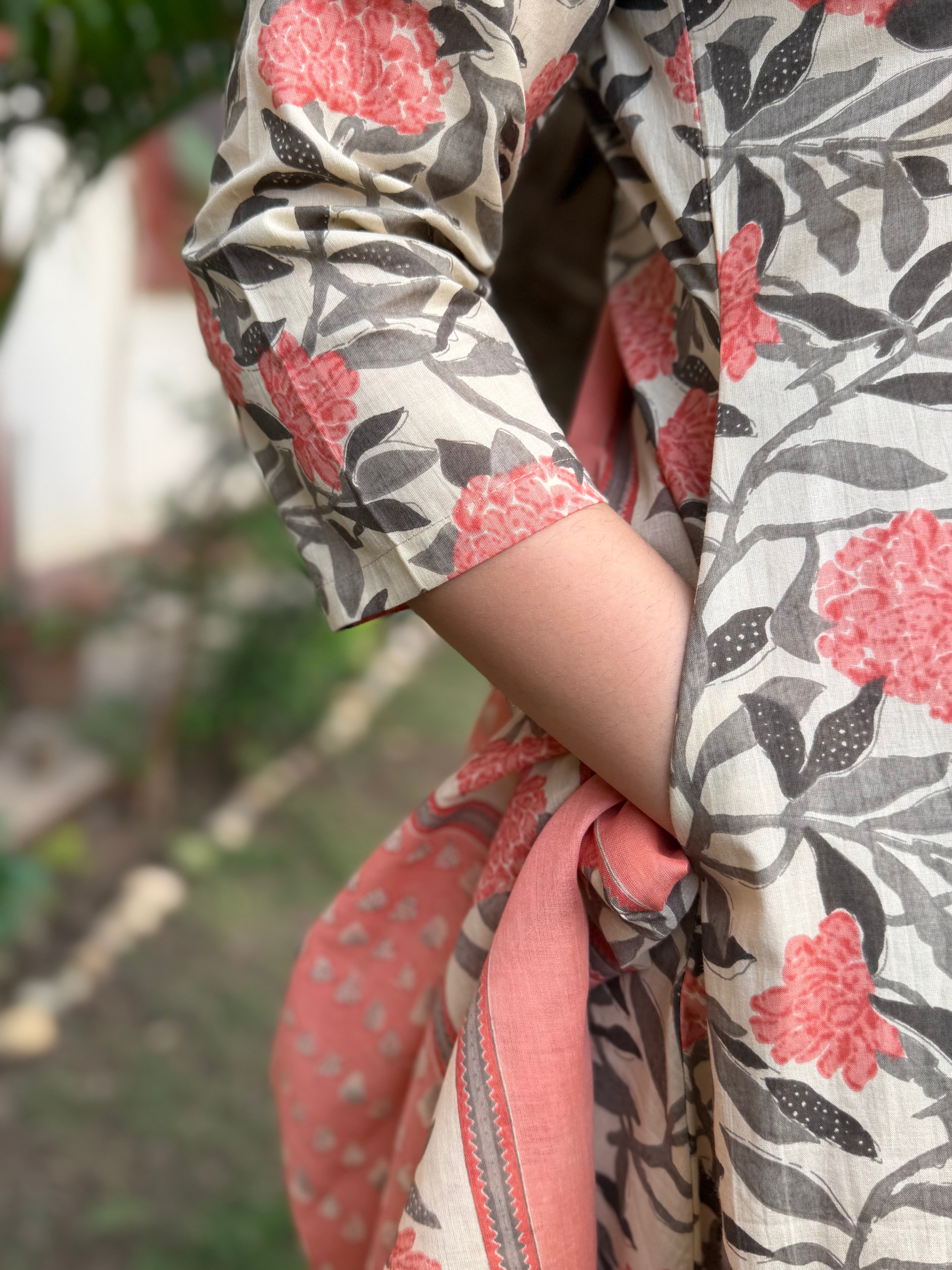 Sanganeri Aline full suit set with matching duppata and palazzo.