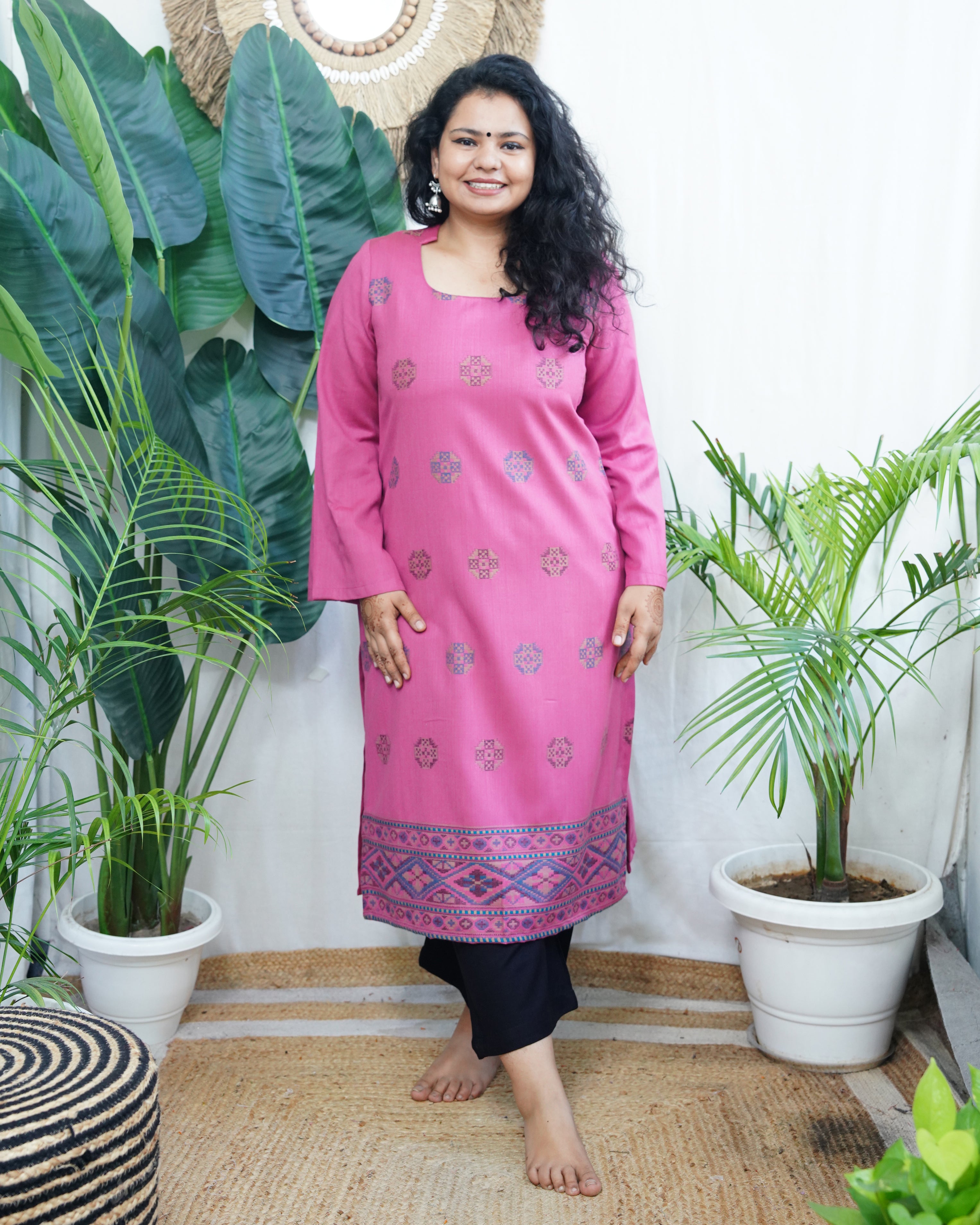 Pink Kullu Woollen kurta made in soft spun fabric.
